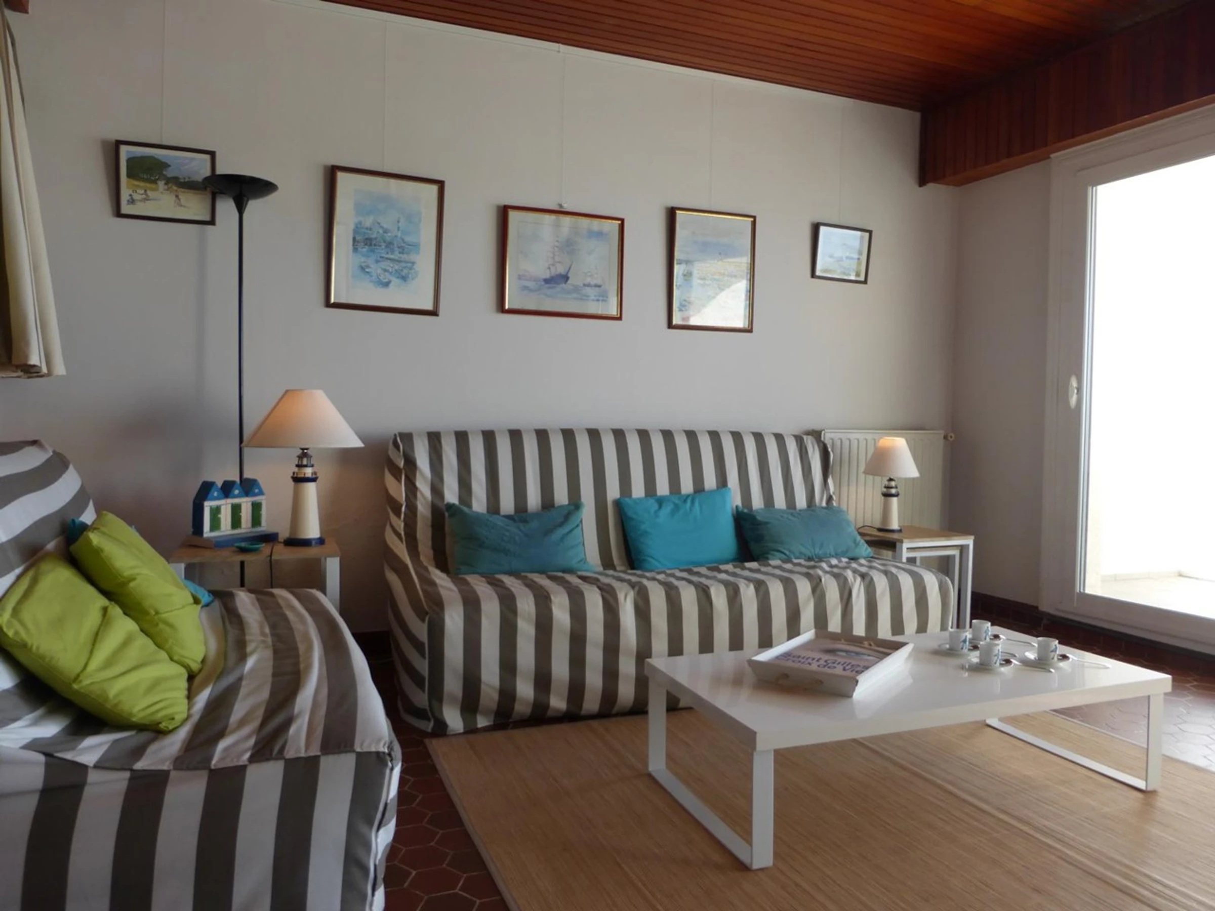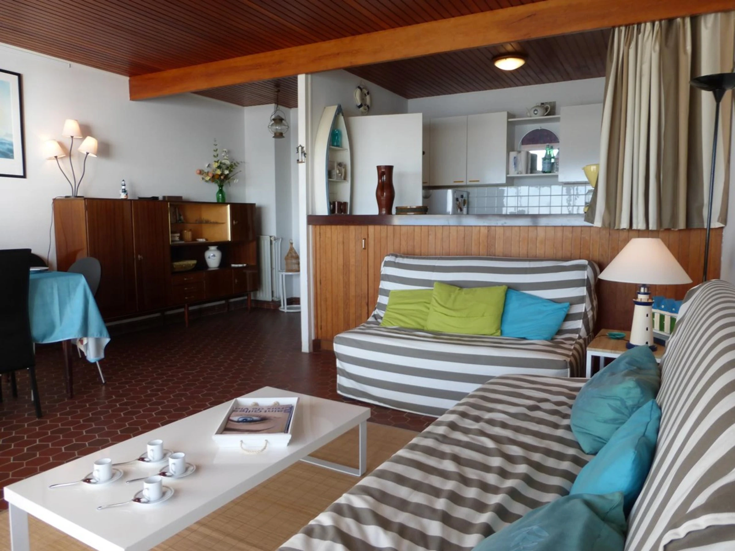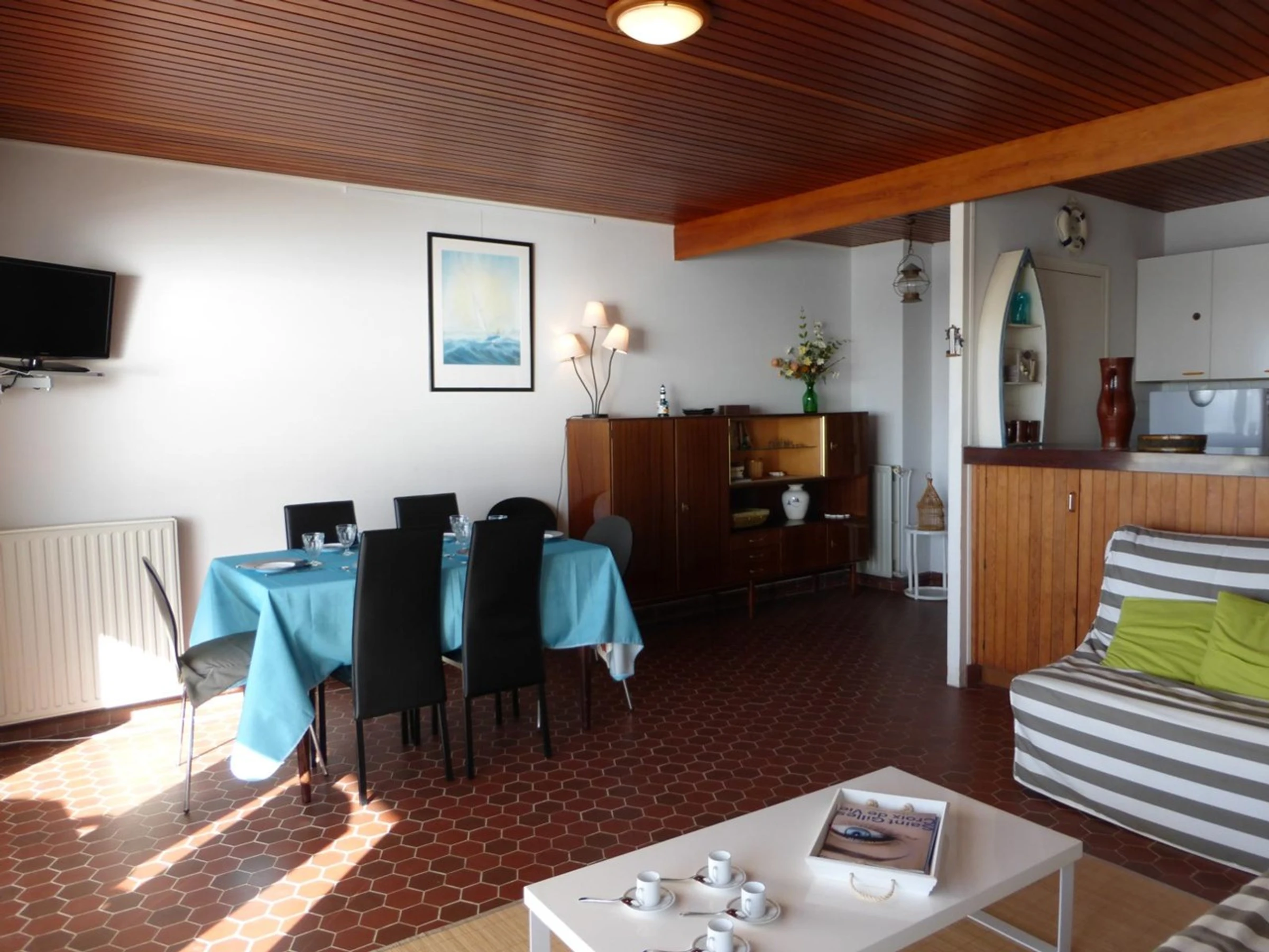 Diese am Fuße des Deichs und seiner Saisongeschäfte gelegene Mietwohnung am Meer bietet Ihnen Meerblick mit Balkon und Gartenmöbeln und verfügt über einen Küchenbereich mit Mikrowelle und Geschirrspüler, ein Wohnzimmer mit zwei Sofas und Fernseher, zwei Schlafzimmer mit insgesamt 1 Doppelbett, 1 Einzelbett, 2 Etagenbetten, ein Badezimmer mit Waschmaschine, Toilette,