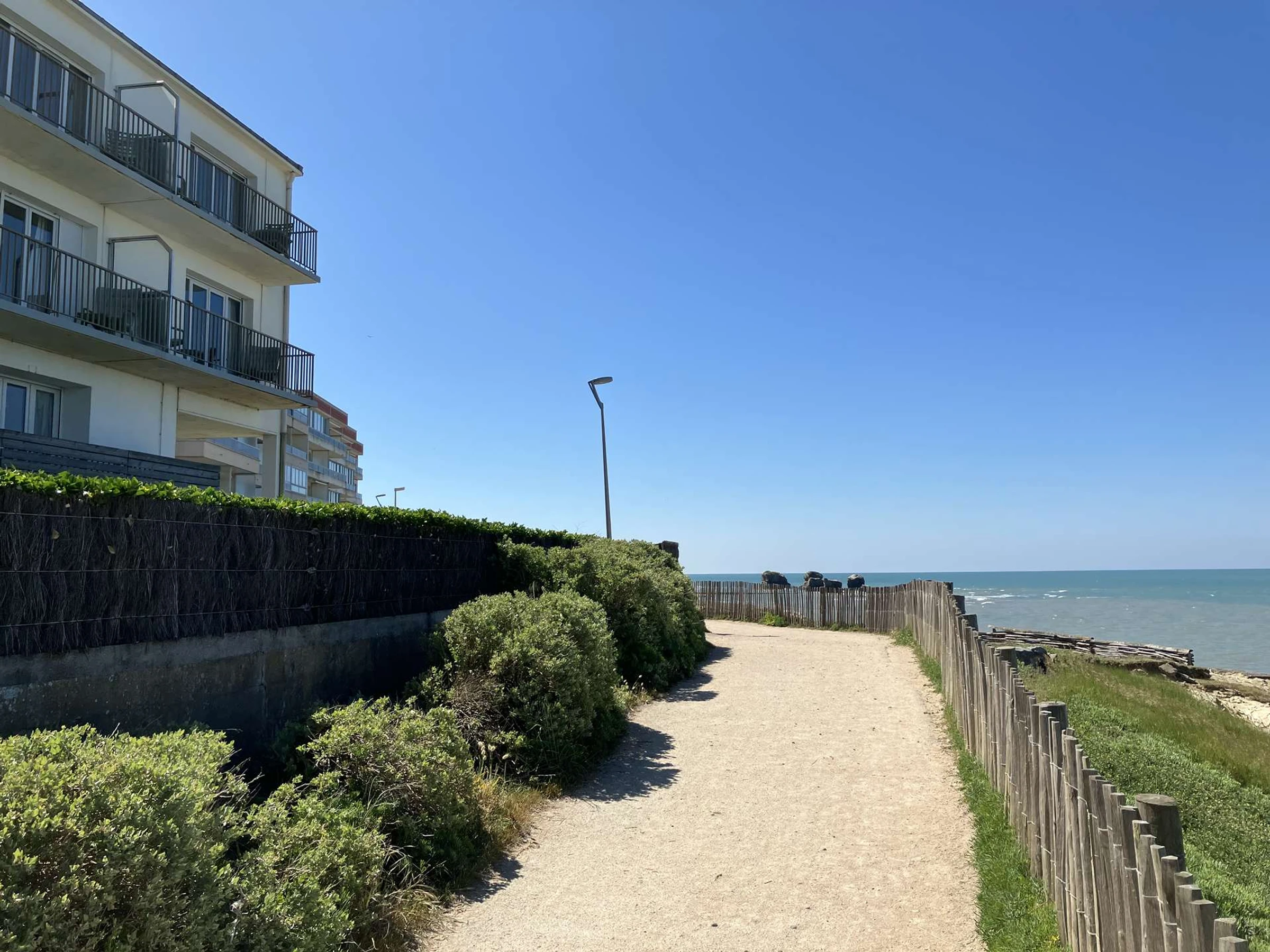 Das Wohnzimmer verfügt über ein bequemes Schlafsofa oder einen Schlafsessel. Von dort aus gelangt man auf einen schönen Balkon mit atemberaubendem Meerblick. Die offene Küche ist gut ausgestattet und bietet alles, was Sie für Ihren Aufenthalt benötigen: Herd, Mikrowelle, Dunstabzugshaube und Mini-Geschirrspüler. Das Einzelzimmer liegt gegenüber und bietet ein großes, bequemes Doppelbett sowie ein modernes Badezimmer mit Dusche und Waschbecken. Sie profitieren außerdem vom privaten Zugang von der Residenz aus, der direkt zum Wanderweg und zum Strand führt, sodass Sie die umliegende Natur und die Seeluft zu jeder Tageszeit in vollen Zügen genießen können. Dank der nahe gelegenen Radwege können Sie die Corniche Vendéenne in aller Ruhe erkunden. Das Stadtzentrum von Sitten liegt nur 150 Meter von der Residenz entfernt und bietet eine Bäckerei, Geschäfte, eine Bar, Restaurants, Märkte und einen Minimarkt. Der nächste Hypermarkt ist nur 5 Autominuten entfernt. Lotus Ref.