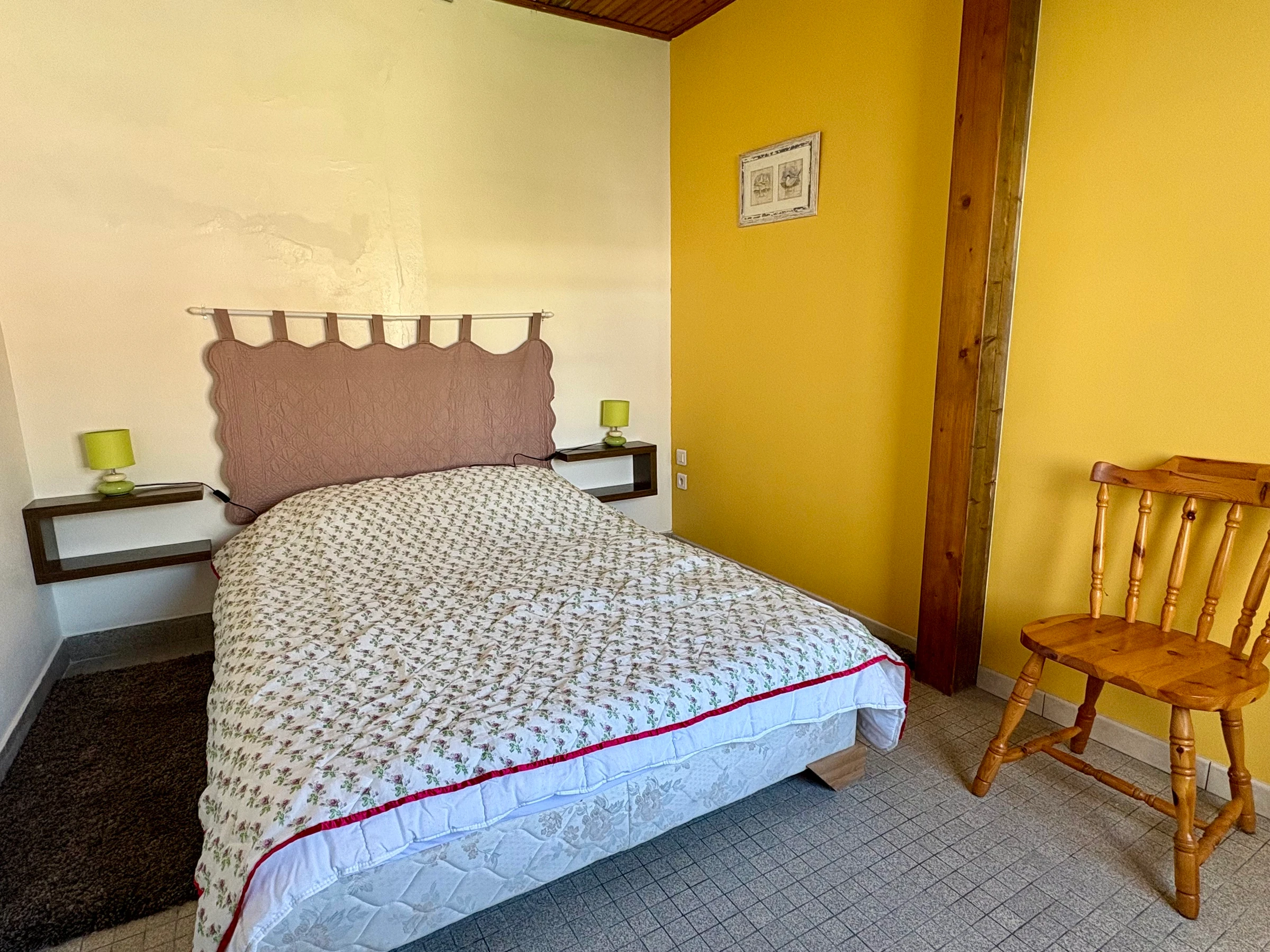 - ein Schlafzimmer mit Doppelbett (140 cm), zwei Nachttischen und Lampen.