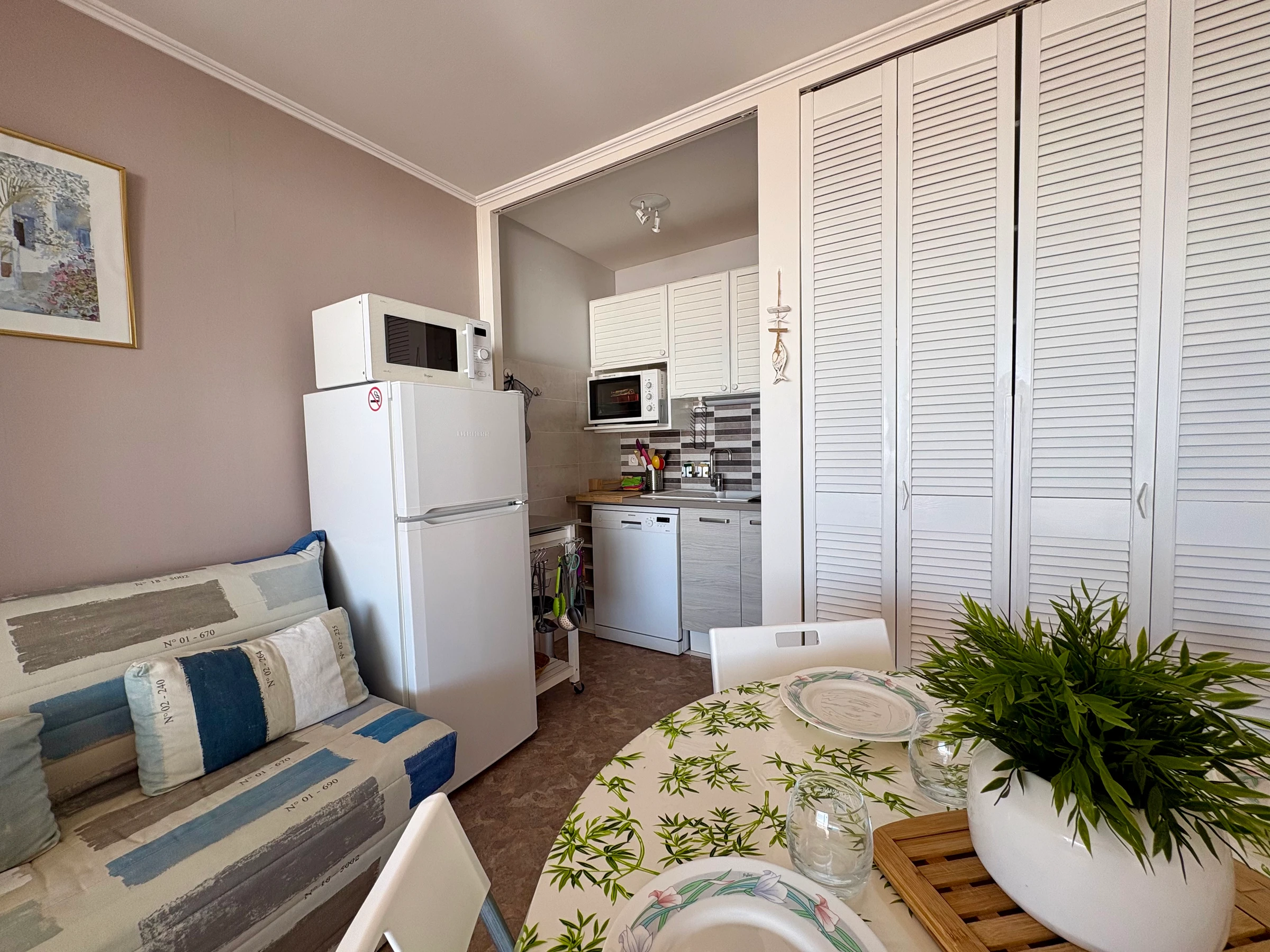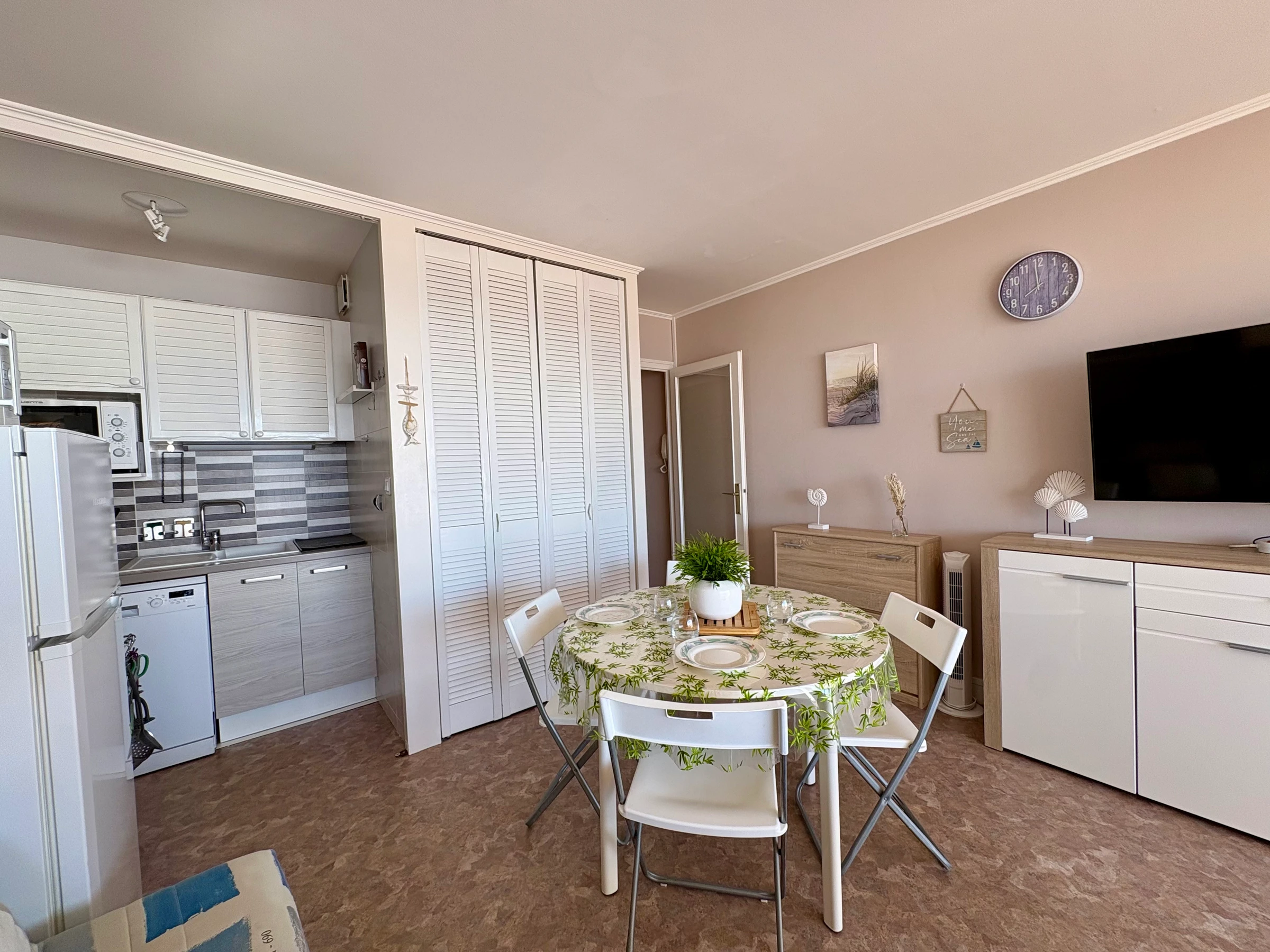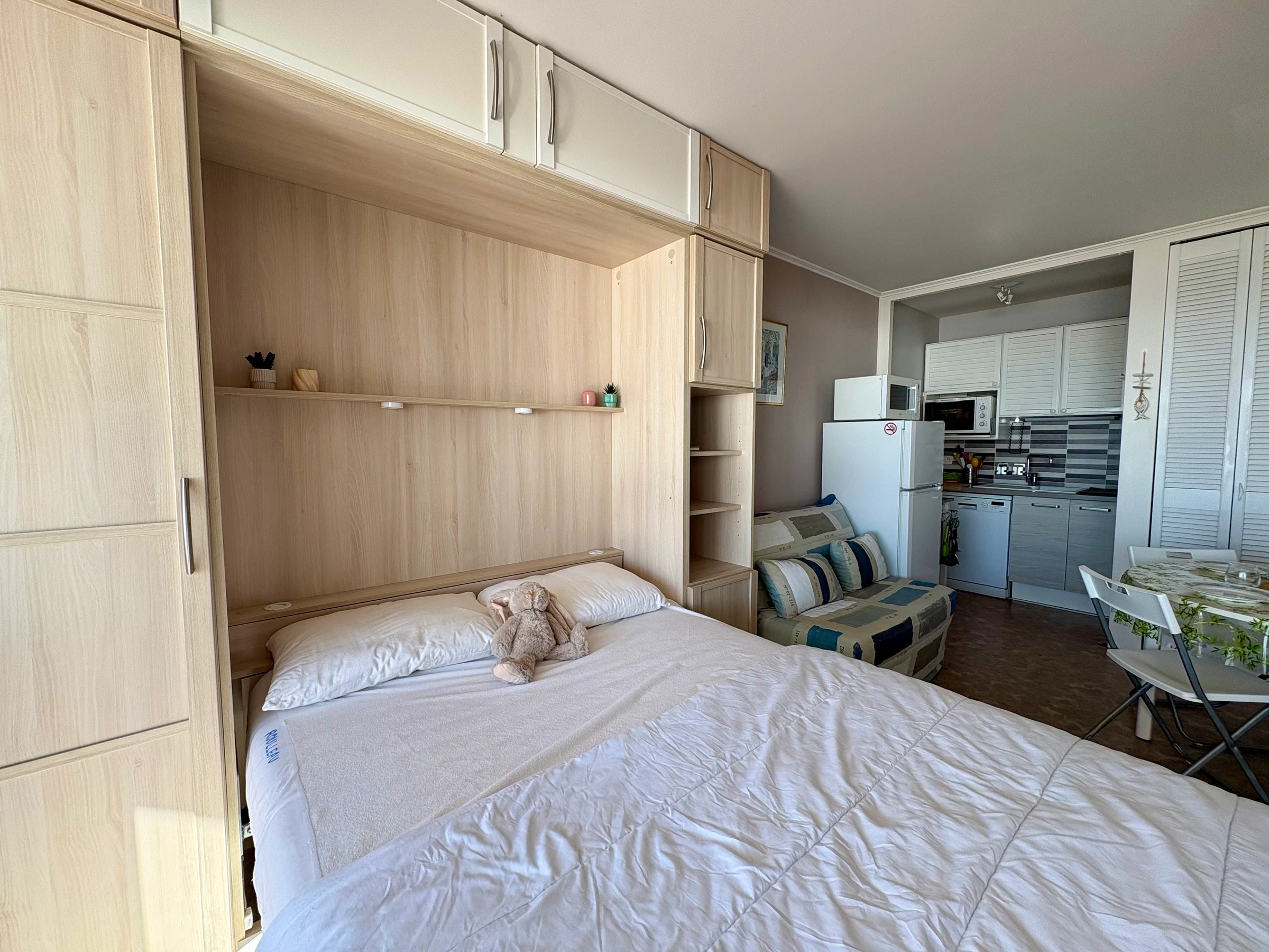 Coup de coeur für dieses voll ausgestattete Studio, hell und sehr komfortabel mit einem schönen Balkon mit Blick auf das Meer in einer kleinen Residenz mit Aufzug! Sehr gut gelegen, überqueren Sie die Esplanade zum Schwimmen gehen, die Geschäfte des Viertels der Damen (Bäckerei, Supermarkt, Tabakbar und Sommermarkt) sind nur 500 m entfernt, können Sie alles zu Fuß tun!