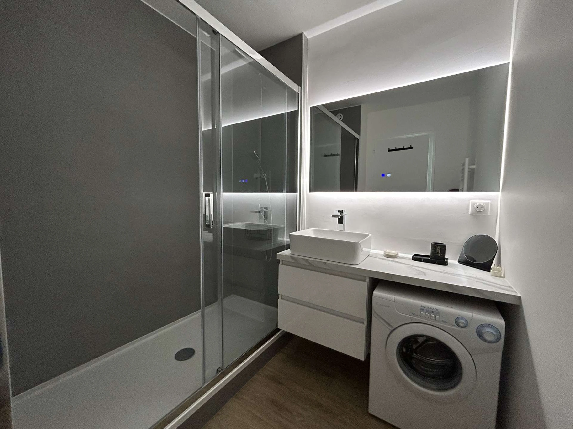 Diese direkt am Meer gelegene Mietwohnung befindet sich im 2. Stock und besteht aus einem geräumigen Wohnzimmer mit Schlafsofa, Möbeln und Fernseher, das auf einen Doppelbalkon mit außergewöhnlichem Meerblick führt, einer voll ausgestatteten Küche (Elektroherd, Mikrowelle, Kühl-Gefrierkombination, 3 Induktionskochfelder, Geschirrspüler und Waschmaschine), einem Schlafzimmer mit 1 Doppelbett (140), einem Duschraum (neu), separater Toilette.