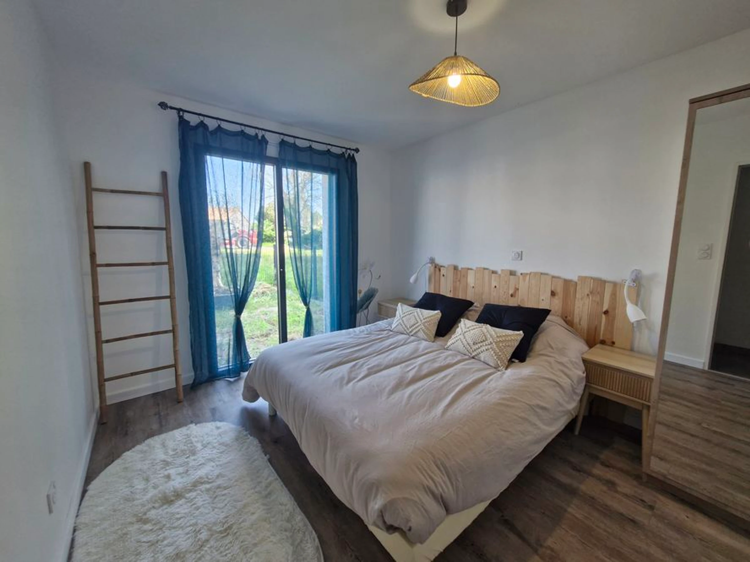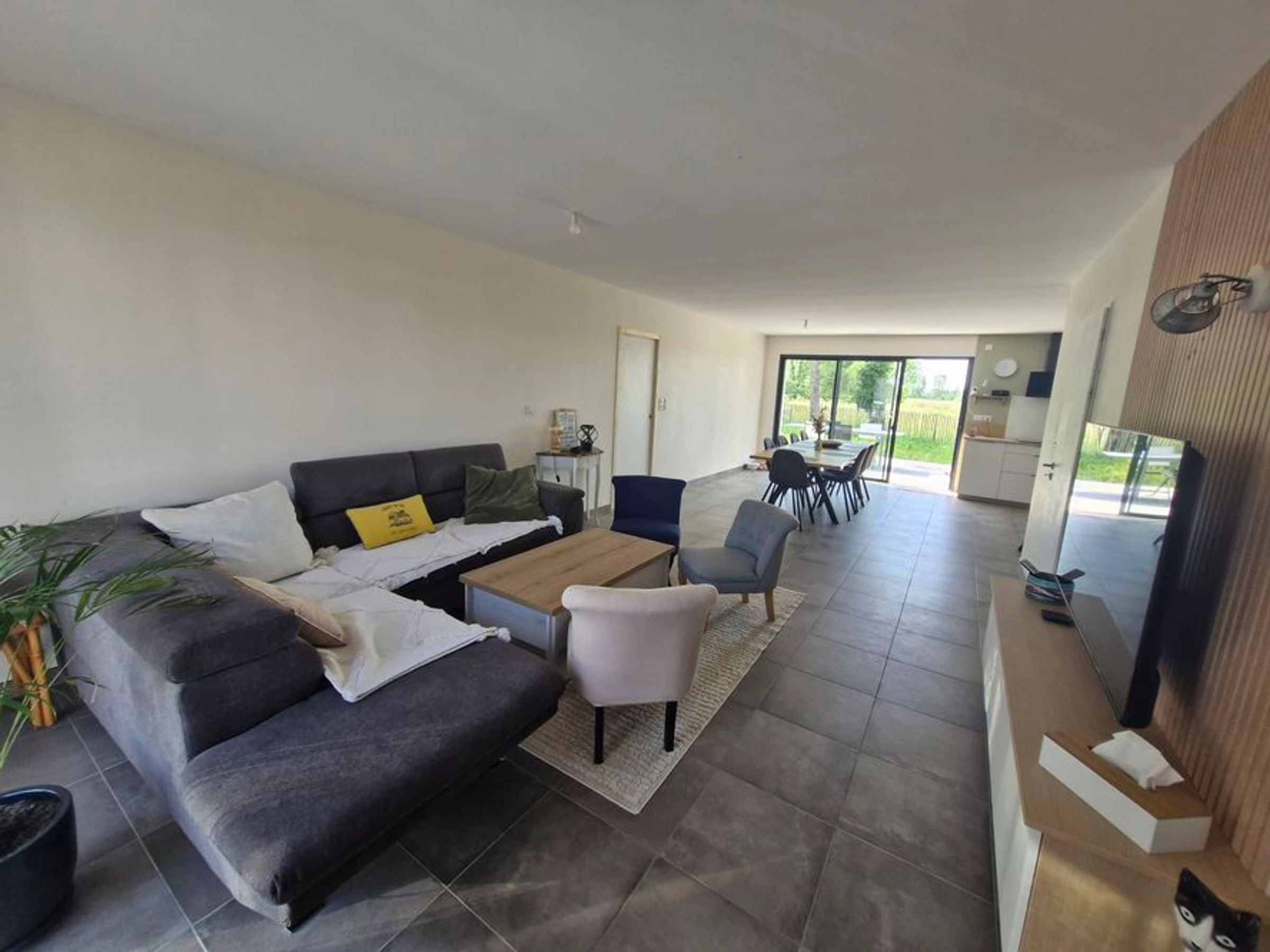 SCHÖNES HAUS, BAUJAHR 2024, mit freiem Blick ins Grüne, ca. 100m² für 8 Personen, gelegen in OROUET, auf einem teilweise umzäunten Grundstück mit einer Fläche von 420m² – ca. 2km vom Strand Mouettes und den Saisongeschäften entfernt – – WIFI-ZUGANG (Internet- und TV-Empfang) – – WOHNZIMMER: Flachbildfernseher – Tisch – 8 Stühle – 1 Ecksofa – 3 Sessel – Couchtisch – 1 Konsole – – KÜCHE A/E: Spüle – Kühlschrank – 3 Induktionskochfelder – Geschirrspüler – Backofen – Mikrowelle – Dunstabzugshaube – Senseo-Kaffeemaschine + normaler – Toaster – Wasserkocher