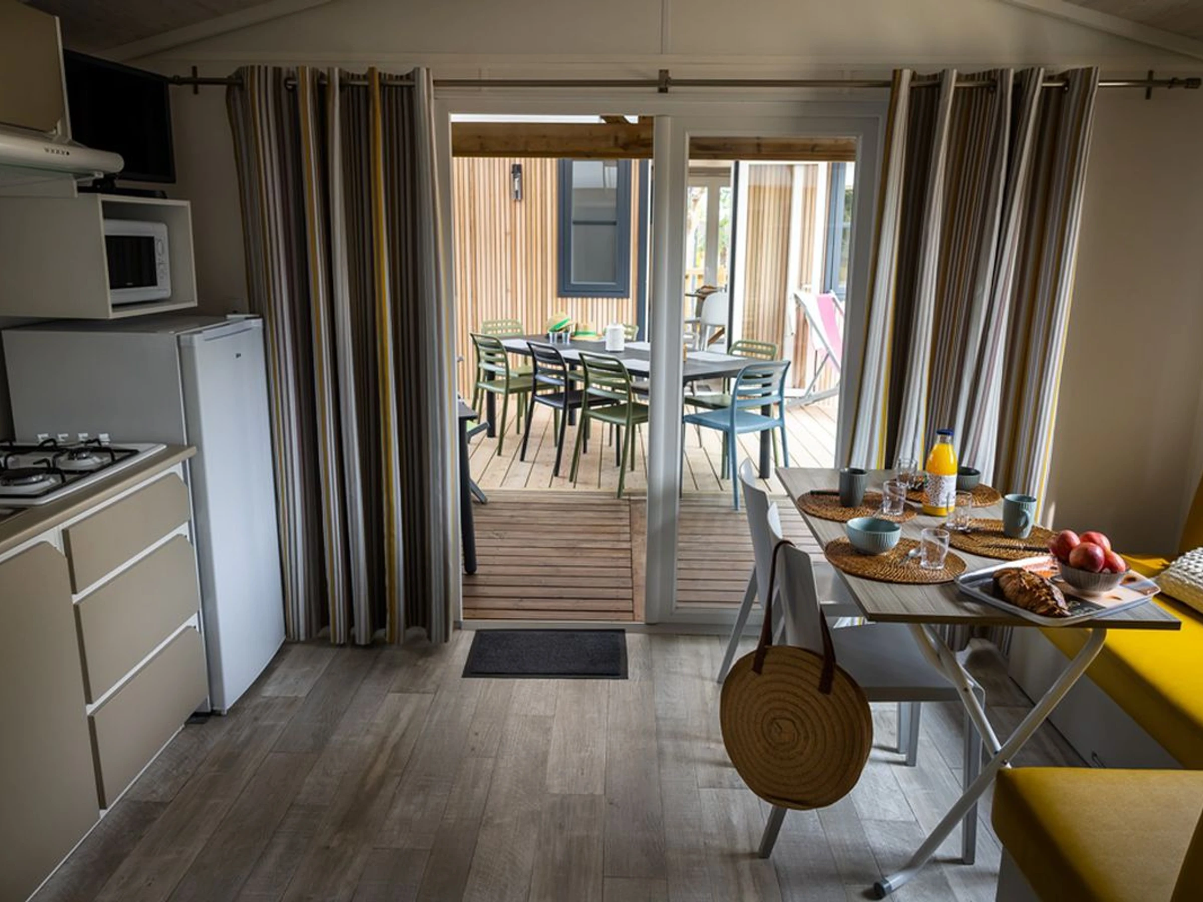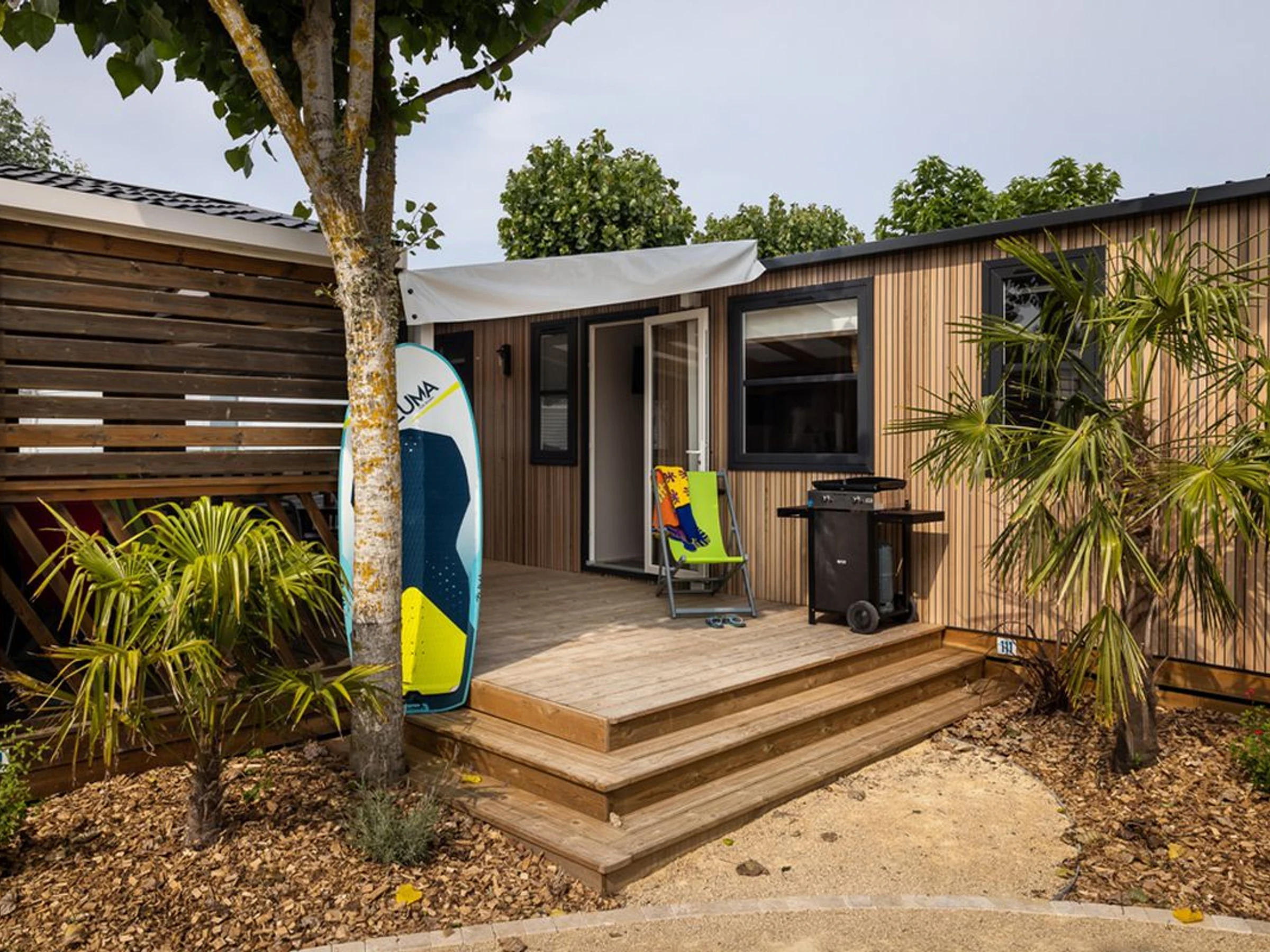 Zwei aneinandergrenzende Mobilheime – Terrasse
