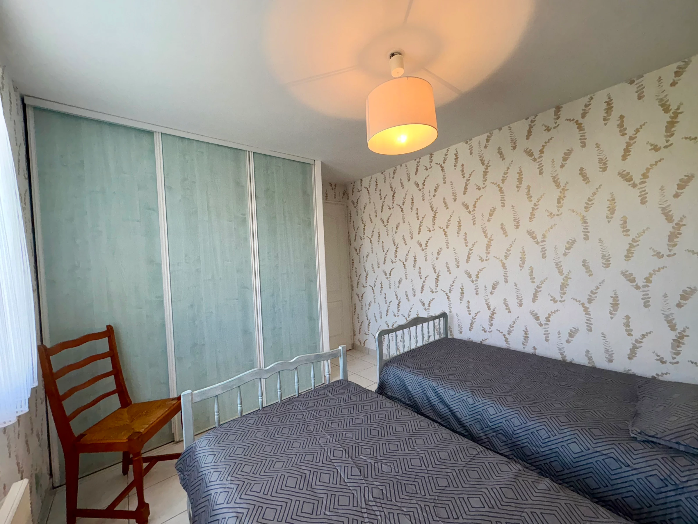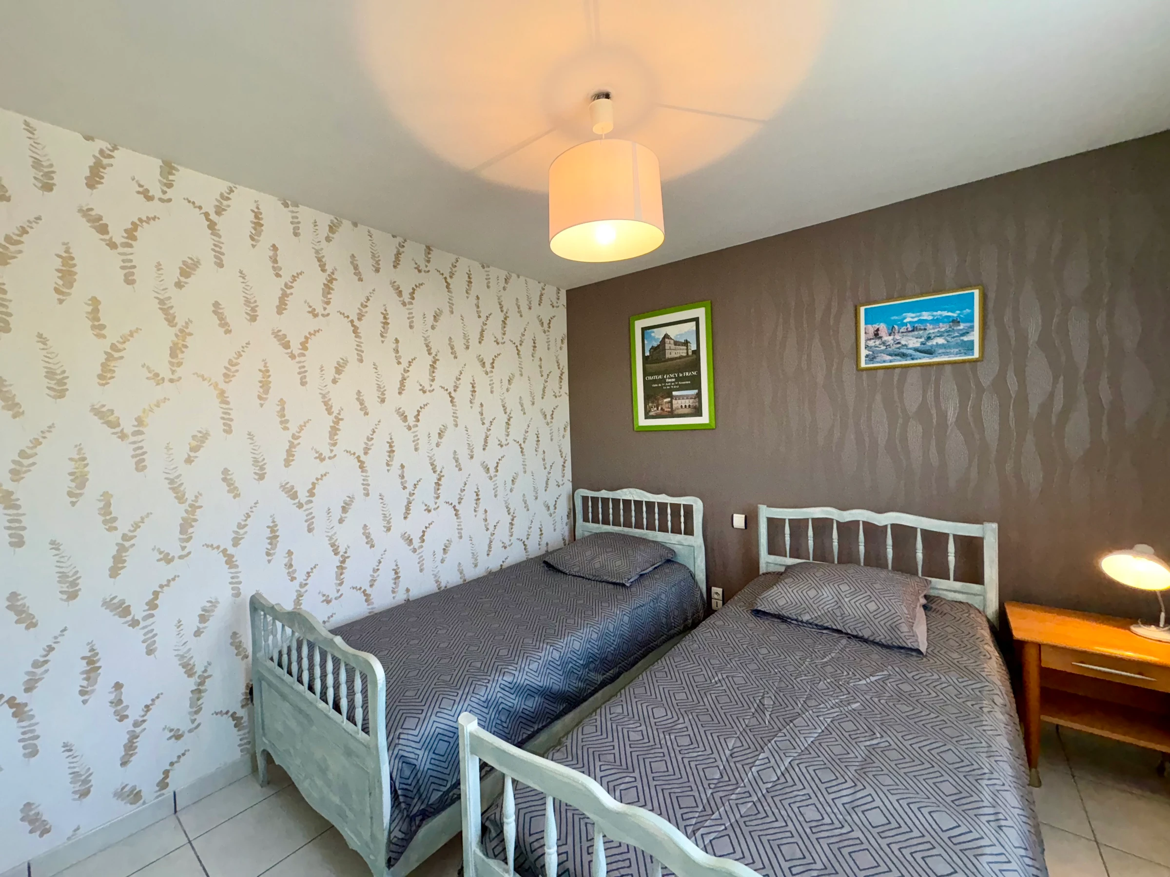 Schlafzimmer 2 mit Fenster: 2 Einzelbetten (je 0,90 m), 1 Nachttisch mit Lampe, Kleiderschrank