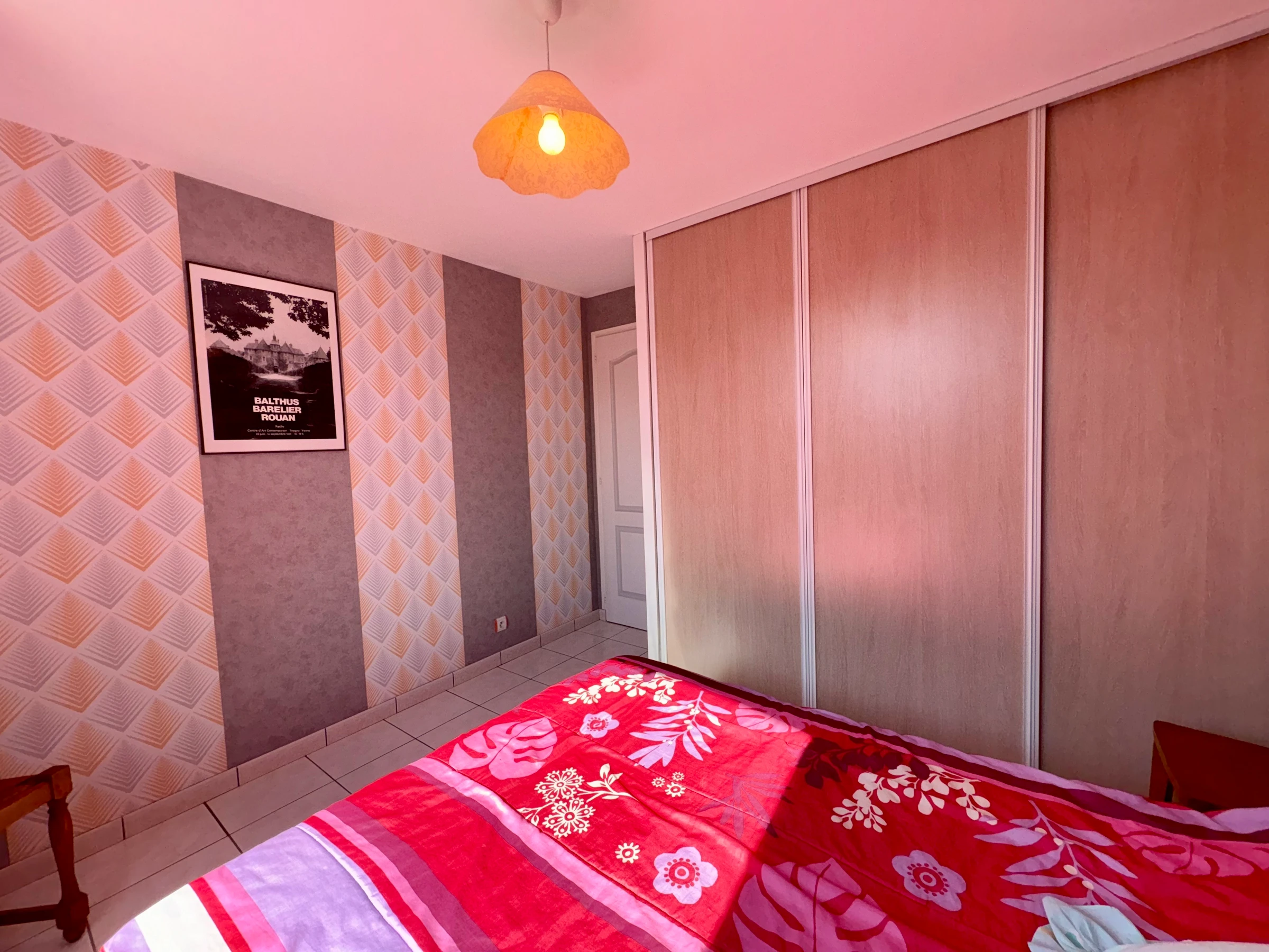 Schlafzimmer 1 mit Fenster: 1 Doppelbett (140 cm), 2 Nachttische mit Lampen, Kleiderschrank, neue Matratze (2025)