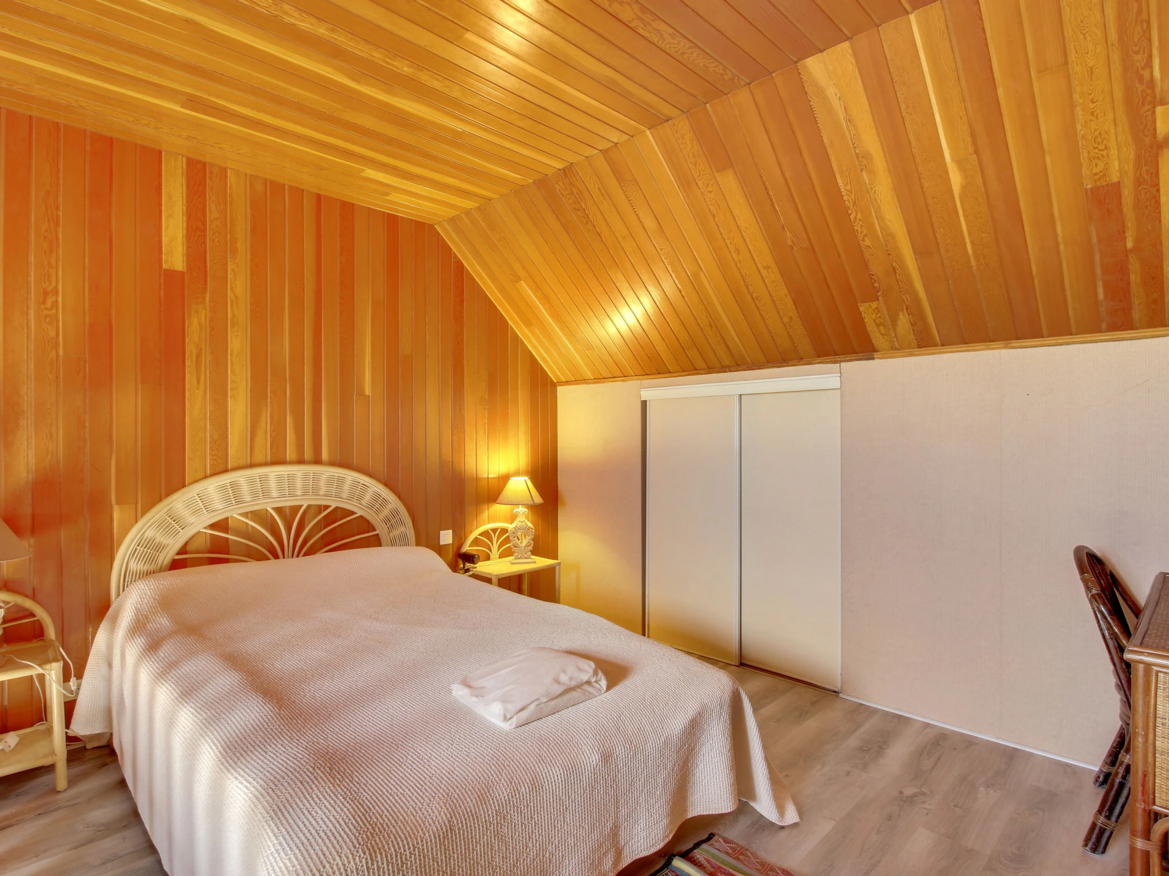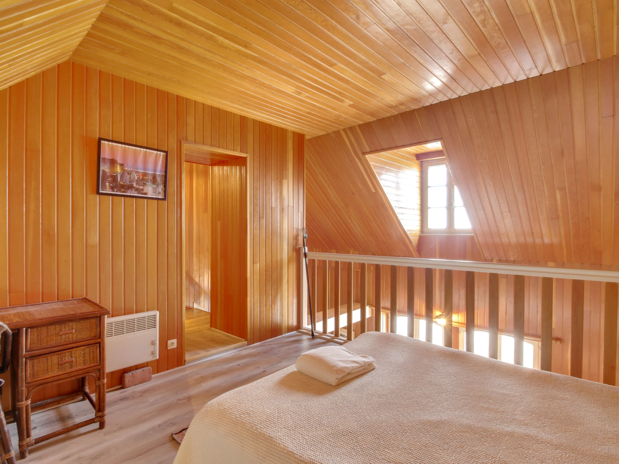 2-Zimmer-Maisonette-Wohnung 45 m2 im 1. Stock. Objekt geeignet für 2 Erwachsene + 1 Kind. Komfortabel und mit viel Holz eingerichtet: Wohn-/Schlafzimmer mit 1 Bett (140 cm, Länge 190 cm), Esstisch und TV (Flachbildschirm), elektrischem Rollladen. Kleine Küche (2 Kochplatten, Mini-Backofen, Wasserkocher, Mikrowelle, elektrische Kaffeemaschine). Dusche/WC. E-Heizung. Obergeschoss: 1 abgeschrägtes, offenes grosses Zimmer mit 1 franz. Bett (1 x 140 cm, Länge 190 cm). Herrliche Sicht auf das Meer. Zur Verfügung: Waschmaschine, Wäschetrockner, Haartrockner. Internet (WLAN, gratis). Bitte beachten: Nichtraucher-Unterkunft. Maximal 1 kleines Haustier/Hund erlaubt. Kein Fahrstuhl. [hidden]