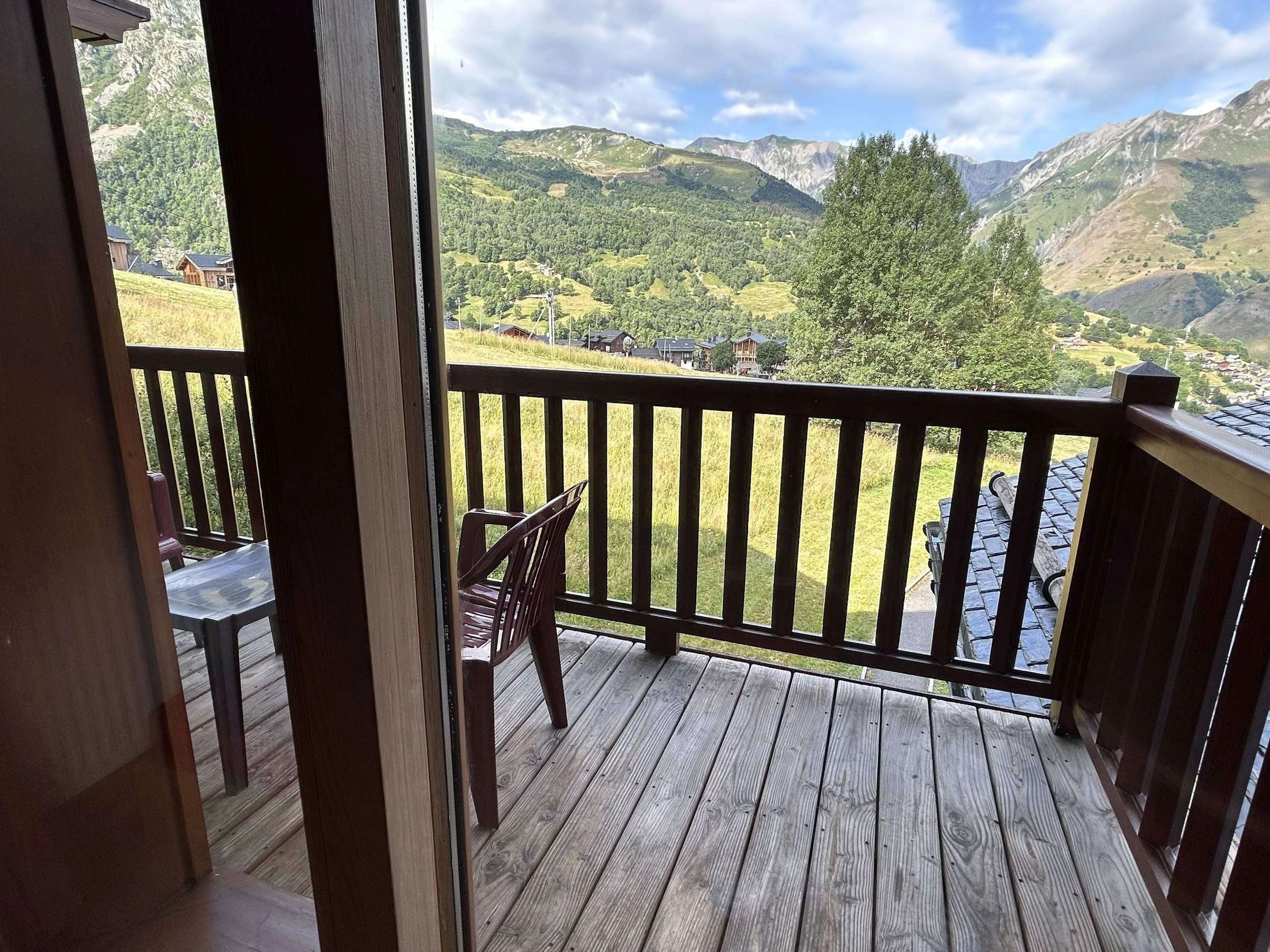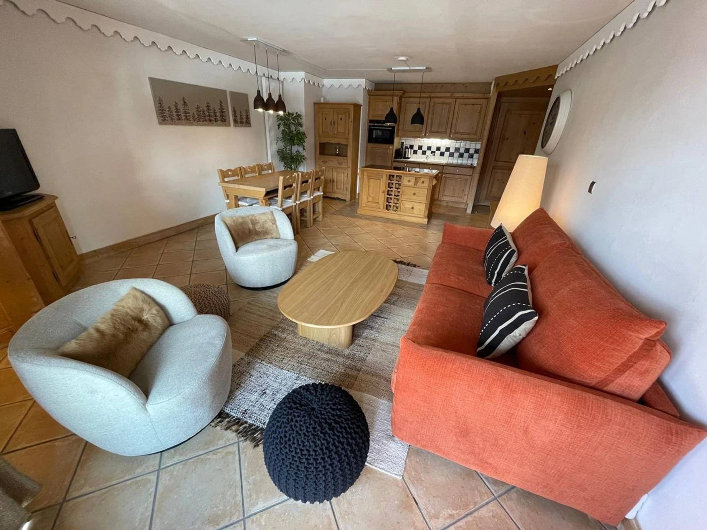 - Sehr helles Wohnzimmer mit TV und nach Südwesten ausgerichtetem Balkon mit Blick auf die Pisten und das Dorf, im 4. Stock (mit Aufzug).