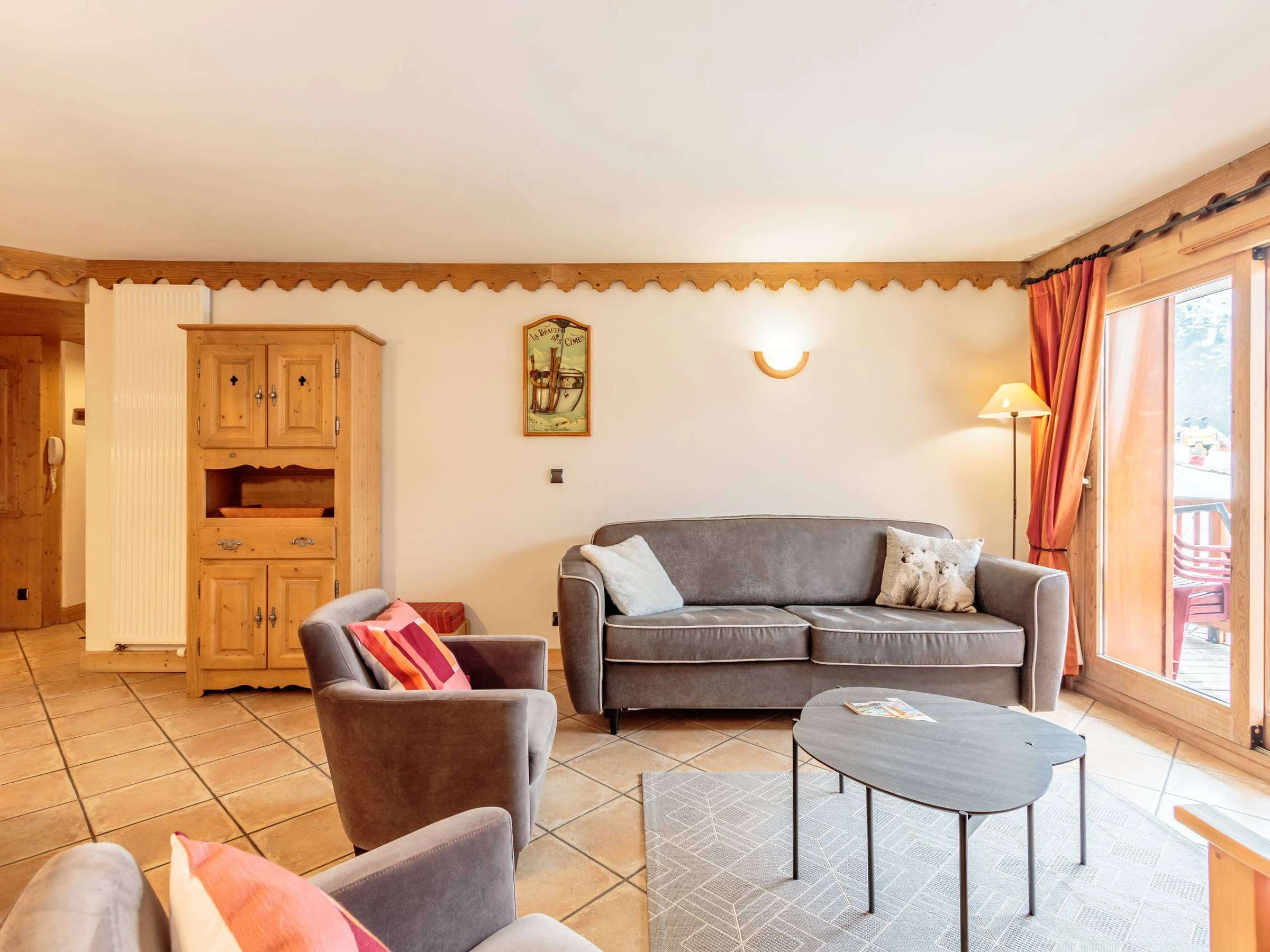 Wohnung mit hervorragender SÜD-WEST-Ausrichtung und freiem Blick auf das Dorf und die Pisten – sehr sonnig – 6 Personen – 70 m².