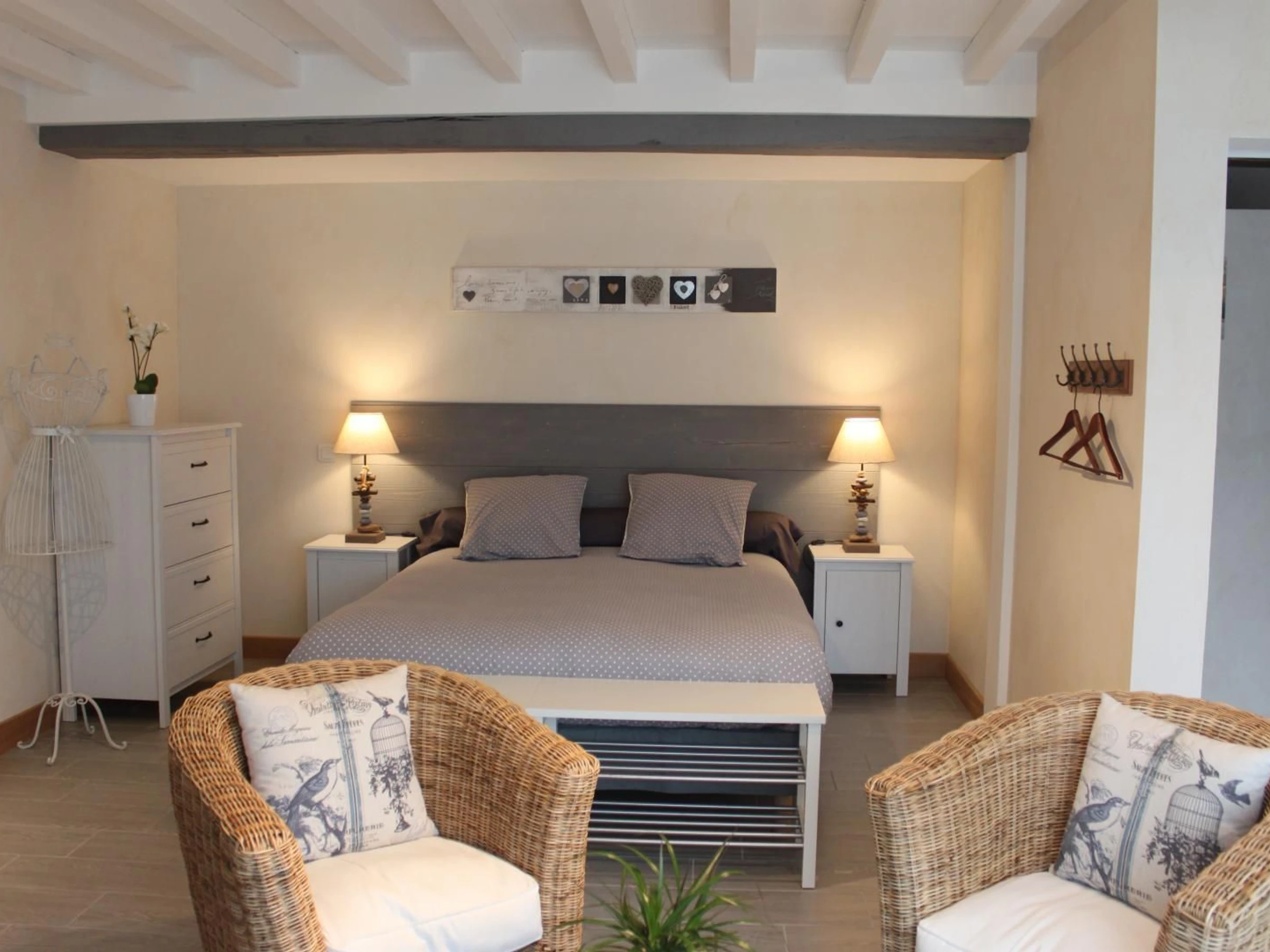 Gästezimmer im regionalen Naturpark Morvan. 4 Betten 80x200, die zu zwei Betten 160x200 umgebaut werden können (eines im Erdgeschoss, das andere im Obergeschoss). Separate Küche mit Kühlschrank für einfache Aufgaben (nicht zum Kochen geeignet), Wohnbereich mit TV, Badezimmer mit ebenerdiger Dusche und WC, private Terrasse. Das Zimmer im Obergeschoss ist ab drei zahlenden Personen zugänglich.