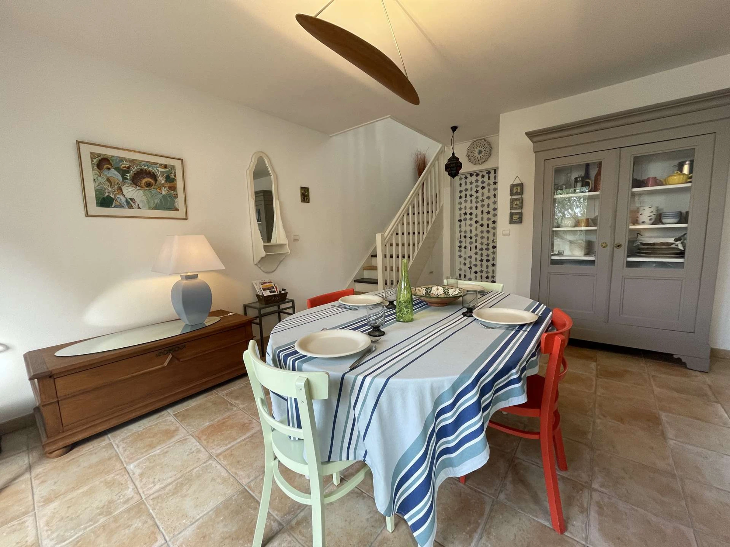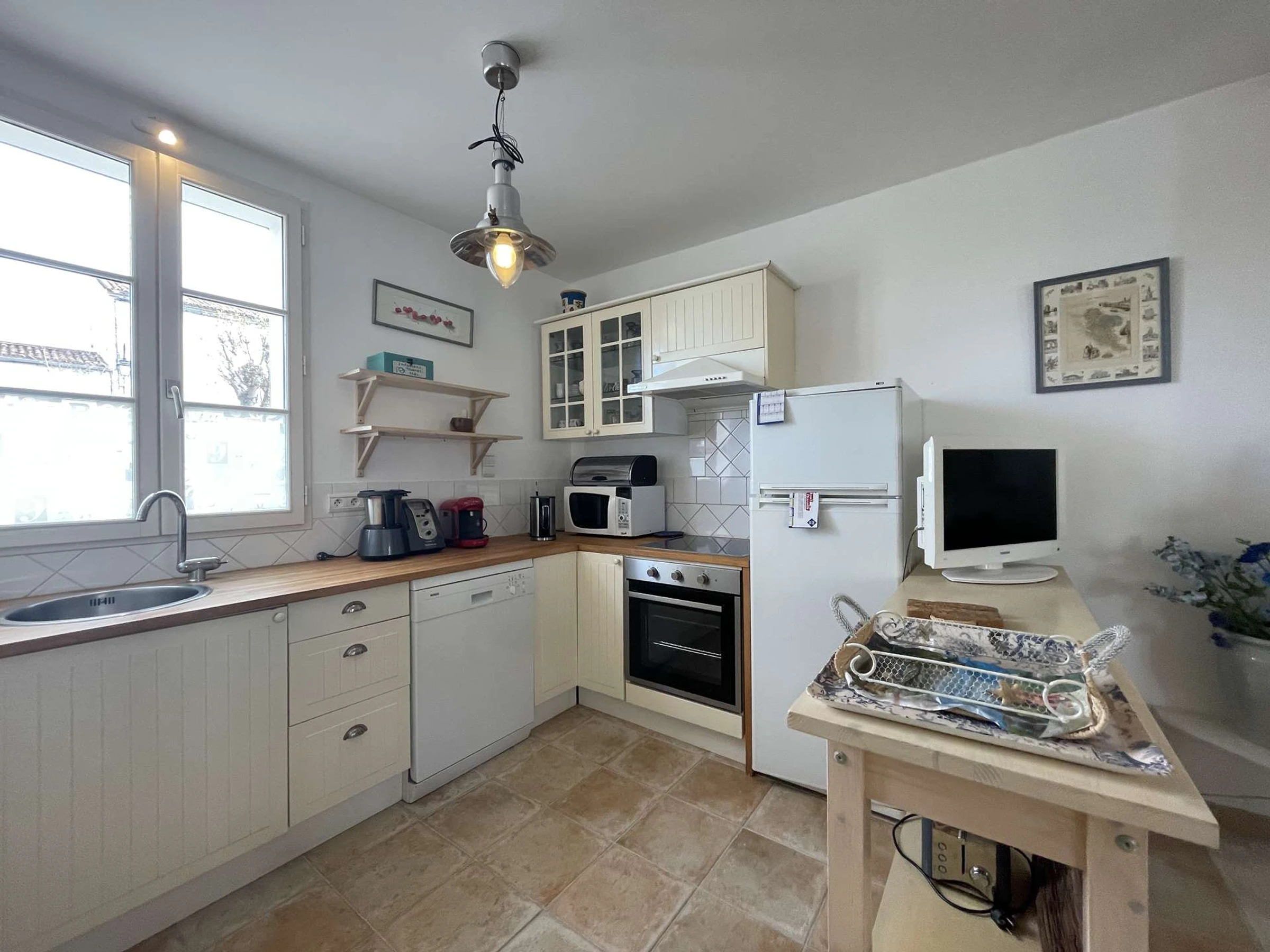 Die Unterkunft: Charmantes Ferienhaus in Saint Martin de Ré. Nur wenige Schritte vom Hafen von Saint Martin entfernt, in einer ruhigen, gepflegten Wohnanlage, befindet sich dieses freistehende Ferienhaus in idealer Lage in der Gemeinde Saint Martin de Ré. Das Erdgeschoss umfasst ein großes Wohnzimmer mit Sitzecke (Sofa und Fernseher), einen Essbereich, eine voll ausgestattete Küche und ein separates WC. Im Obergeschoss befinden sich zwei Schlafzimmer. Das erste Schlafzimmer verfügt über ein Doppelbett (140 cm) für zwei Personen. Das zweite Schlafzimmer ist mit einem Queensize-Bett (160 cm) für zwei Personen ausgestattet. Außerdem gibt es ein separates WC und ein Duschbad mit ebenerdiger Dusche. Waschmaschine und Geschirrspüler sind in der Küche vorhanden. Das Haus bietet zudem einen kleinen Garten mit Grillplatz – perfekt, um Mahlzeiten mit Freunden und Familie in der Sonne zu genießen.