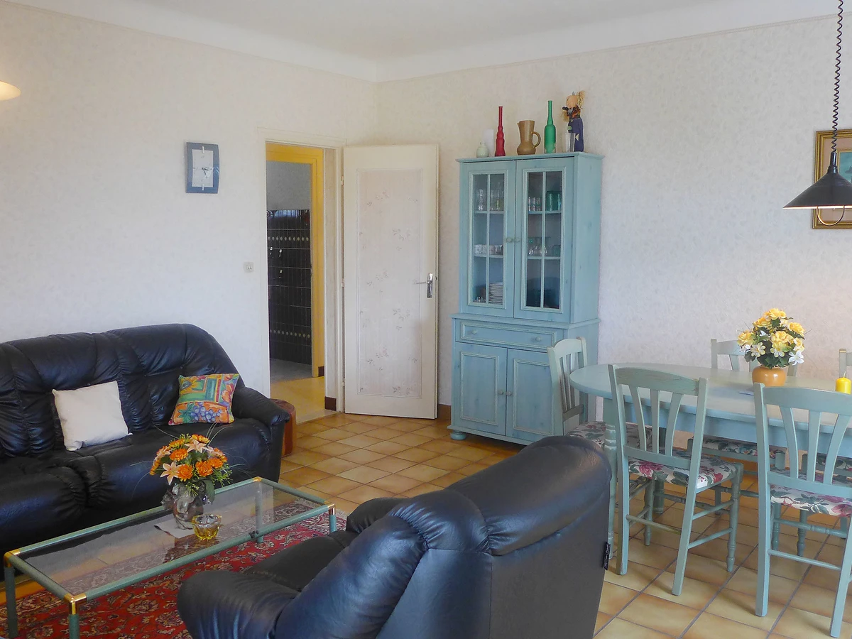 3-Zimmer-Villa 100 m2. Wohn-/Esszimmer mit 1 Doppeldiwanbett (1 x 140 cm), TV. Ausgang zur Terrasse. 1 Zimmer mit 1 franz. Bett (1 x 140 cm). 1 Zimmer mit 2 Betten (90 cm). Küche (4 Kochplatten, Backofen, Geschirrspüler, Mikrowelle). Bad, Dusche, sep. WC. Terrasse. Terrassenmöbel. Zur Verfügung: Waschmaschine, Wäschetrockner. Garage (2 Autos). Maximal 1 Haustier/Hund erlaubt.