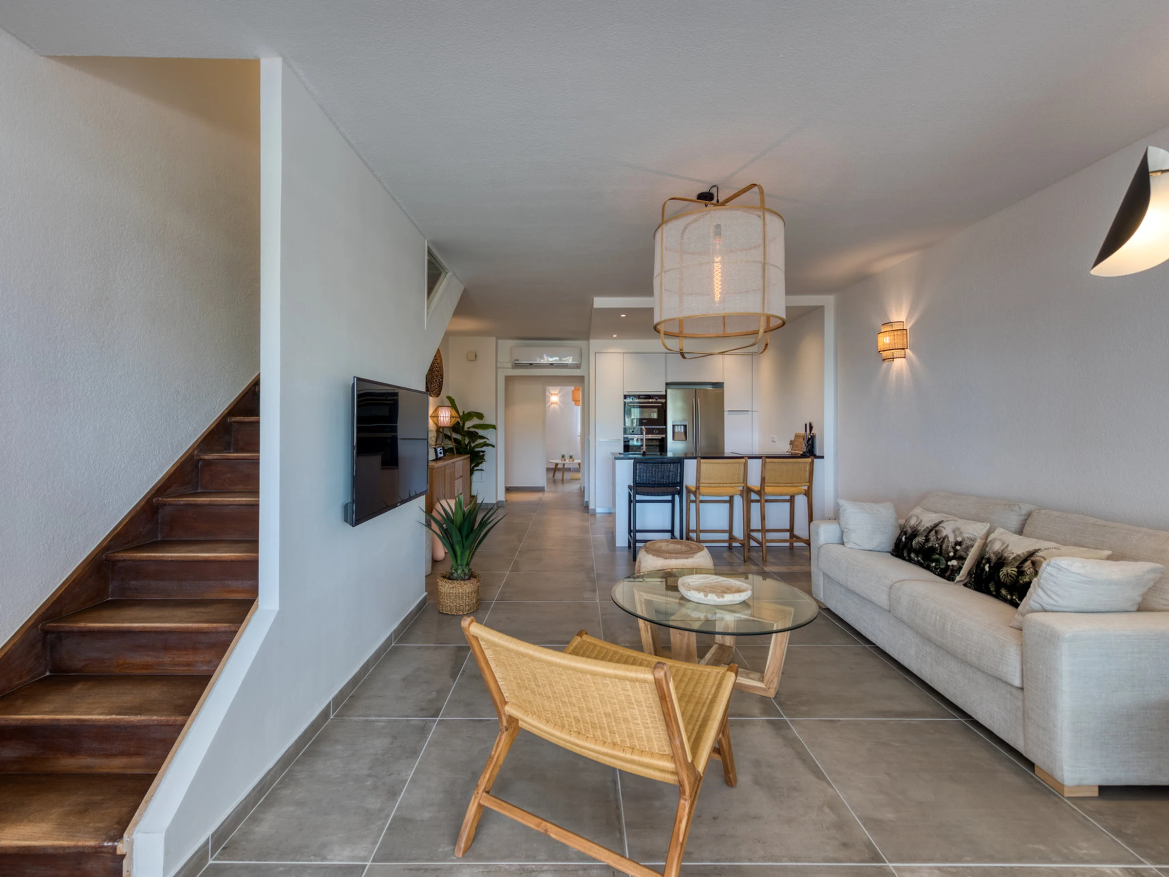 Das Duplex bietet drei Schlafzimmer (160 x 200 cm) und drei Badezimmer und somit viel Platz für Sie und Ihre Gäste. Die voll ausgestattete und möblierte Küche geht in einen schönen Wohnbereich über, in dem Sie entspannen können. Für weitere Gäste steht ein Schlafsofa (140 x 190 cm) mit Hotelmatratze zur Verfügung.