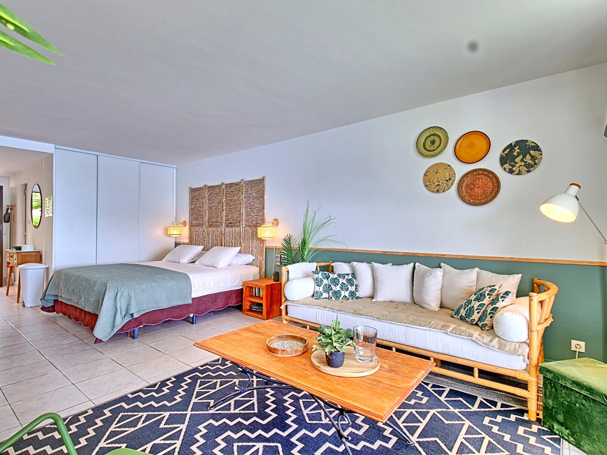 Eingebettet in die Mont Vernon Residence ist dieses Ferienstudio ein wahres Juwel. Stellen Sie sich vor: Nur wenige Schritte vom Orient Bay Beach entfernt, einem der schönsten weißen Sandstrände dieser paradiesischen Region. Das Studio befindet sich auf Gartenebene und bietet ein einzigartiges Erlebnis, das Privatsphäre und atemberaubende Ausblicke vereint.