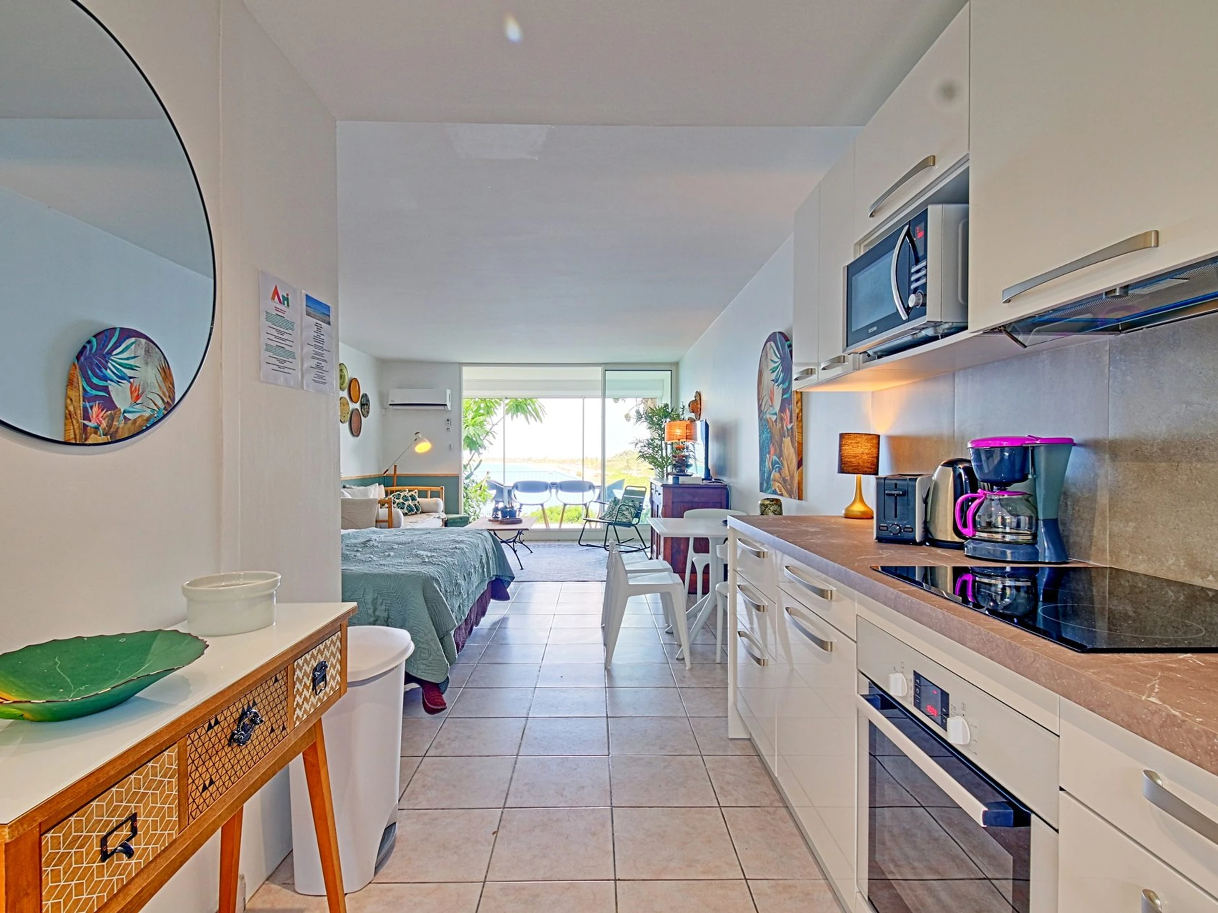 Schon bei Ihrer Ankunft werden Sie vom majestätischen Blick auf die Orient Bay und das kristallklare, glitzernde Wasser des Meeres verzaubert sein. Das Interieur dieses Refugiums ist ebenso elegant wie funktional. Ein einladender Eingang führt Sie in eine voll ausgestattete Küche, in der Sie Ihren kulinarischen Talenten freien Lauf lassen können. Das moderne Badezimmer mit WC sorgt für Ihren Komfort, und ein liebevoll eingerichteter Schlafbereich mit einem luxuriösen Kingsize-Bett und einem Ankleidezimmer verspricht erholsame Nächte.