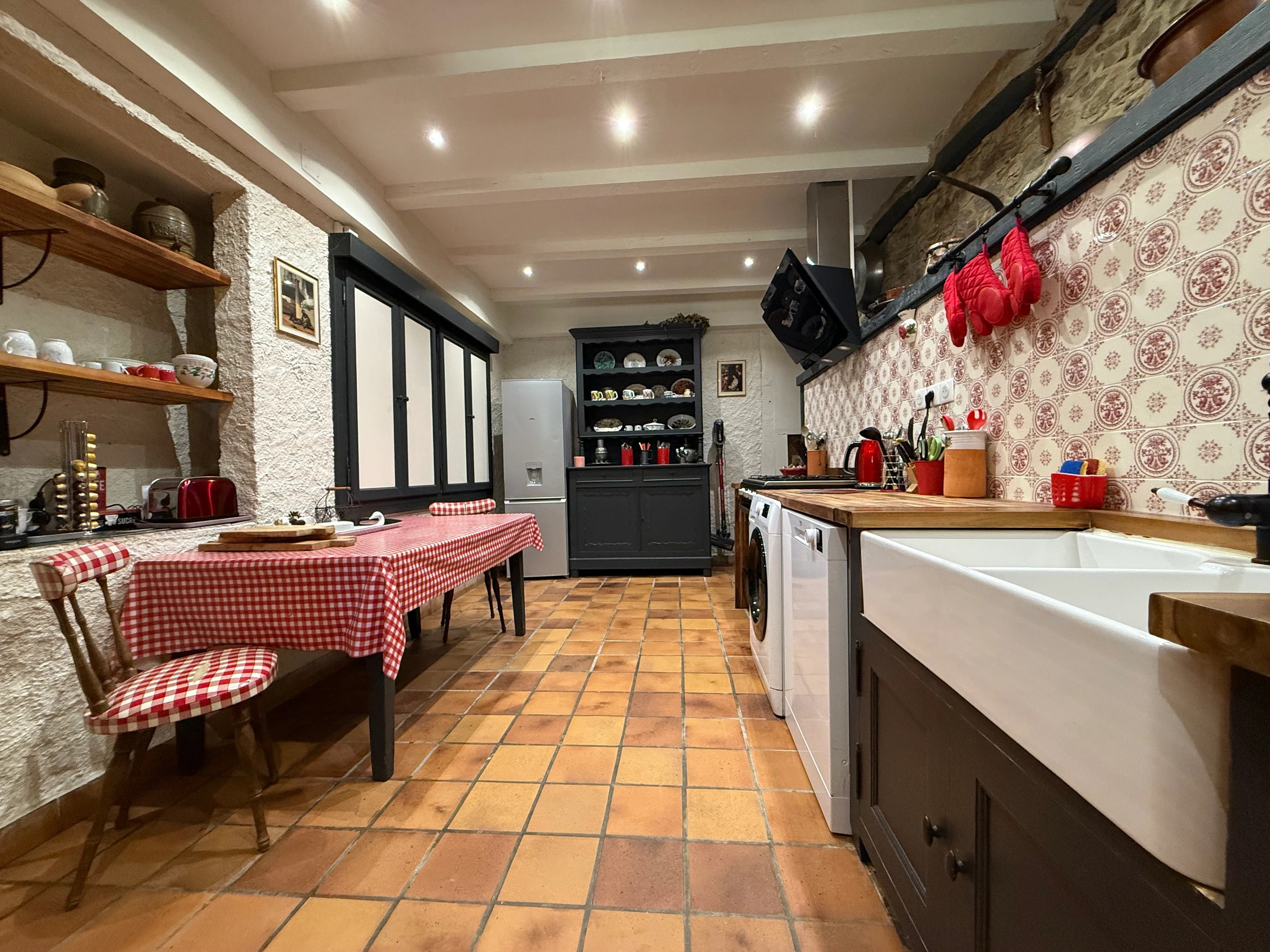 [hidden] Voll ausgestattete Küche (Backofen, Herd, 2 Kühlschränke, Gefrierschrank, Mikrowelle, 2 Geschirrspüler, Kaffeemaschine etc.) mit Zugang zur Terrasse