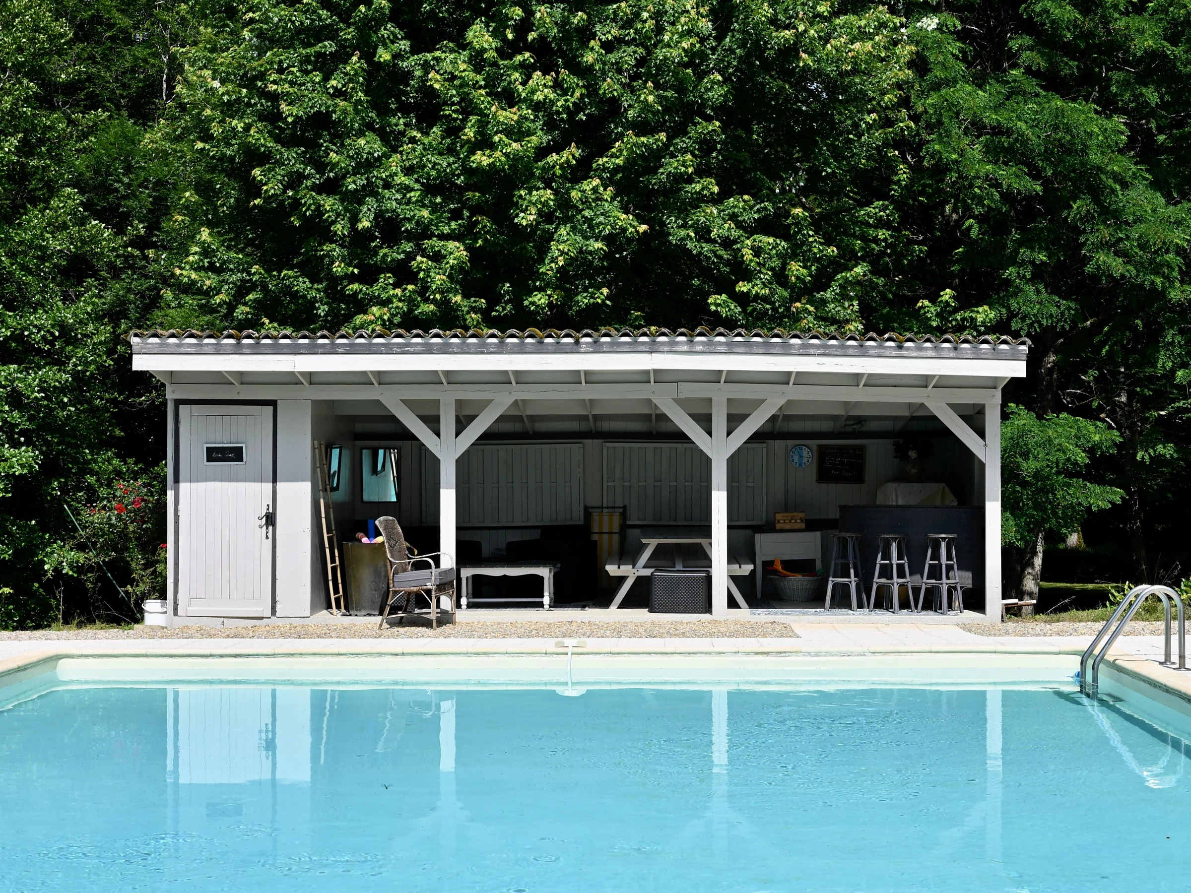 [hidden] Großer Swimmingpool (19 x 9 Meter) mit Poolhaus
