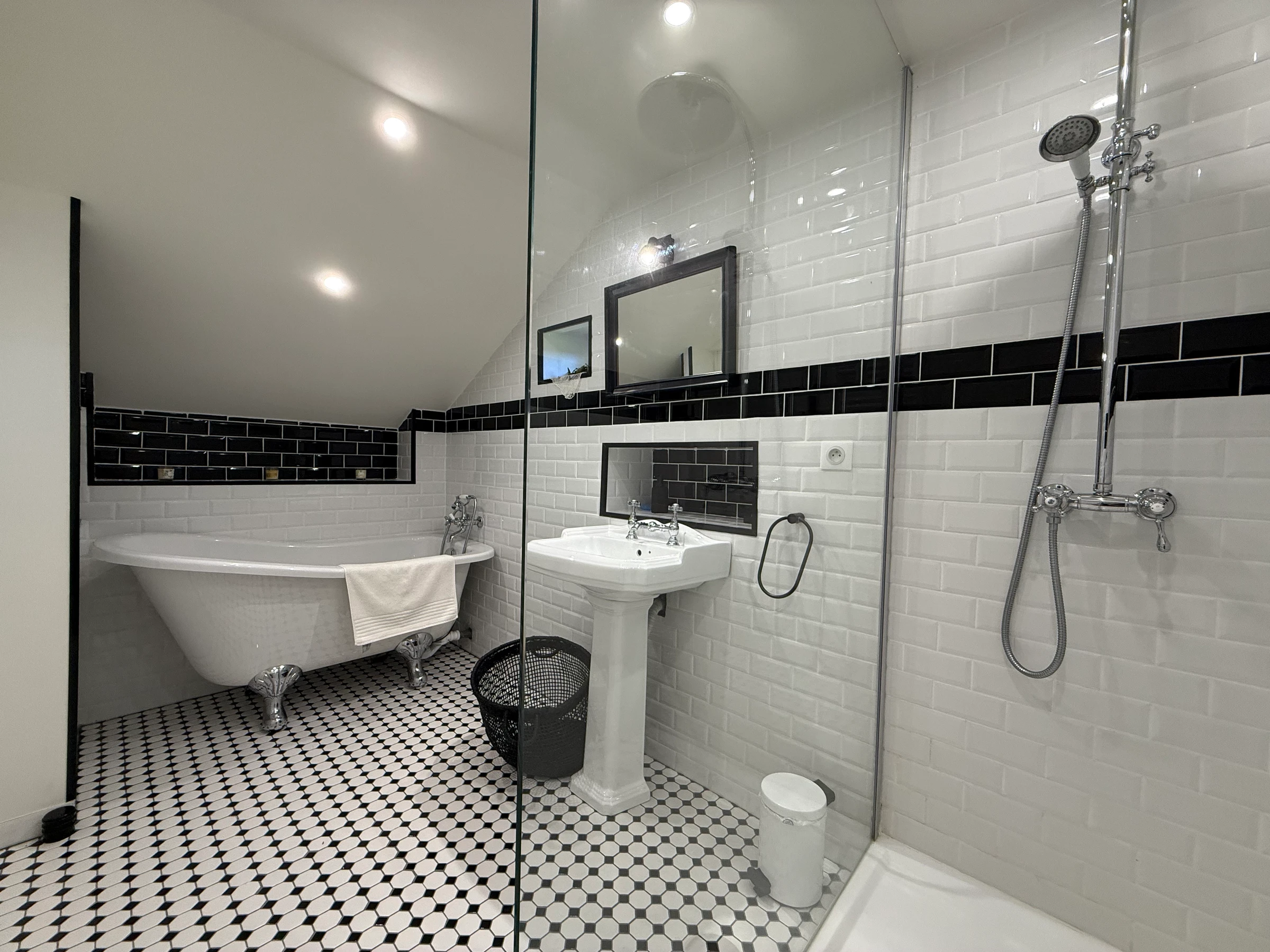 [hidden] Badezimmer mit Badewanne und ebenerdiger Dusche