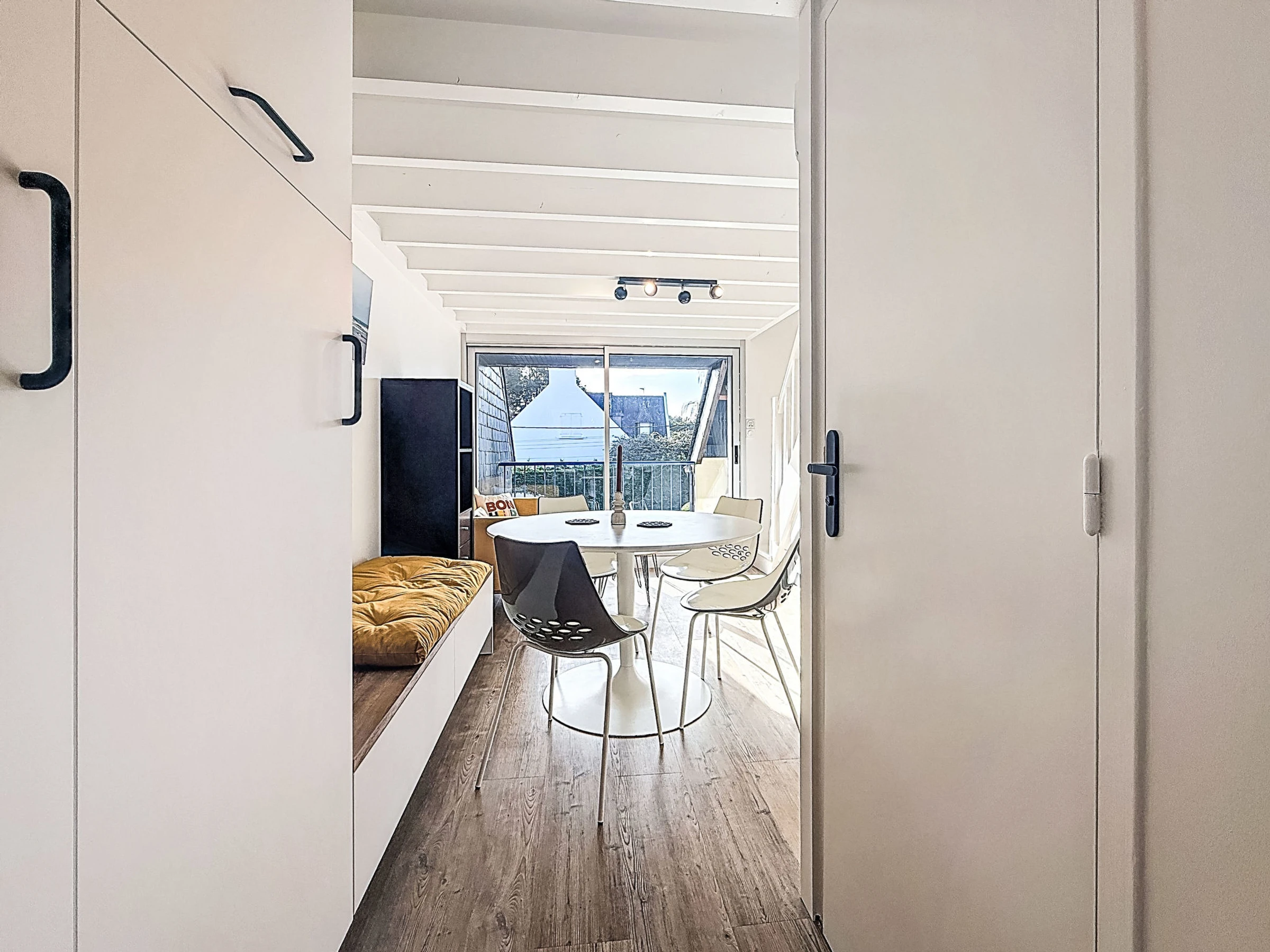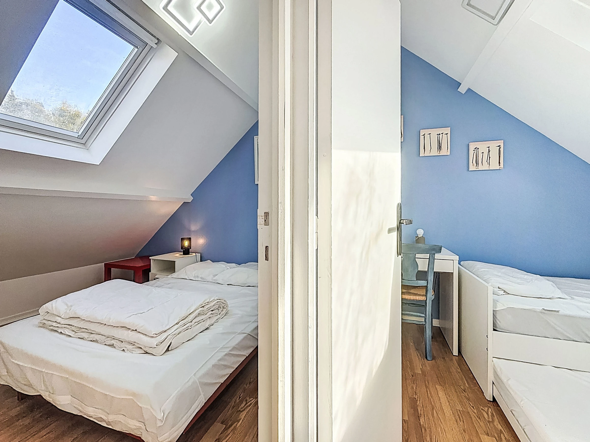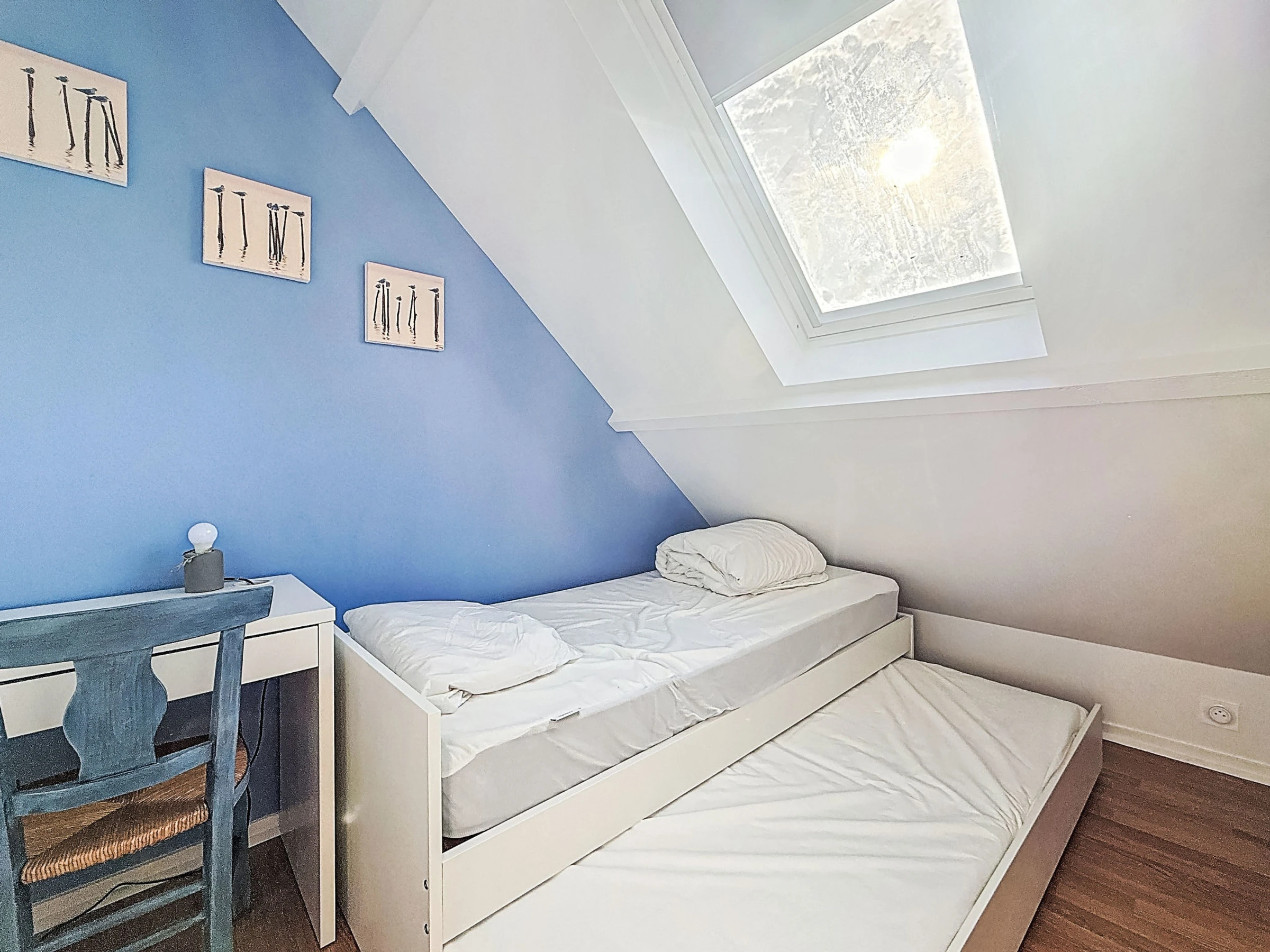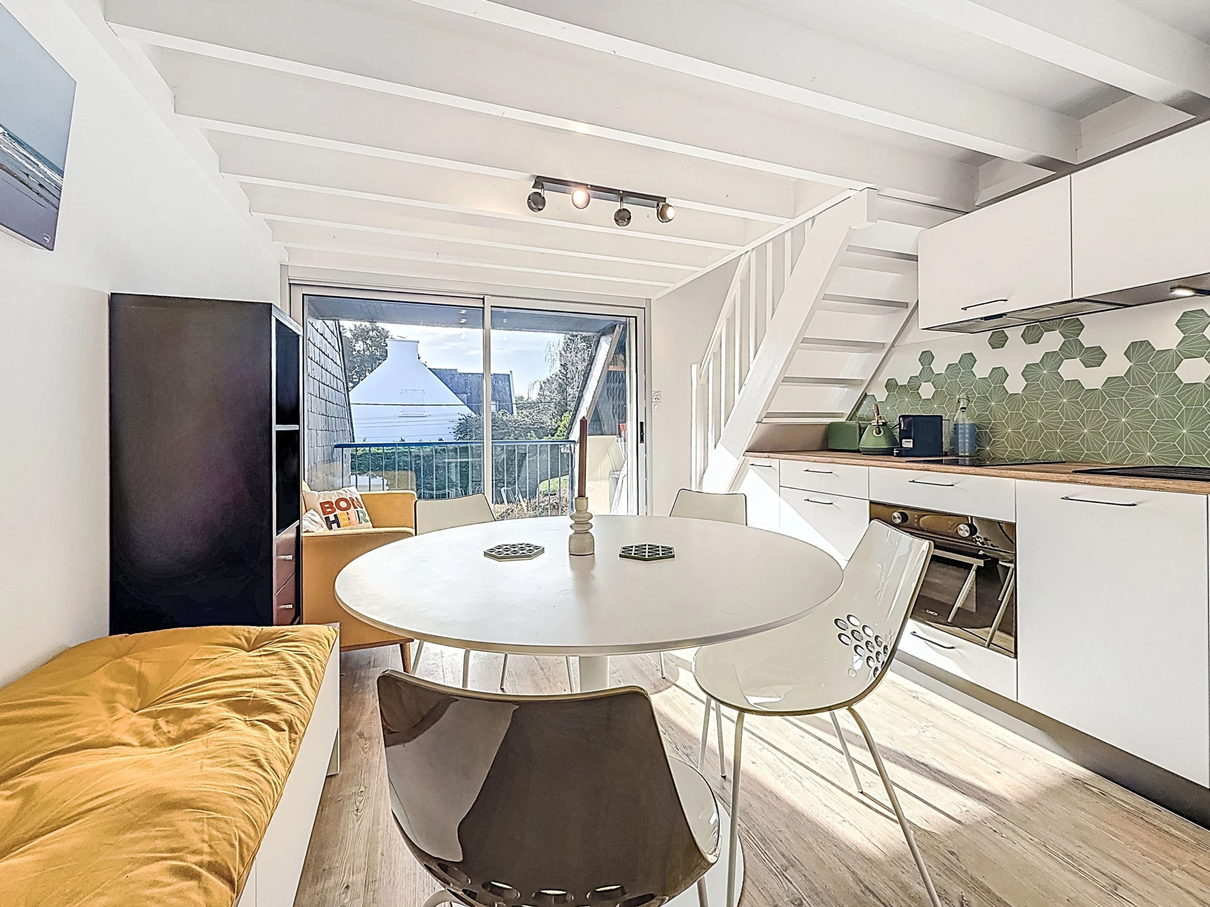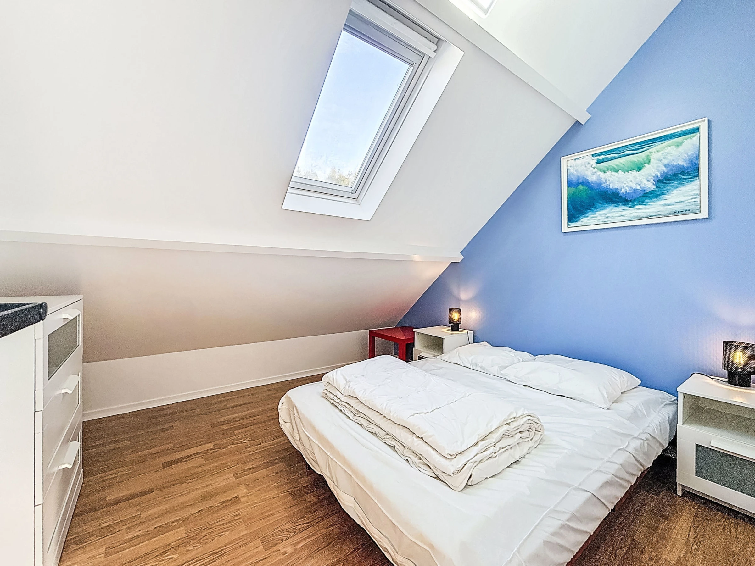 "Kernevest", 4-Zimmer-Wohnung 35 m2 auf 2 Stockwerken im 1. Stock. Renoviert im Jahre 2026, komfortabel eingerichtet: Esszimmer mit Klimaanlage. Ausgang zum Balkon, Richtung Süden. 1 Zimmer mit 1 franz. Bett (140 cm, Länge 190 cm). Offene Küche (Backofen, Wasserkocher, Mikrowelle, elektrische Kaffeemaschine). Bad, sep. WC. E-Heizung. Obergeschoss: 1 Zimmer mit 1 Bett (90 cm, Länge 190 cm). 1 Zimmer mit 1 franz. Bett (140 cm, Länge 190 cm). Kleiner Balkon 5 m2. Balkonmöbel. Zur Verfügung: Haartrockner. Parkplatz beim Haus. Bitte beachten: Rauchmelder. Inserat einer Privatperson nach Artikel 155, IV, CGI. [hidden]