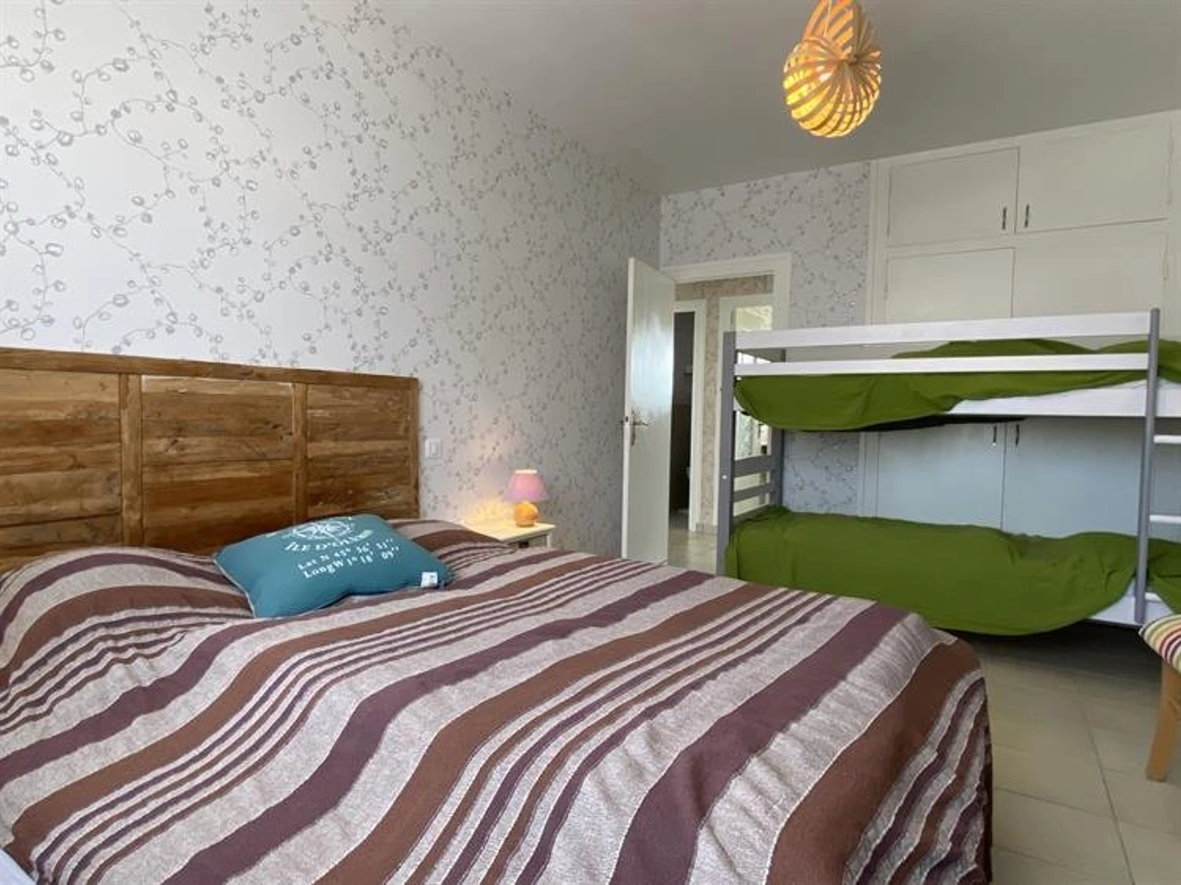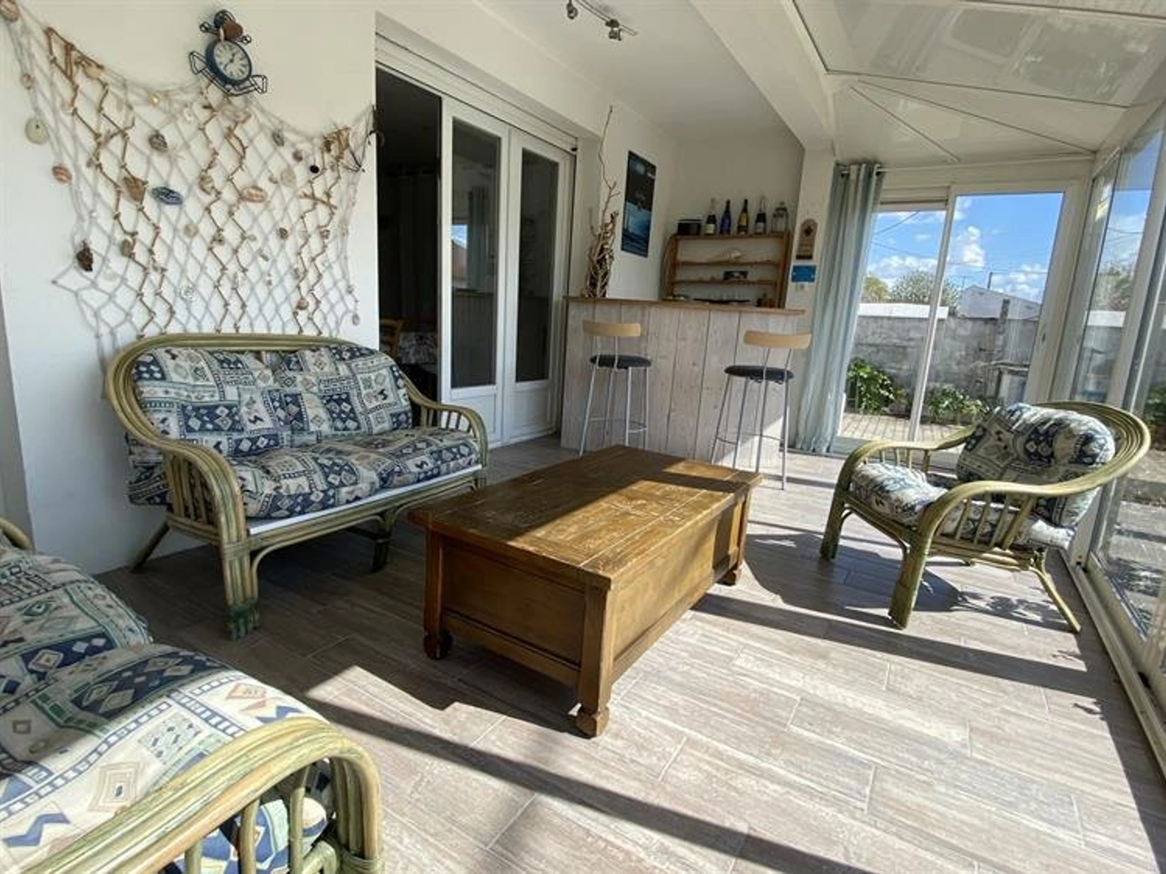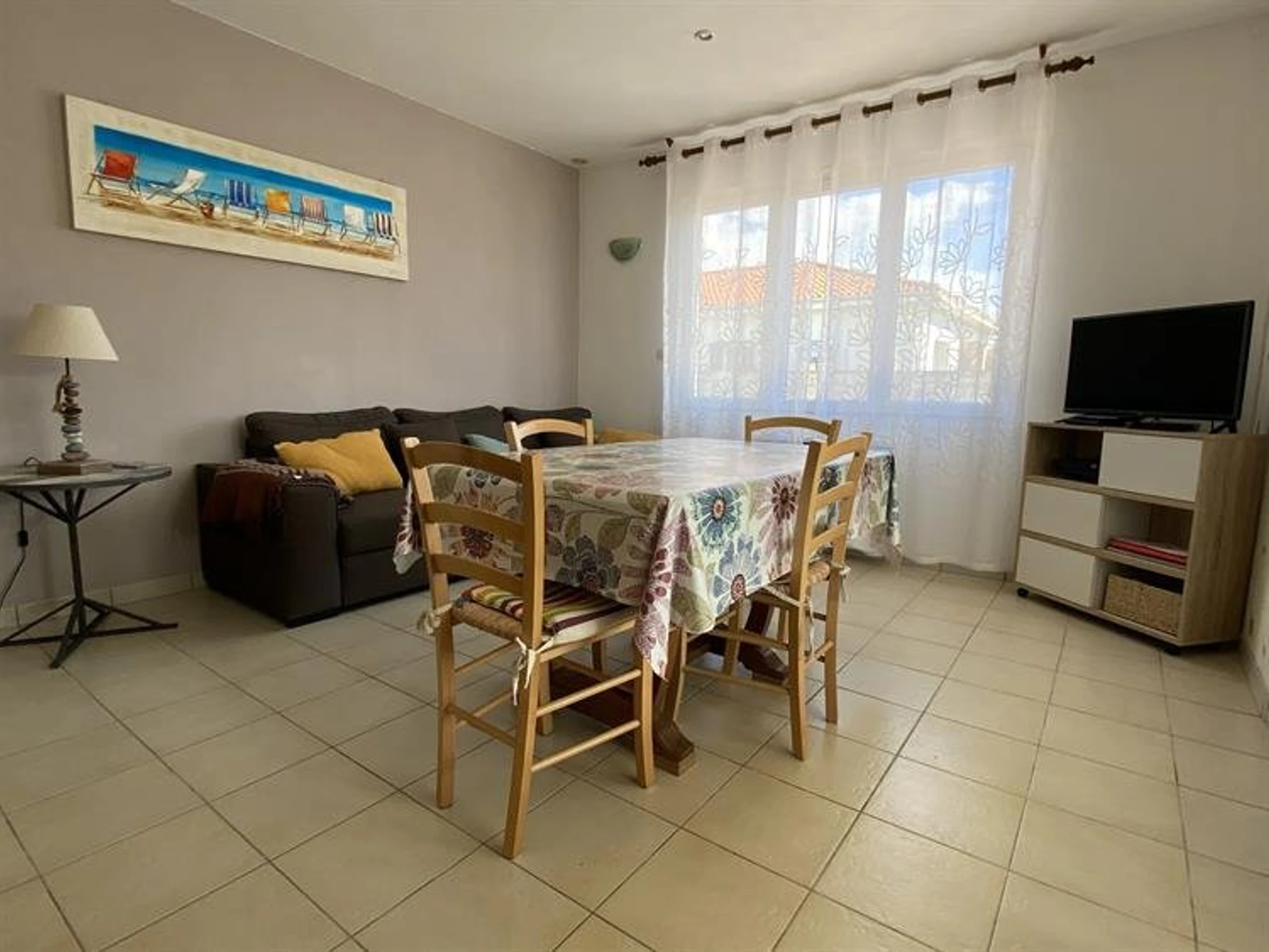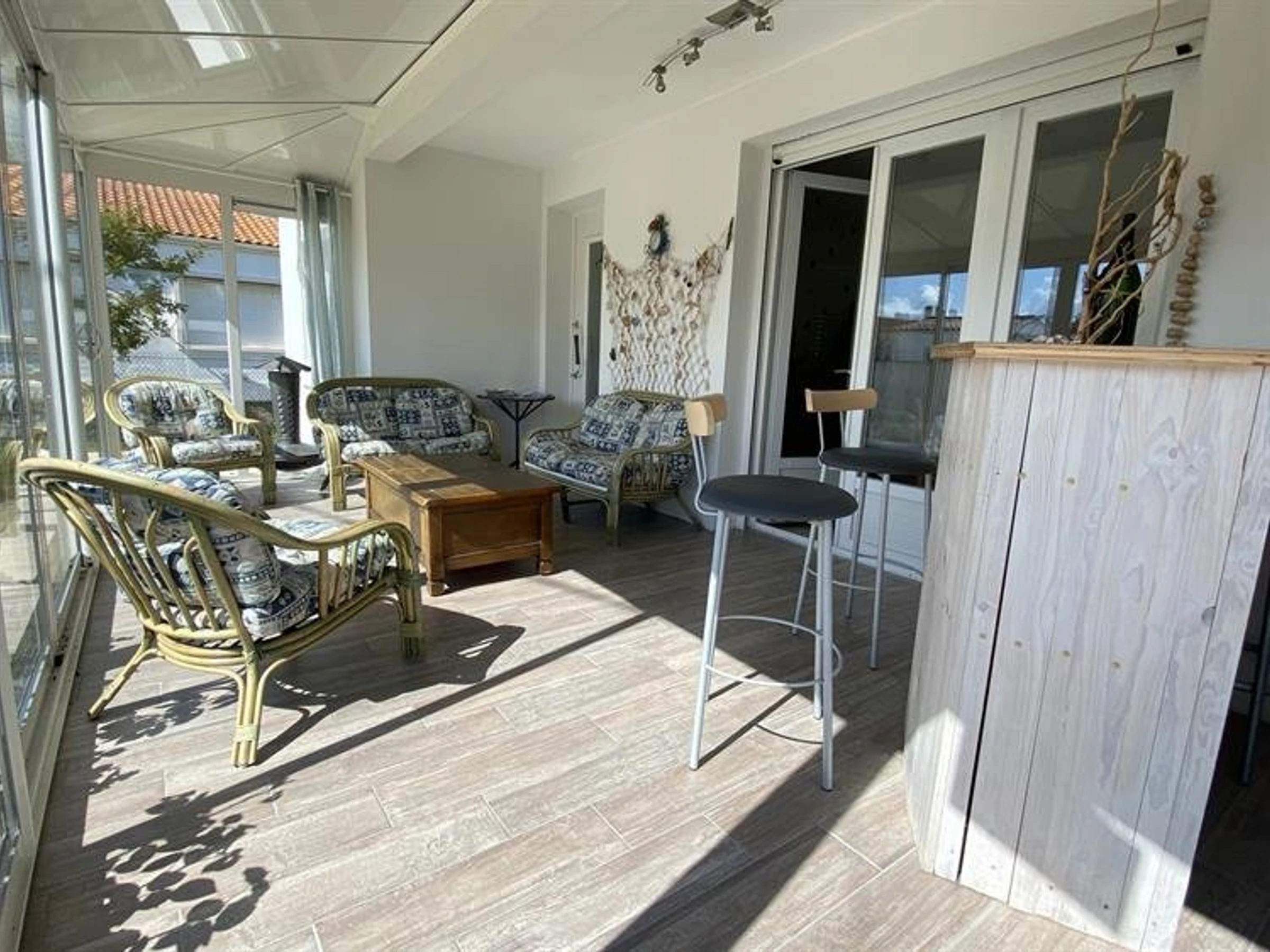 Charmantes Ferienhaus nur wenige Schritte vom Hafen von La Cotinière entfernt. Es verfügt über ein Wohnzimmer, eine separate Küchenzeile, einen Hauswirtschaftsraum mit Waschmaschine, Trockner und Gefrierschrank, eine Fahrradgarage mit separatem WC, ein Duschbad mit ebenerdiger Dusche, ein erstes Schlafzimmer mit vier Betten (Etagenbetten 160 cm + 90 cm), ein zweites Schlafzimmer mit zwei Betten (160 cm), ein separates WC und eine Veranda mit Sitzecke. Draußen erwartet Sie ein umzäunter Garten mit Holzterrasse und Gartenmöbeln. Parkplätze stehen auf dem Grundstück zur Verfügung.