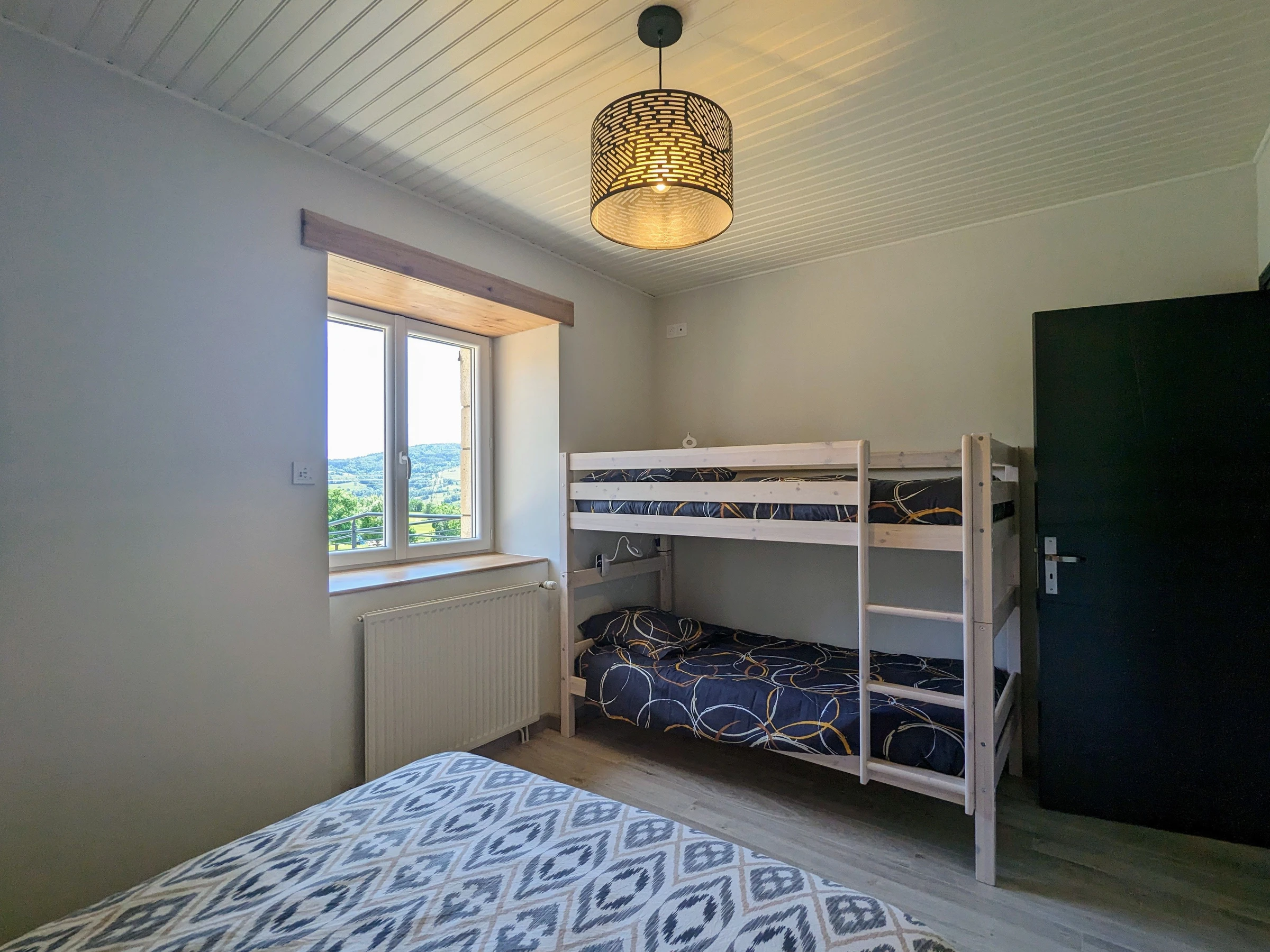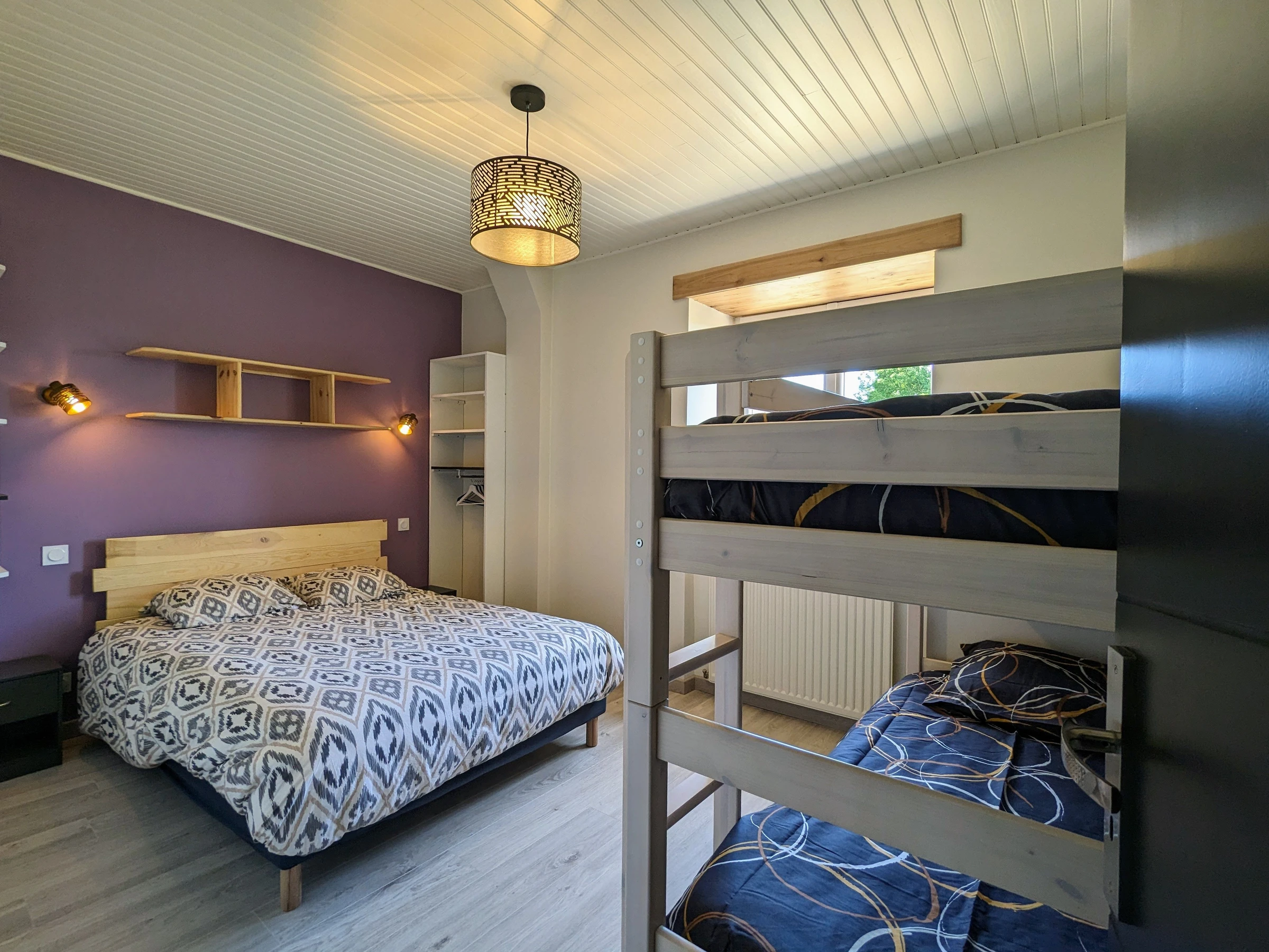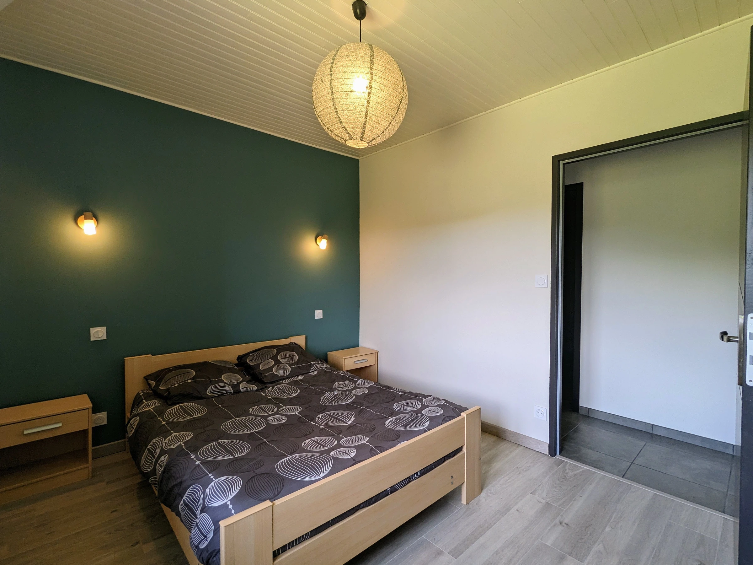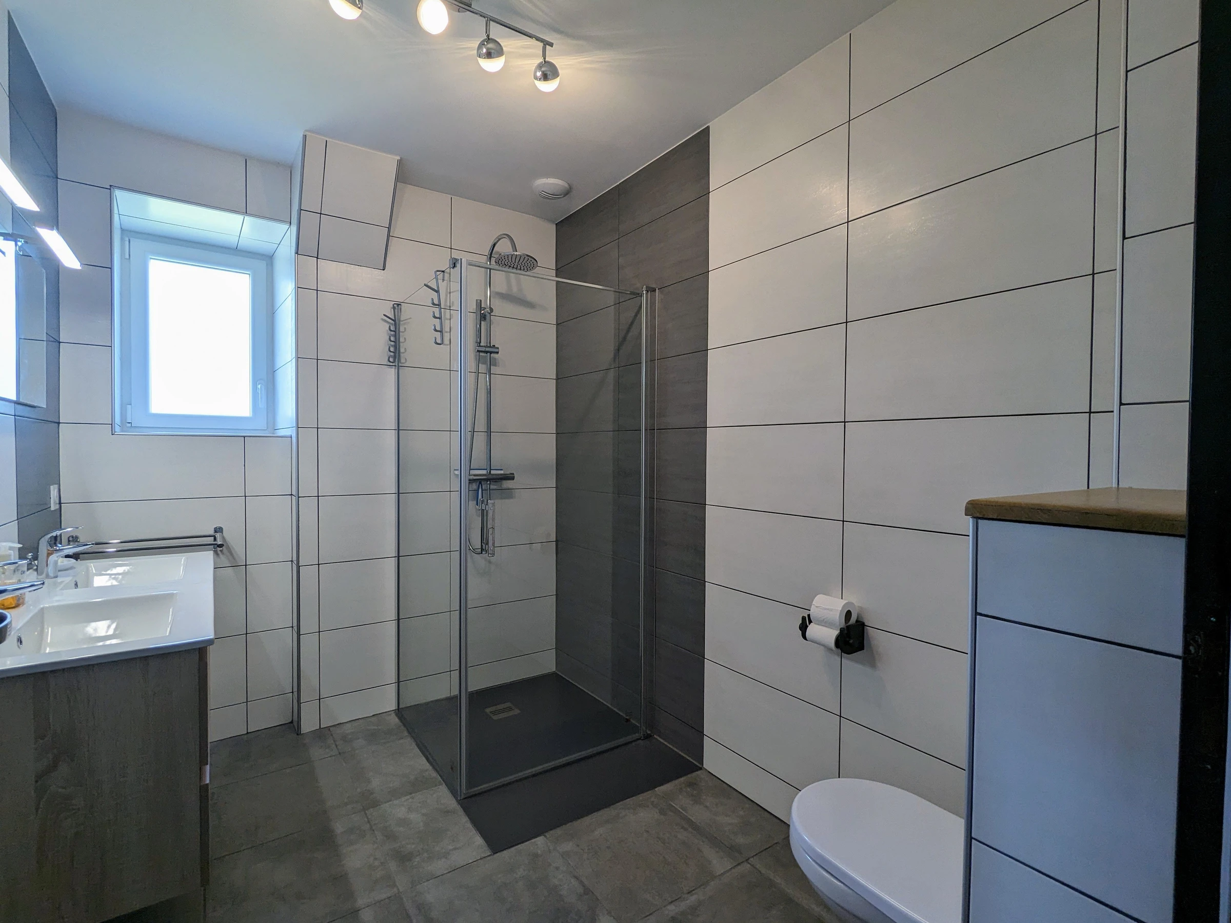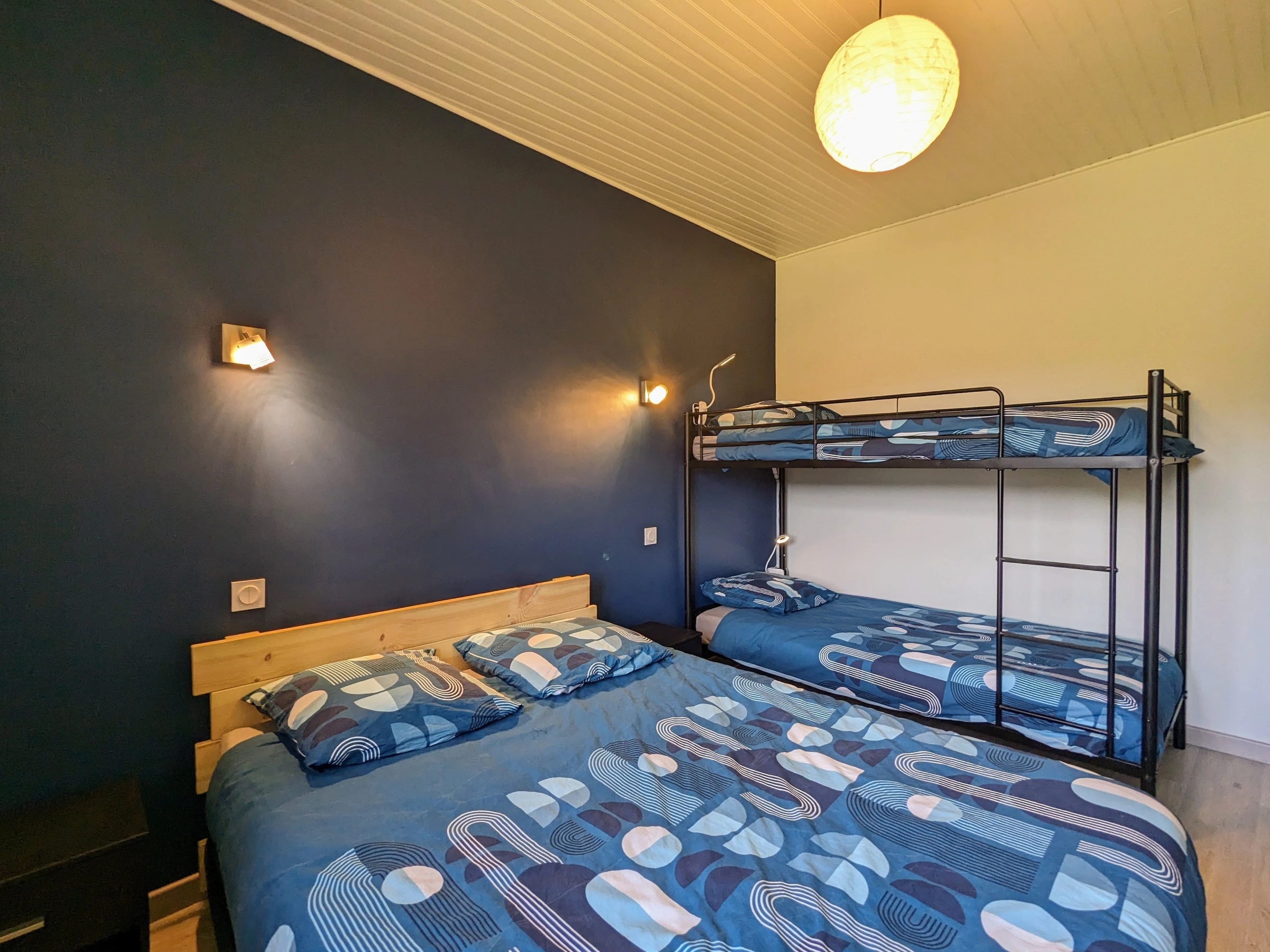 Der Eingang erfolgt über einen Flur, der zum Wohnbereich führt. Dieser umfasst eine voll ausgestattete Küche (komplettes Kochgeschirr, Elektroherd, Mikrowelle, Senseo- und Filterkaffeemaschine, Wasserkocher, Toaster, Geschirrspüler, Küchenmaschine, Raclette-Grill, Grillplatte usw.) und eine Fernsehlounge mit Bibliothek und einigen Brettspielen. Eine kleine Waschküche mit Waschmaschine und Trockner sowie eine Toilette vervollständigen den Wohnbereich. Der Schlafbereich auf derselben Ebene besteht aus drei Schlafzimmern (eines mit Doppelbett, die anderen beiden mit Doppelbett und zwei Einzelstockbetten), einem Badezimmer mit ebenerdiger Dusche, Toilette und Doppelwaschbecken sowie einem zweiten Badezimmer mit ebenerdiger Dusche und Waschbecken.