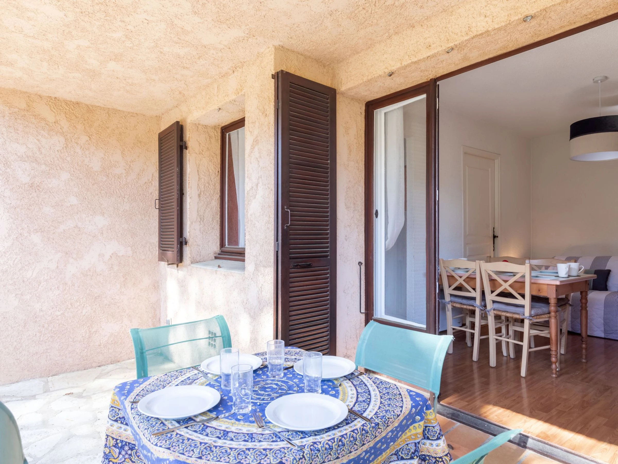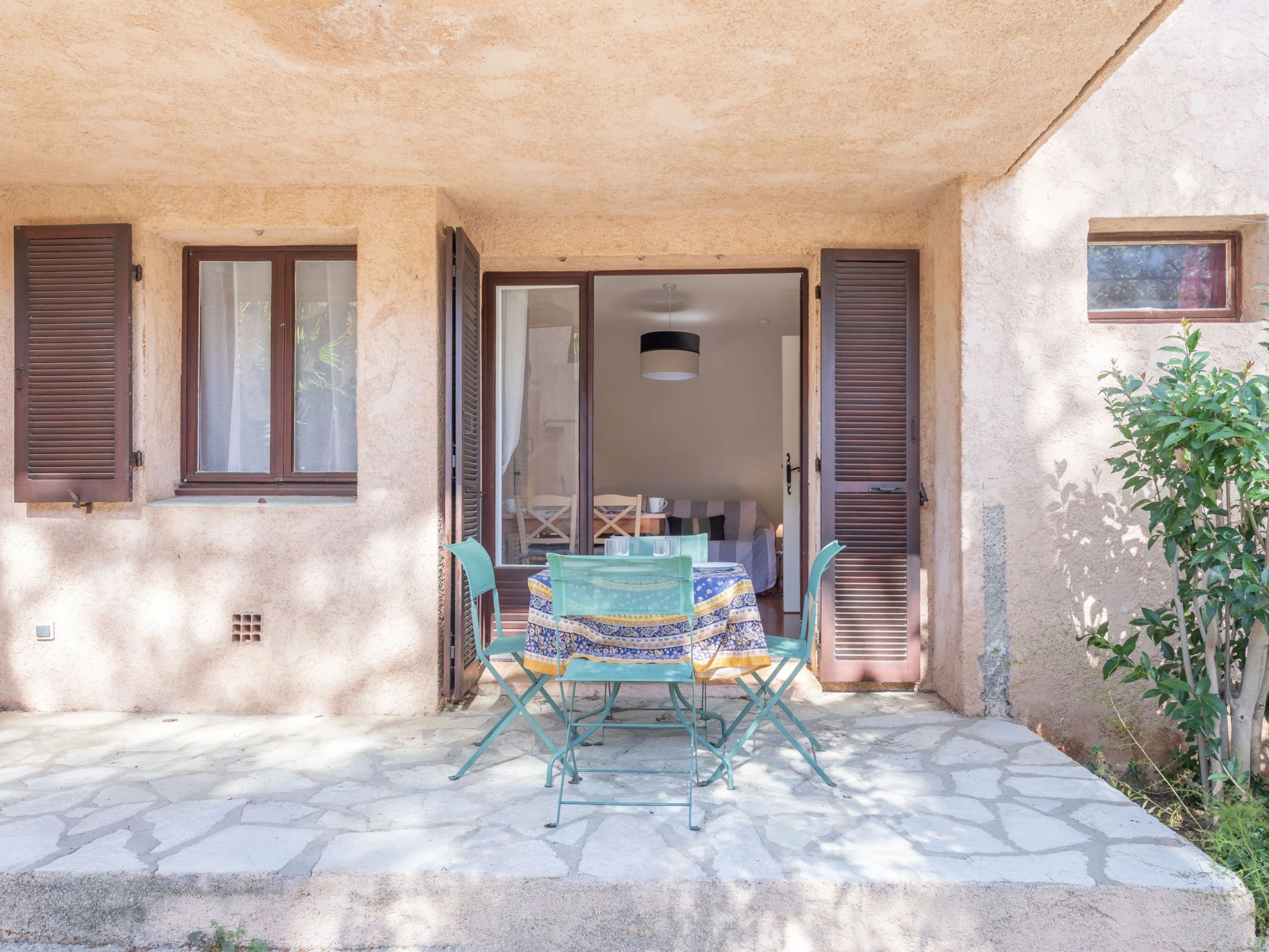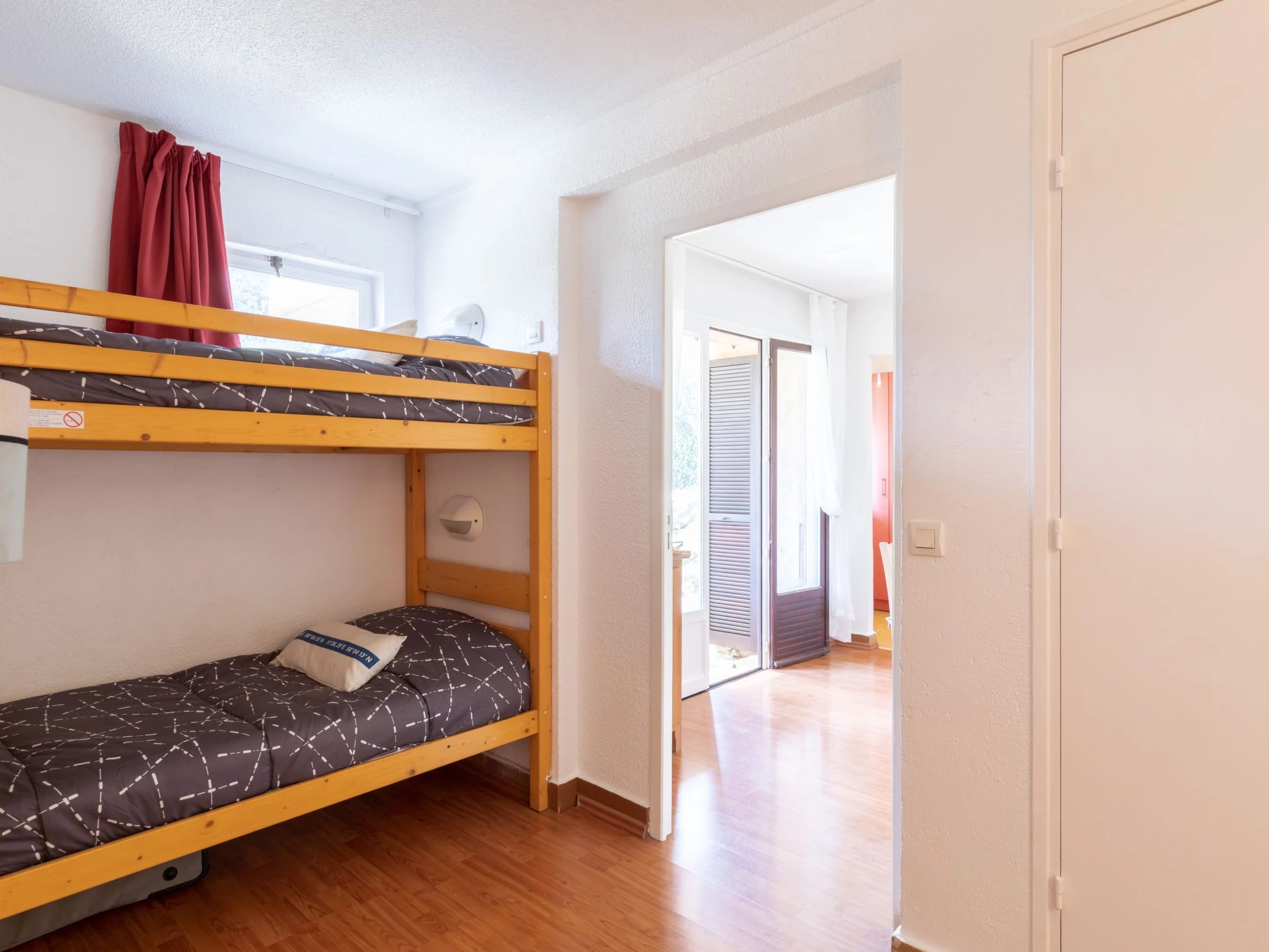 2-Zimmer-Wohnung 28 m2, im Erdgeschoss. Durchgangszimmer mit 1 x 2 Etagenbetten (90 cm, Länge 190 cm). Wohn-/Esszimmer mit 1 Doppeldiwanbett (1 x 140 cm, Länge 190 cm), TV, Flachbildschirm und Klimaanlage. Ausgang zur Terrasse. Kochnische (Geschirrspüler, 4 Induktionskochplatten, Toaster, Wasserkocher, Mikrowelle, elektrische Kaffeemaschine). Dusche/WC. E-Heizung. Terrasse. Terrassenmöbel. Zur Verfügung: Bügeleisen, Haartrockner. Internet (Wireless LAN, extra). Parkplatz beim Haus. Bitte beachten: Nichtraucher-Unterkunft. TV nur FR. Rauchmelder.