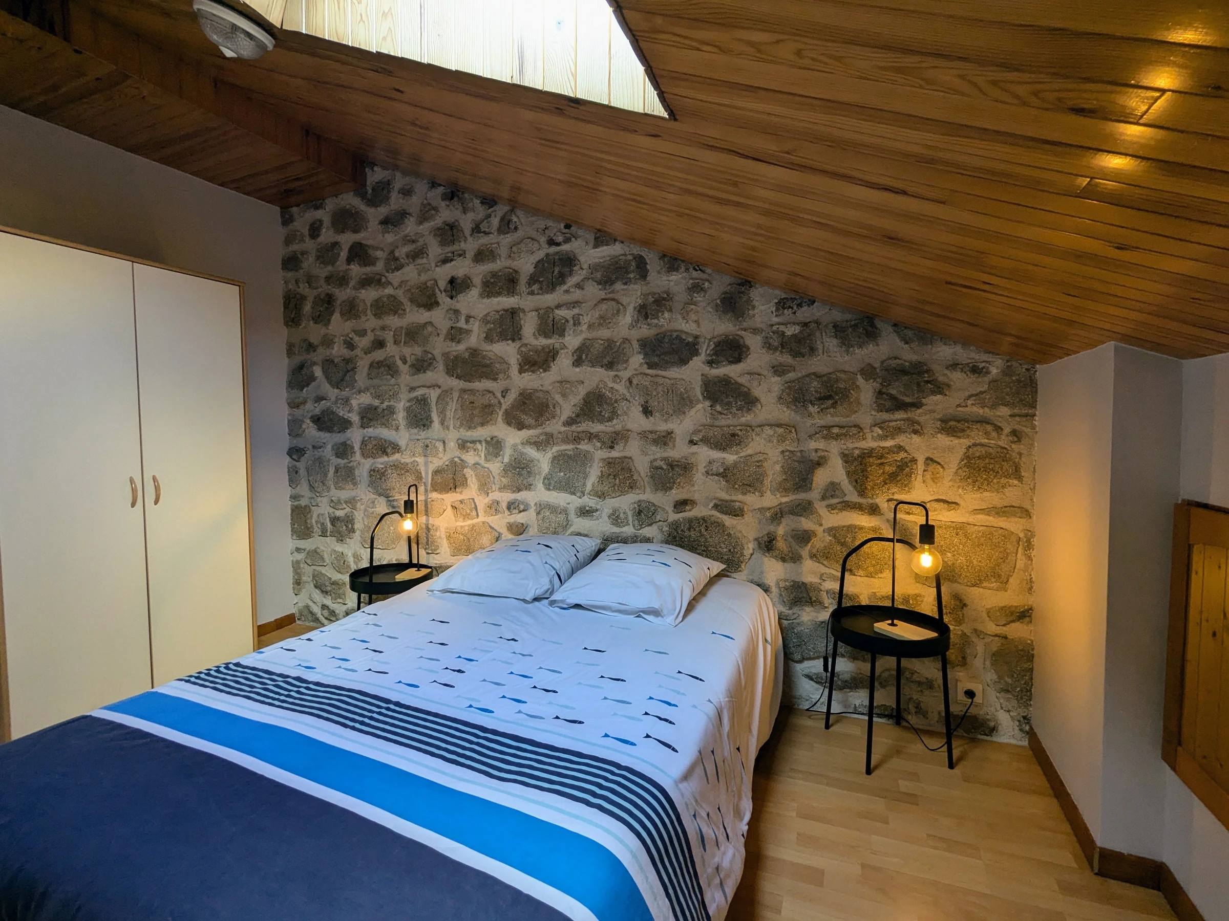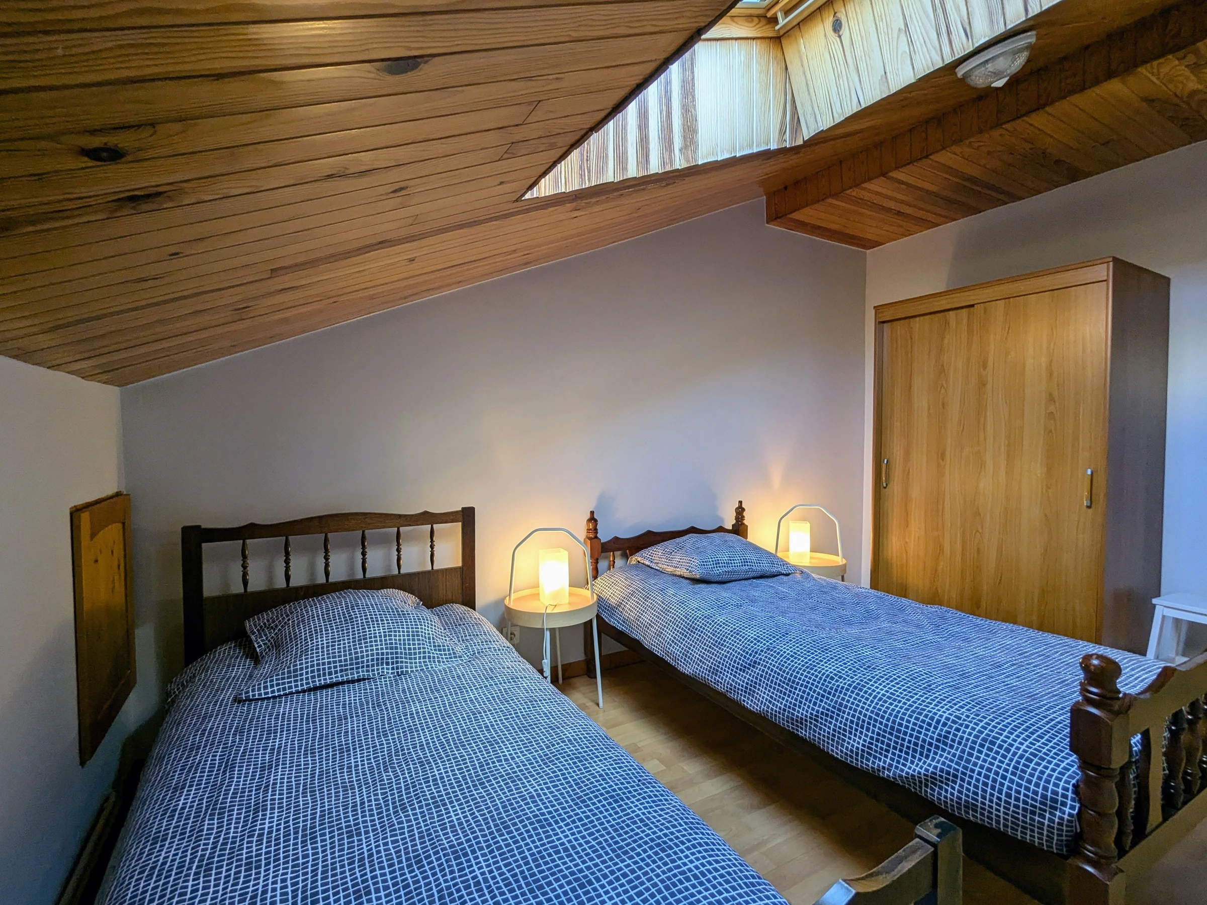 Die 2. Etage, die zu einem Zwischengeschoss umgebaut wurde, verfügt über 2 Schlafzimmer, eines mit einem 140 cm breiten Bett und einem Babybett, das andere mit zwei 90 cm breiten Betten.
