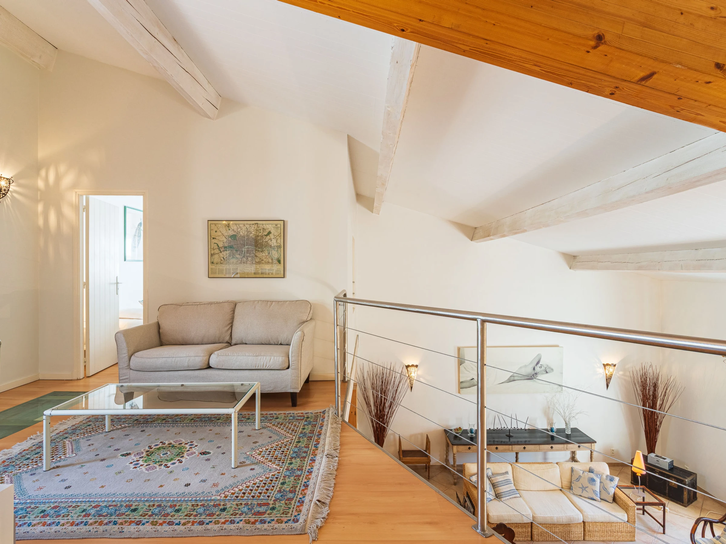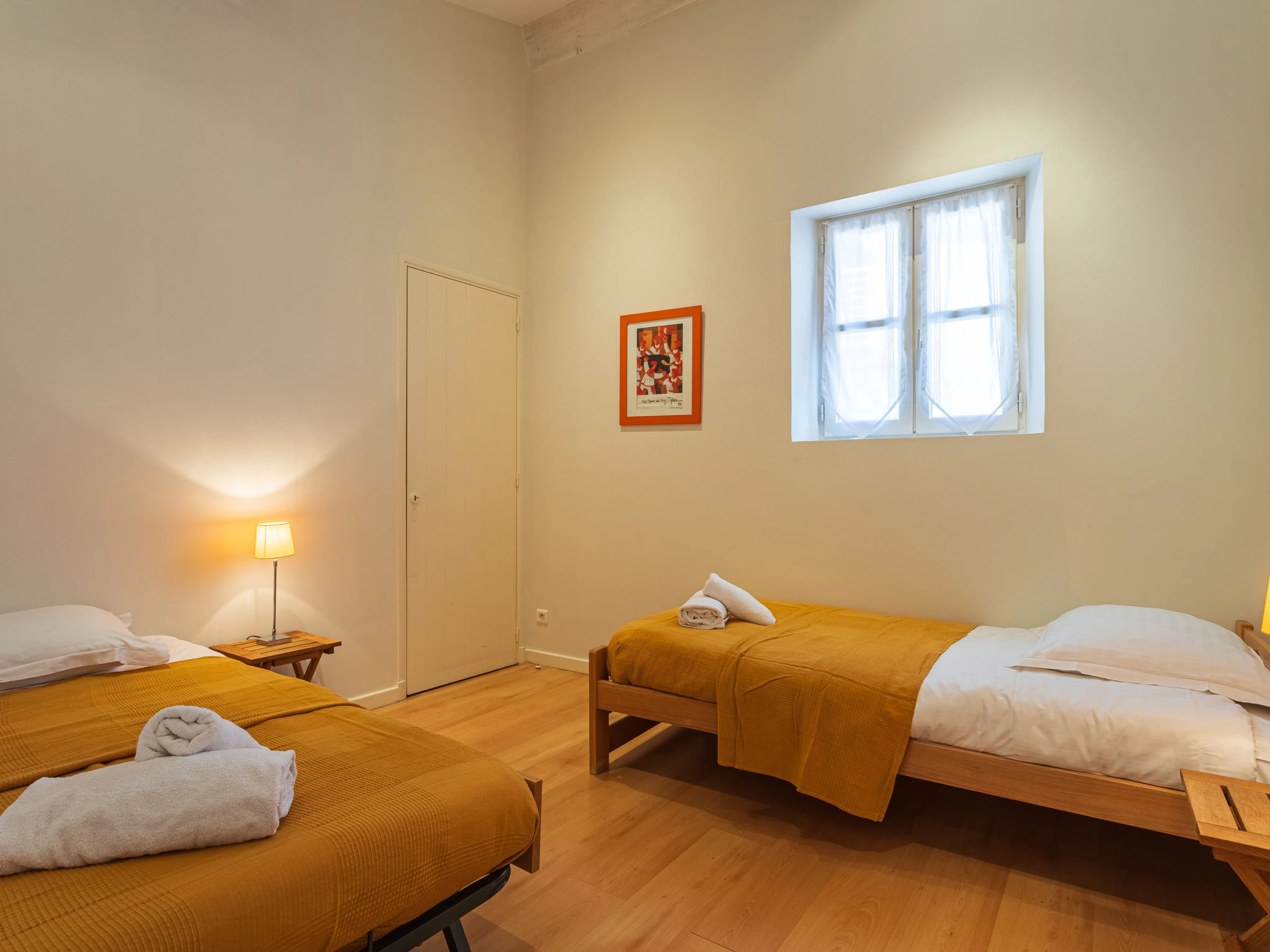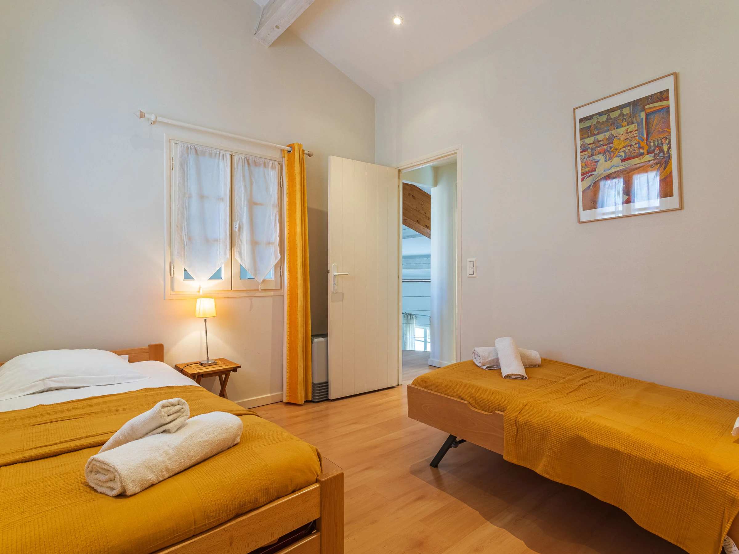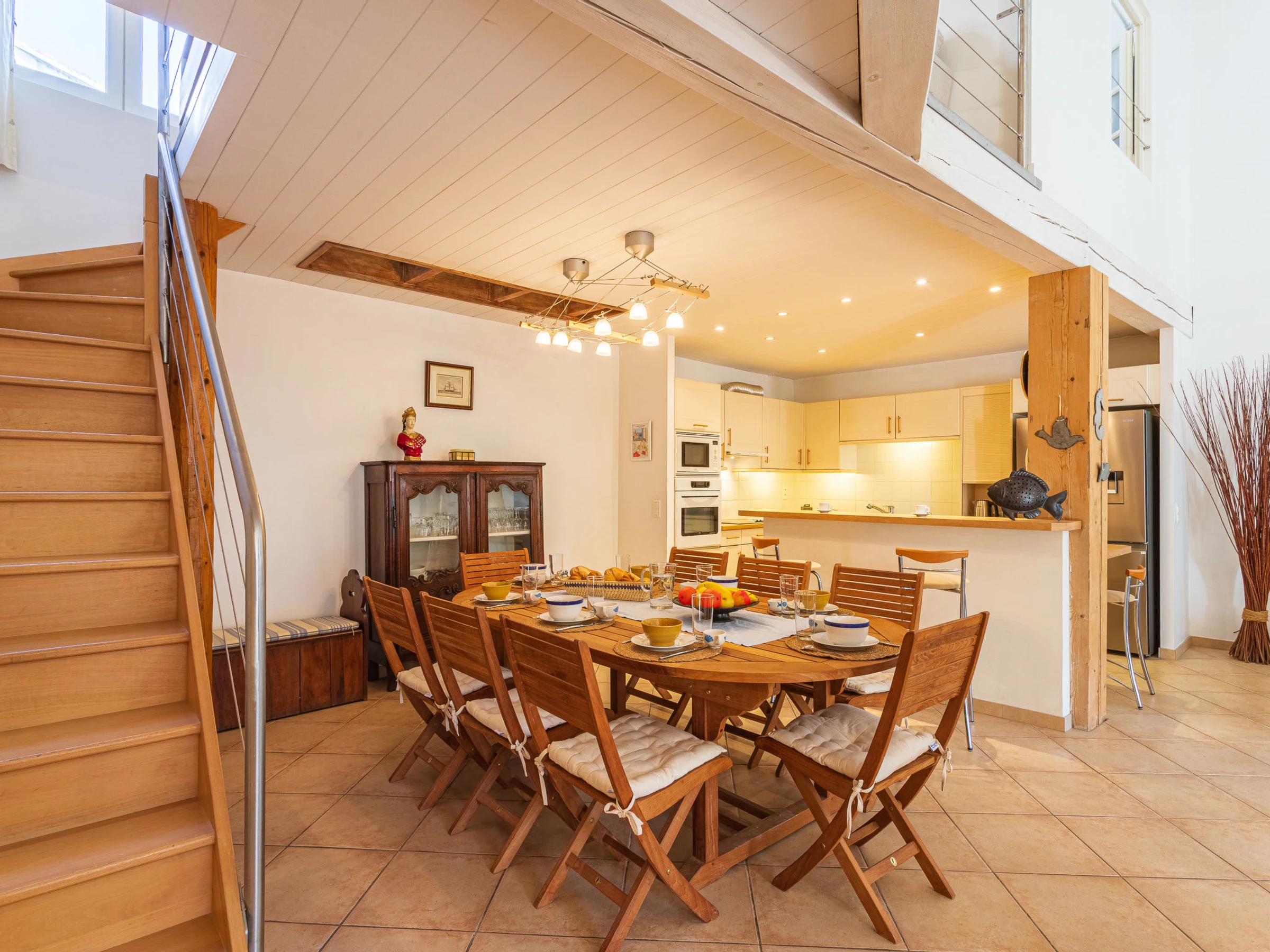 "Le Tonnelier", 5-Zimmer-Maisonette-Wohnung 150 m2 im 1. Stock. Gemütlich eingerichtet: grosses Wohn-/Esszimmer. 1 Zimmer mit 1 franz. Bett (160 cm, Länge 200 cm), sep. WC und Dusche. Offene Küche (Backofen, Geschirrspüler, 3 Glaskeramikplatten, Toaster, Wasserkocher, Mikrowelle, Tiefkühler, elektrische Kaffeemaschine, Kapseln für die Kaffeemaschine (Nespresso) extra). Bad, sep. WC. Obergeschoss: offener kleiner Salon mit TV (Flachbildschirm). 1 Zimmer mit 1 franz. Bett (160 cm, Länge 200 cm). 1 abgeschrägtes Zimmer, Deckenhöhe 150 - 240 cm mit 2 Betten (90 cm, Länge 190 cm). 1 Zimmer mit 1 Ausziehbett (2 Pers. 2 x 90 cm, Länge 190 cm). Dusche/WC. E-Heizung, Klimaanlage. Zur Verfügung: Waschmaschine, Wäschetrockner, Bügeleisen, Haartrockner. Internet (WLAN, gratis). Garage Nr. 315 (1 Auto) in 400 m. Bitte beachten: 1 kleines Haustier/Hund erlaubt. Rauchmelder. Inserat eines gewerblichen Vermieters nach Artikel 155, IV, CGI [hidden]