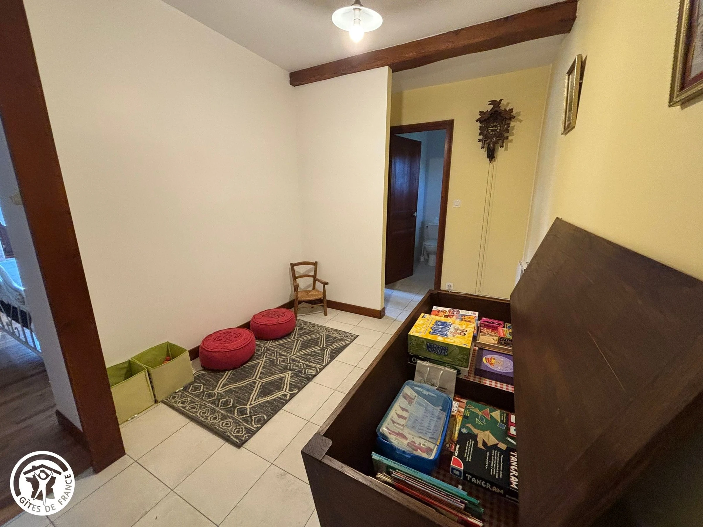 Genießen Sie einen erholsamen Landurlaub am Fluss in dieser ehemaligen Wassermühle, nur 8 km vom Zentrum von Chantonnay, 20 km vom Bergfried Bazoges-en-Pareds und 25 km vom berühmten Freizeitpark Puy du Fou entfernt. Das ebenerdige Haus bietet einen Wohn-/Ess-/Küchenbereich mit offenem Kamin, ein Schlafzimmer mit Doppelbett und Kinderbett, ein Duschbad, ein separates WC, einen Spielbereich, ein weiteres Schlafzimmer mit Doppelbett, ein Schlafzimmer mit Einzelbett und zwei Etagenbetten sowie ein Duschbad mit WC. Draußen finden Sie außerdem einen Hauswirtschaftsraum mit Waschmaschine und Gefrierschrank. Ein großer Außenbereich steht Ihnen ebenfalls zur Verfügung. Im Norden bietet eine Terrasse mit Blick auf den Fluss (Gartenmöbel, Elektrogrill) Zugang über eine Treppe zum darunterliegenden, flussabwärts verlaufenden Grundstück. Dort befindet sich eine über einen Steg erreichbare Insel, an deren Ende sich ein ausgewiesener Angelbereich befindet (Angelschein erforderlich). Der Zugang zur Terrassentreppe kann durch Absperrungen versperrt werden. Südlich des Hauses befindet sich eine Terrasse mit überdachter Sommerküche (Tische, Stühle, Grill, Gasherd, Liegestühle, Dartscheibe etc.). Darüber erstreckt sich ein komplett umzäunter Obstgarten. Ein Carport ist vorhanden.