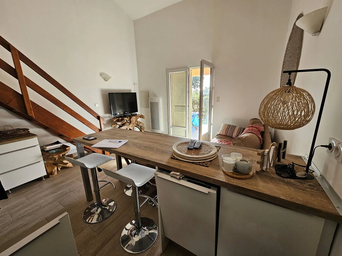 Die klimatisierte, komfortabel ausgestattete Mini-Villa Suara befindet sich in einer wunderschönen, baumbestandenen Residenz mit Pool, zwischen Meer und Bergen in Südkorsika in Sainte-Lucie de Porto-Vecchio (10 km nördlich von Porto-Vecchio), nur 2,5 km vom Strand entfernt. Ohne Gegenüber - 2 Schlafzimmer - möblierte Terrasse mit BBQ. Privater Parkplatz (Carport).