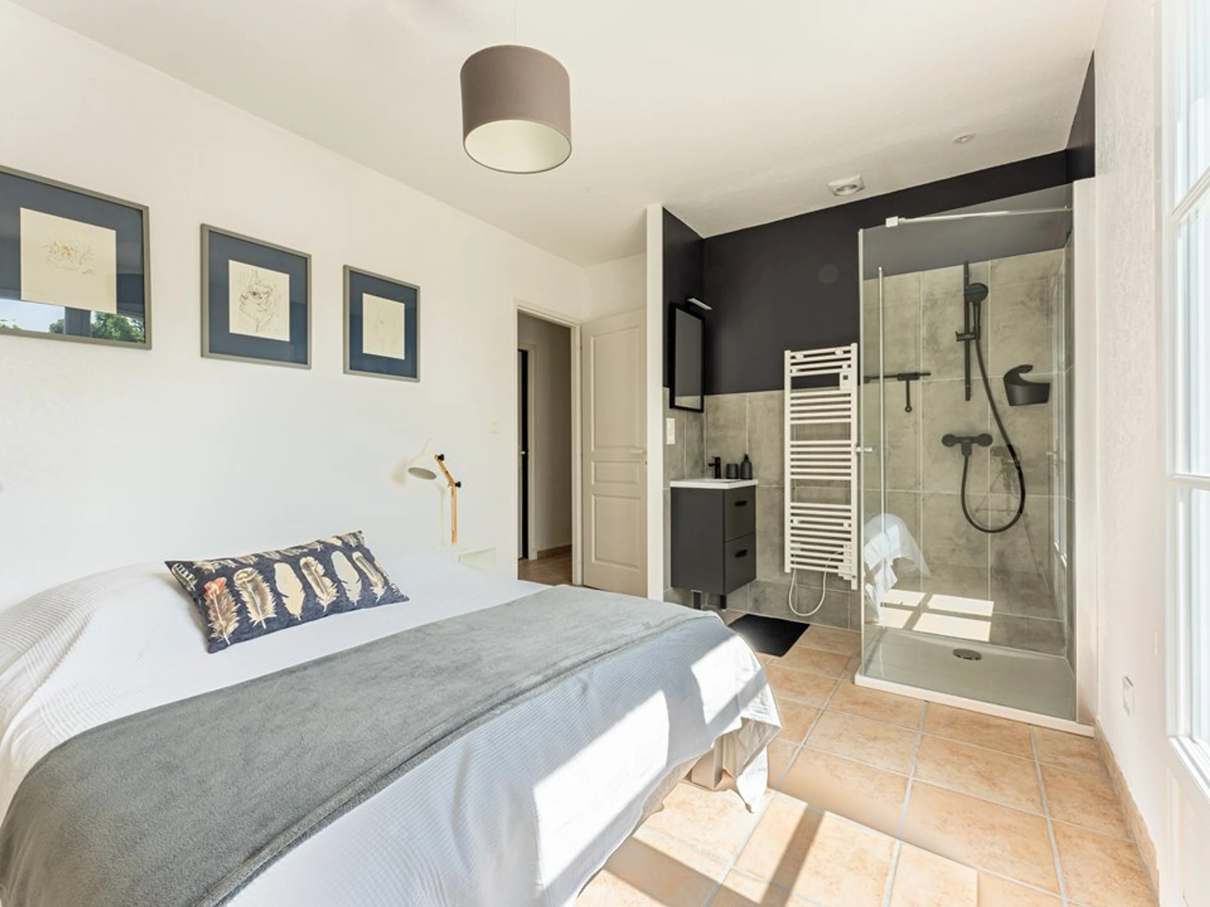 Der Schlafbereich besteht aus einem 13 m² großen Hauptschlafzimmer mit Duschbad und einem 10,76 m² großen Doppelzimmer (Doppelbett).