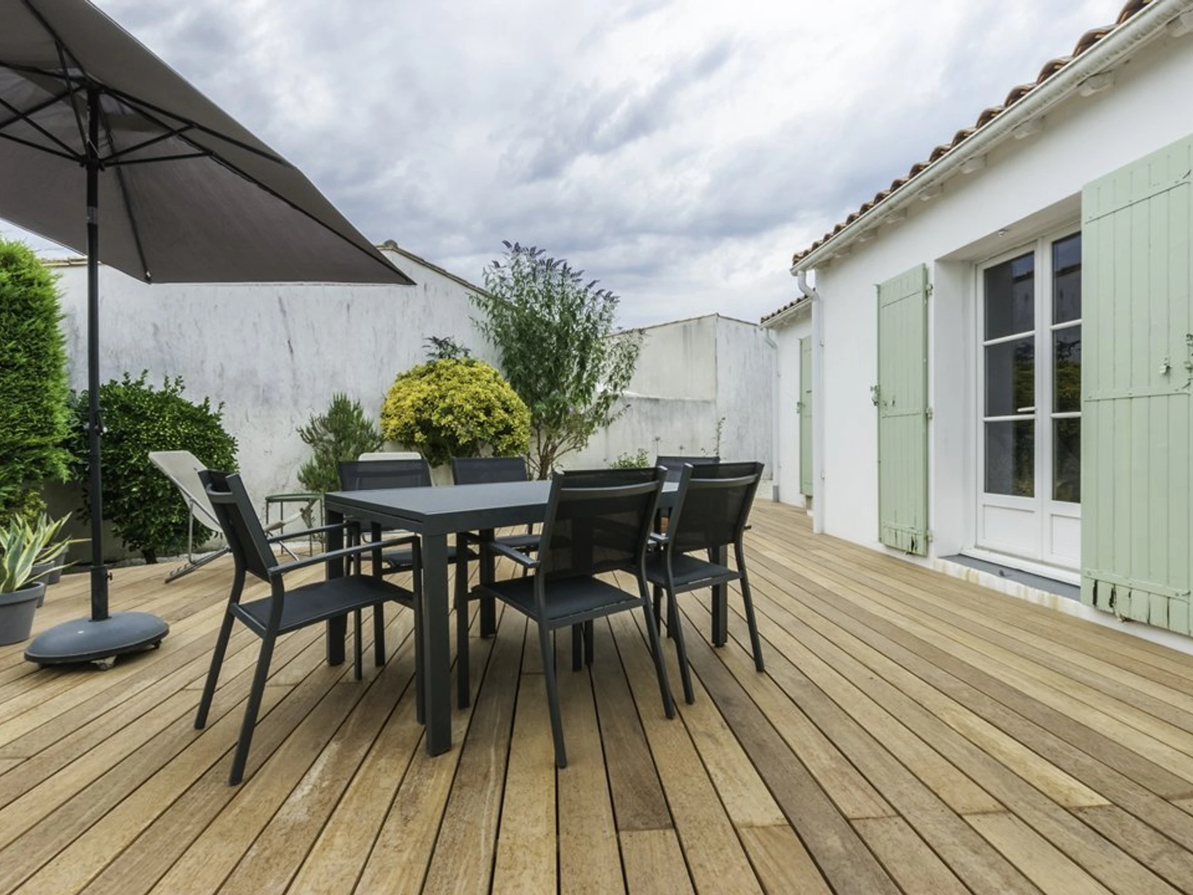 Der Garten und die Terrasse sind mit Gartenmöbeln, einer Gartenlounge und einem Grill ausgestattet.
