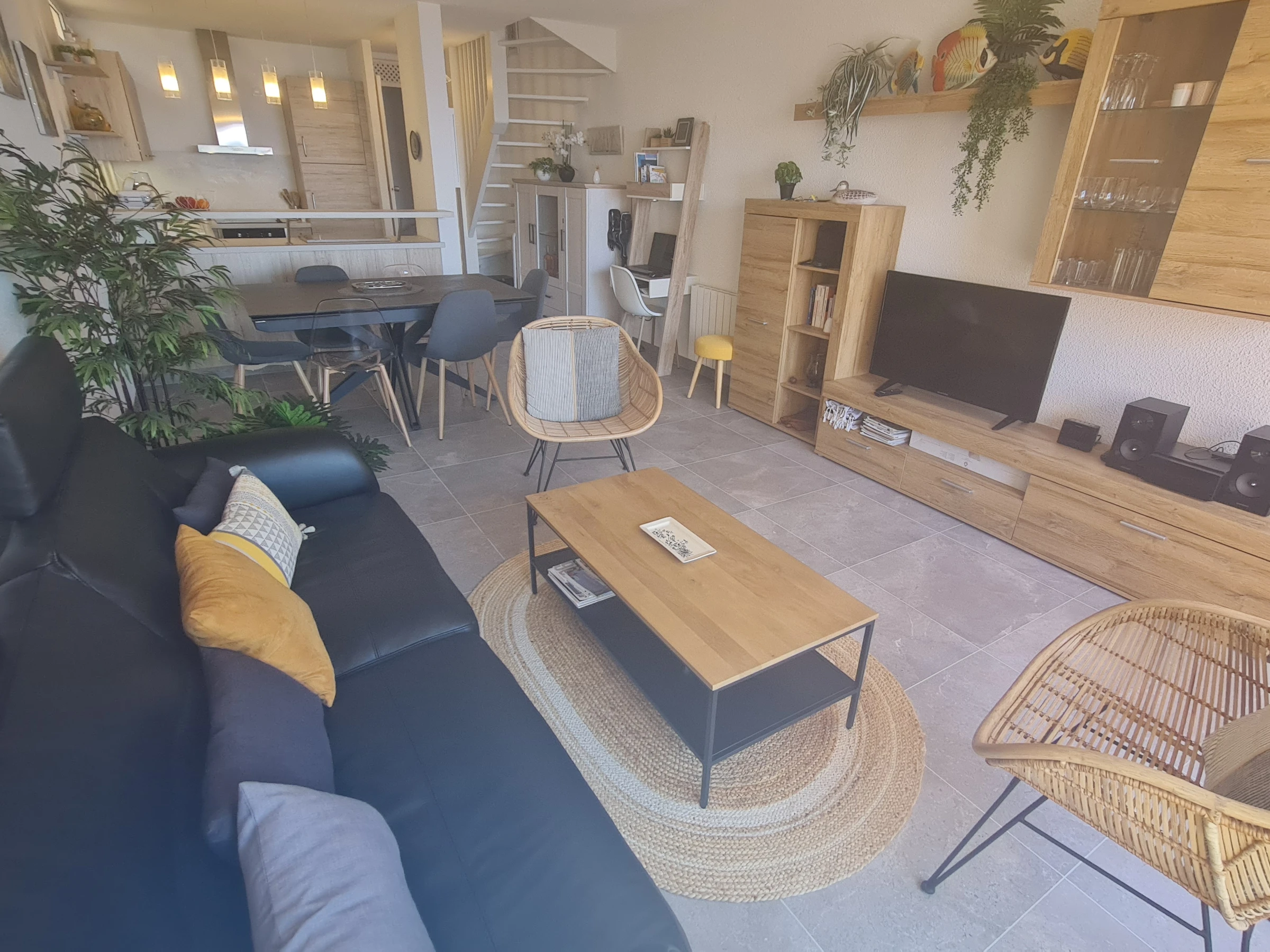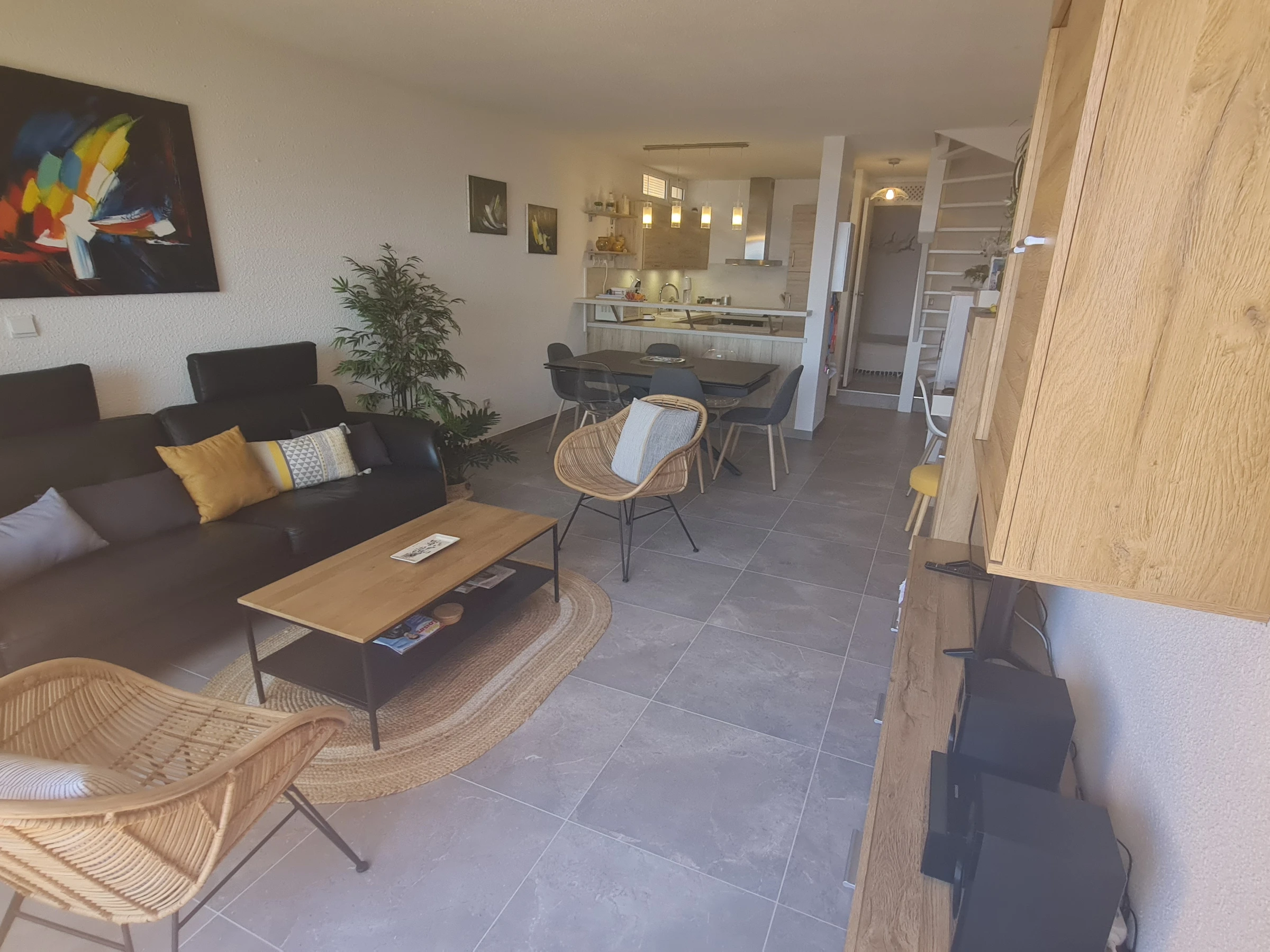 - Offenes Wohnzimmer mit Zugang zur Terrasse mit atemberaubendem Meerblick - Fernseher - Klimaanlage.