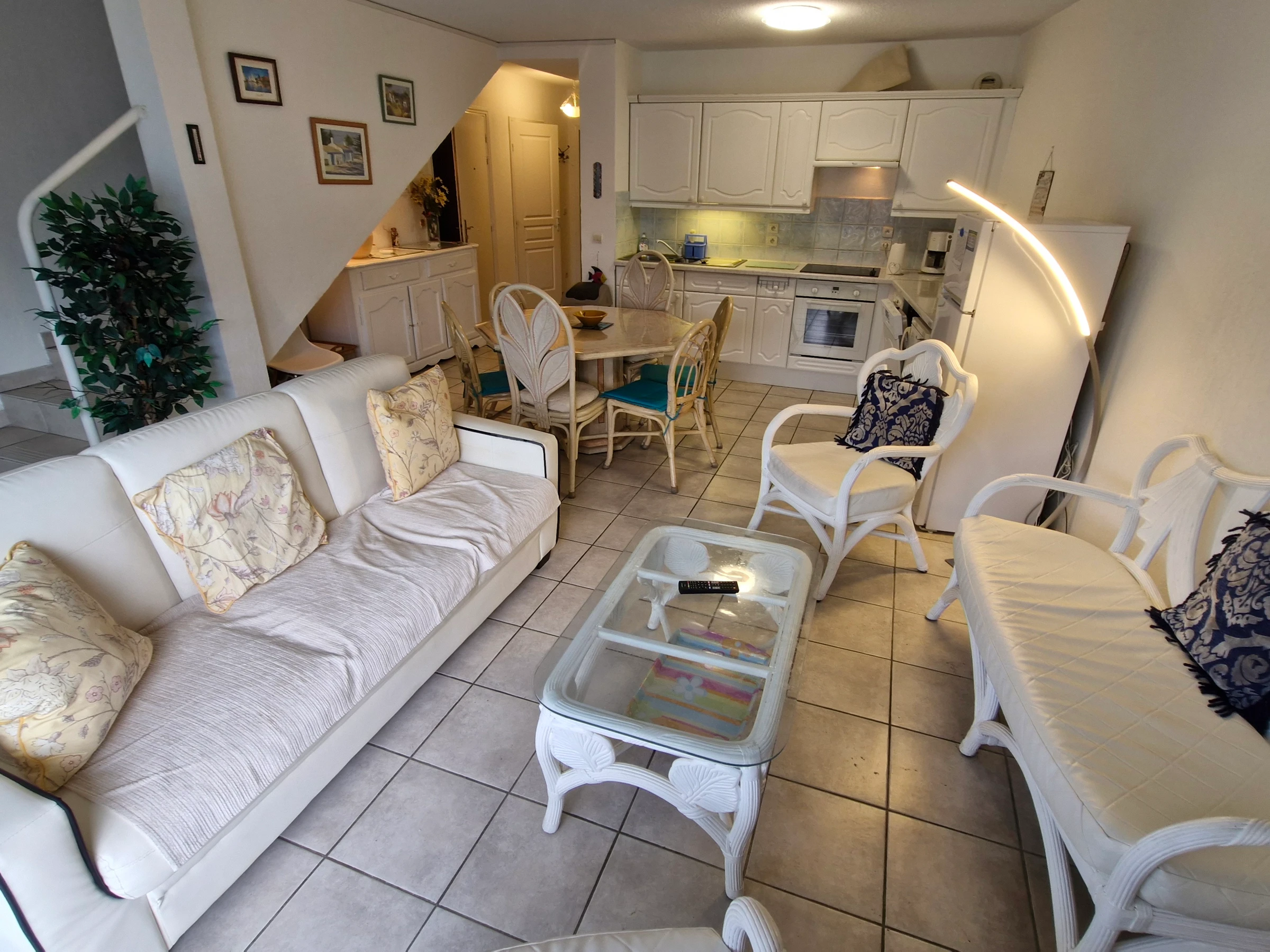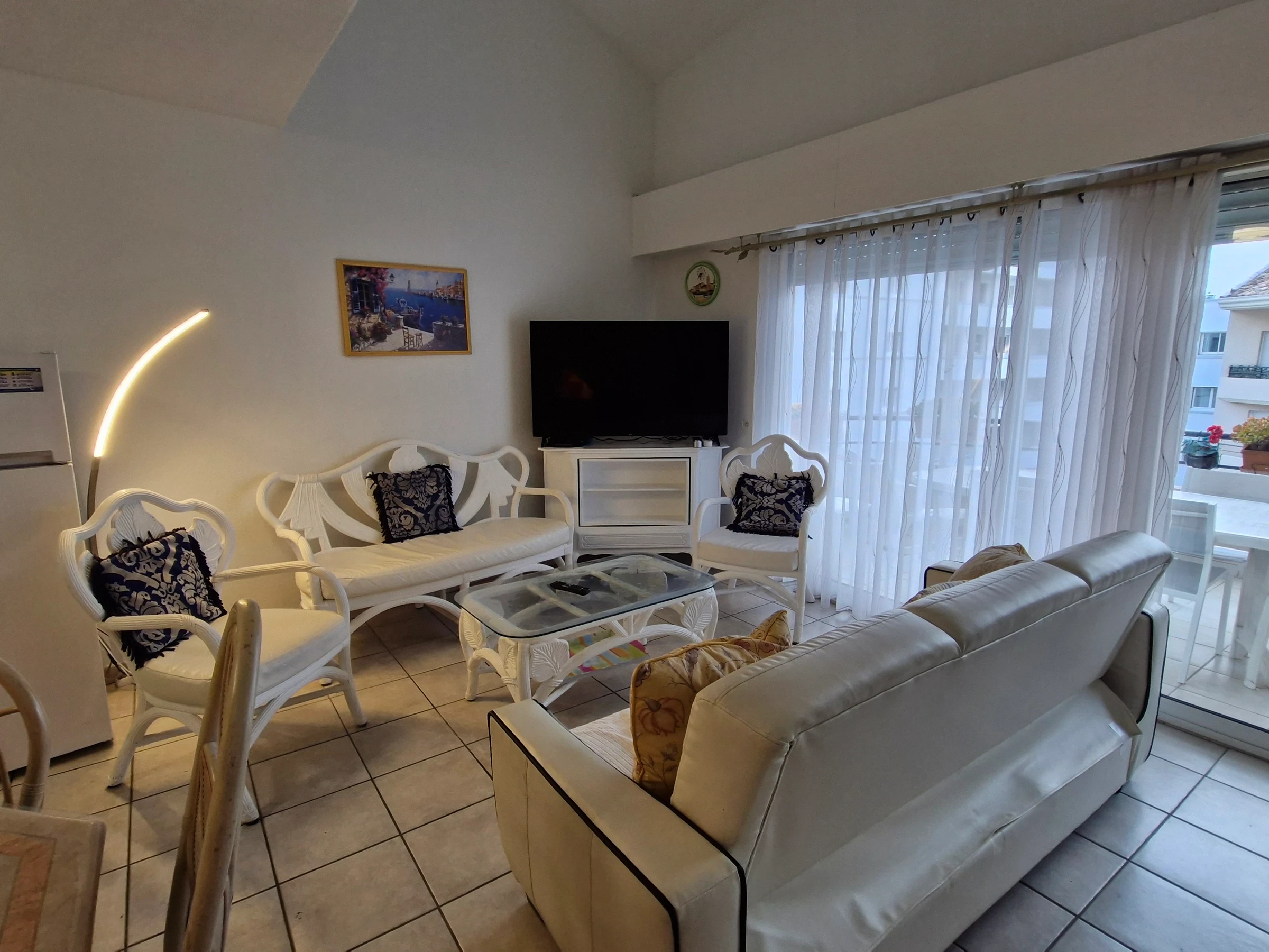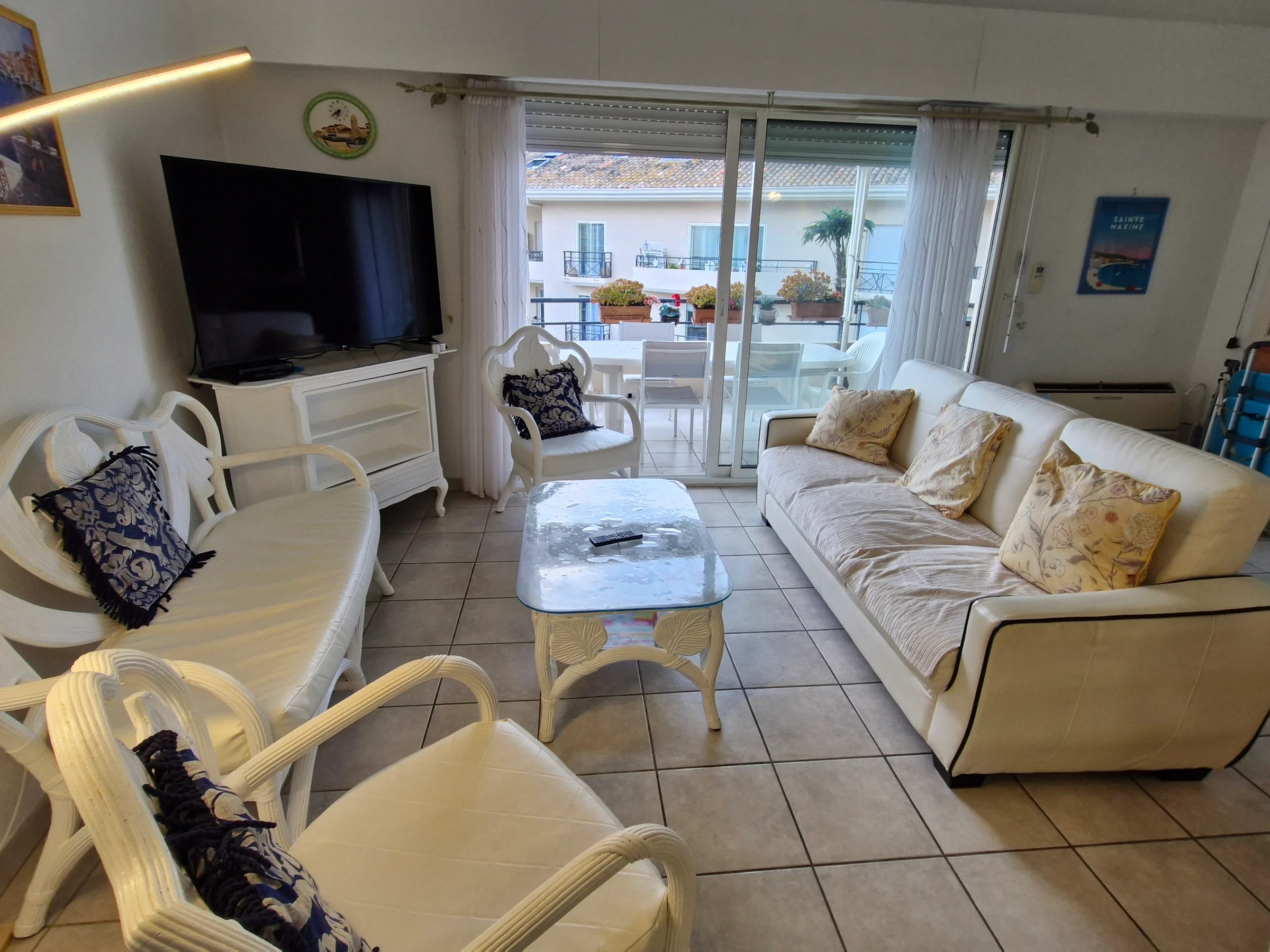 - Klimatisiertes Wohnzimmer mit Zugang zur Terrasse – Fernseher