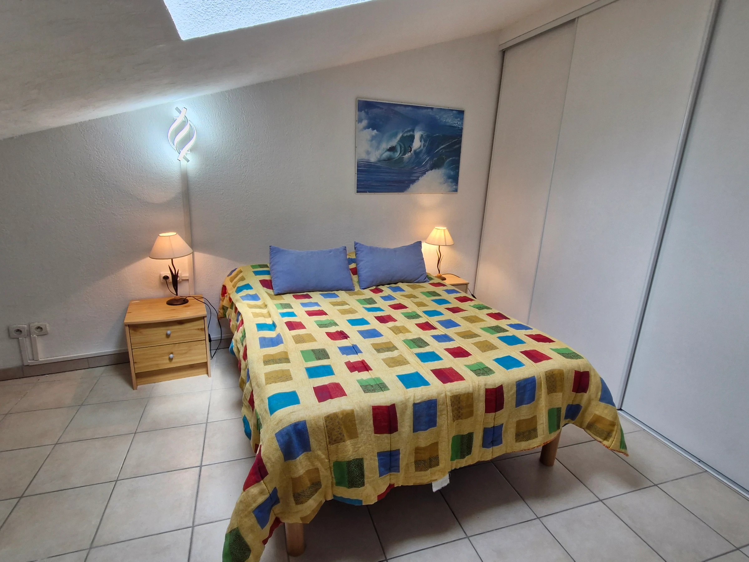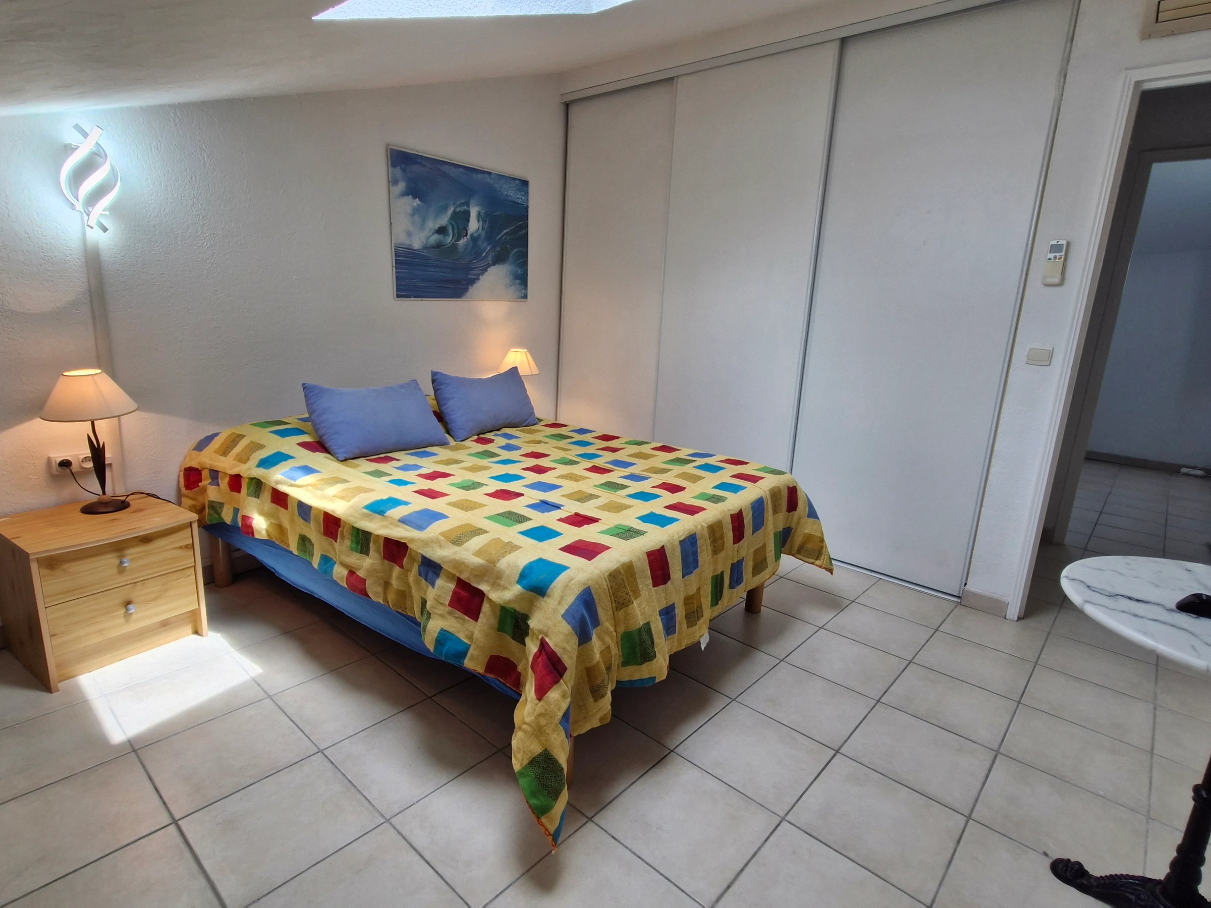 - Klimatisiertes Schlafzimmer mit Doppelbett (140 cm) – Kleiderschränke – Fernseher