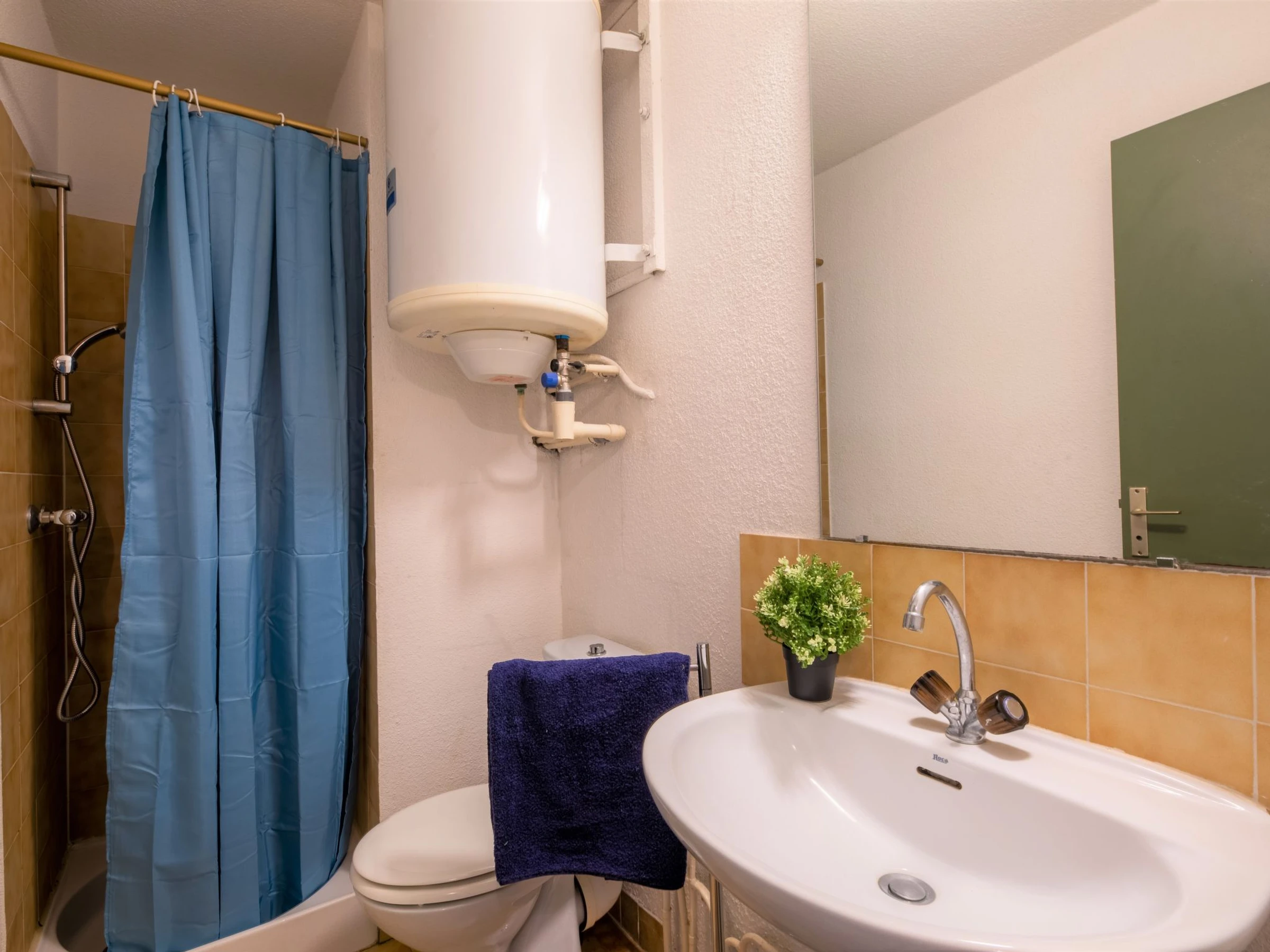 1-Zimmer-Studio 25 m2 im 3. Stock. Einfach eingerichtet: Wohn-/Esszimmer mit 1 Doppeldiwanbett (140 cm, Länge 190 cm), TV. Ausgang zur Terrasse. Kochnische (2 Kochplatten, Mini-Backofen, Toaster, Wasserkocher, Mikrowelle, elektrische Kaffeemaschine). Dusche/WC. E-Heizung. Balkon 3 m2, Ostlage, Ostlage. Terrassenmöbel. Zur Verfügung: Bügeleisen. Internet (WLAN, extra). Parkplatz. Bitte beachten: Nichtraucher-Unterkunft. Maximal 1 kleines Haustier/Hund erlaubt. Rauchmelder. [hidden]