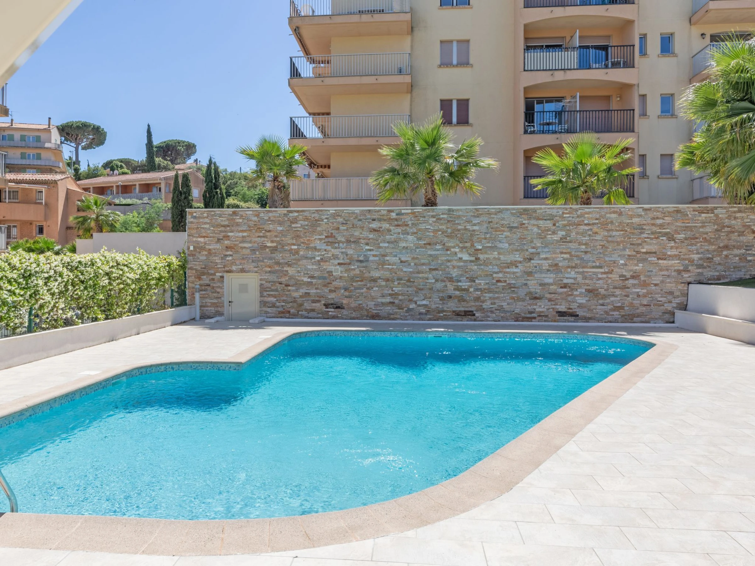 Residenz "La Palmeraie II". Im Ort, 600 m vom Zentrum von de Sainte-Maxime, 400 m vom Meer, 500 m vom Strand. Zur Mitbenutzung: Schwimmbad nierenförmig (4 x 10 m, 110 - 200 cm tief, saisonale Verfügbarkeit: [hidden] - [hidden] In der Anlage: Fahrstuhl. Parkplatz (beschränkte Anzahl). Einkaufsgeschäft 600 m, Lebensmittelgeschäft, Supermarkt 100 m, Einkaufszentrum 700 m, Restaurant 50 m, Bäckerei 100 m, Bushaltestelle 450 m, Bahnstation "Saint-Raphael TGV" 20 km, Sandstrand "Centre-ville" 400 m, Thermalbad "Thalasso Les Issambres" 7 km. Sporthafen 2 km, Golfplatz (18 Loch) 5 km, Tennis 2 km. Nahe gelegene Sehenswürdigkeiten: Aqualand waterpark 5 km, Azur Park attractions 13 km, Saint-Tropez/Ramatuelle 16 km, Port-Grimaud 11 km, Gorges du Verdon 95 km, Navette / shuttle boat St-Tropez 15min 2 km. Wandergebiete: Massif des Maures 5 km, Massif de l'Esterel 38 km. Bitte beachten: Die Residenz wird durch elektrische Tore geschlossen. Die Schlüsselübergabe findet bei der Agentur in Sainte-Maxime statt. Flugplatz 70 km vom Haus. Weitere Unterkünfte sind buchbar.