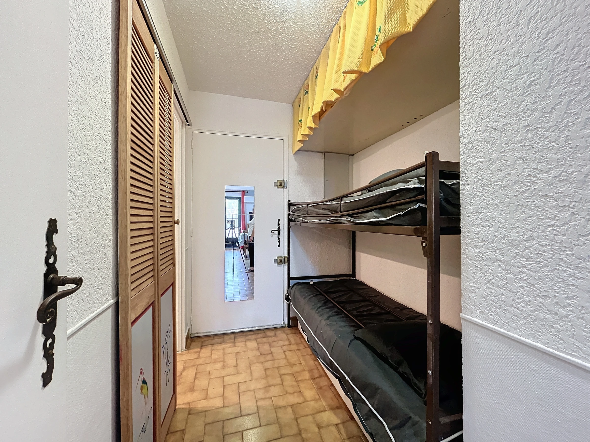 Résidence le Trident.Dieses Apartment liegt 200 m vom Thalassotherapiezentrum entfernt in der Residenz le Trident. Dieses 25 m² große Studio im Erdgeschoss mit 25 m² großer Terrasse verfügt über einen Kabinenbereich mit 2 Etagenbetten, ein Badezimmer mit Eckduschkabine, WC, Hauptraum mit Küchenbereich, ausgestattet mit Herd, Mikrowelle, Kühlschrank, Kaffeemaschine. ., ausziehbares Schlafsofa für 2 Personen. Diese Unterkunft ist mit einer umschaltbaren Klimaanlage ausgestattet.