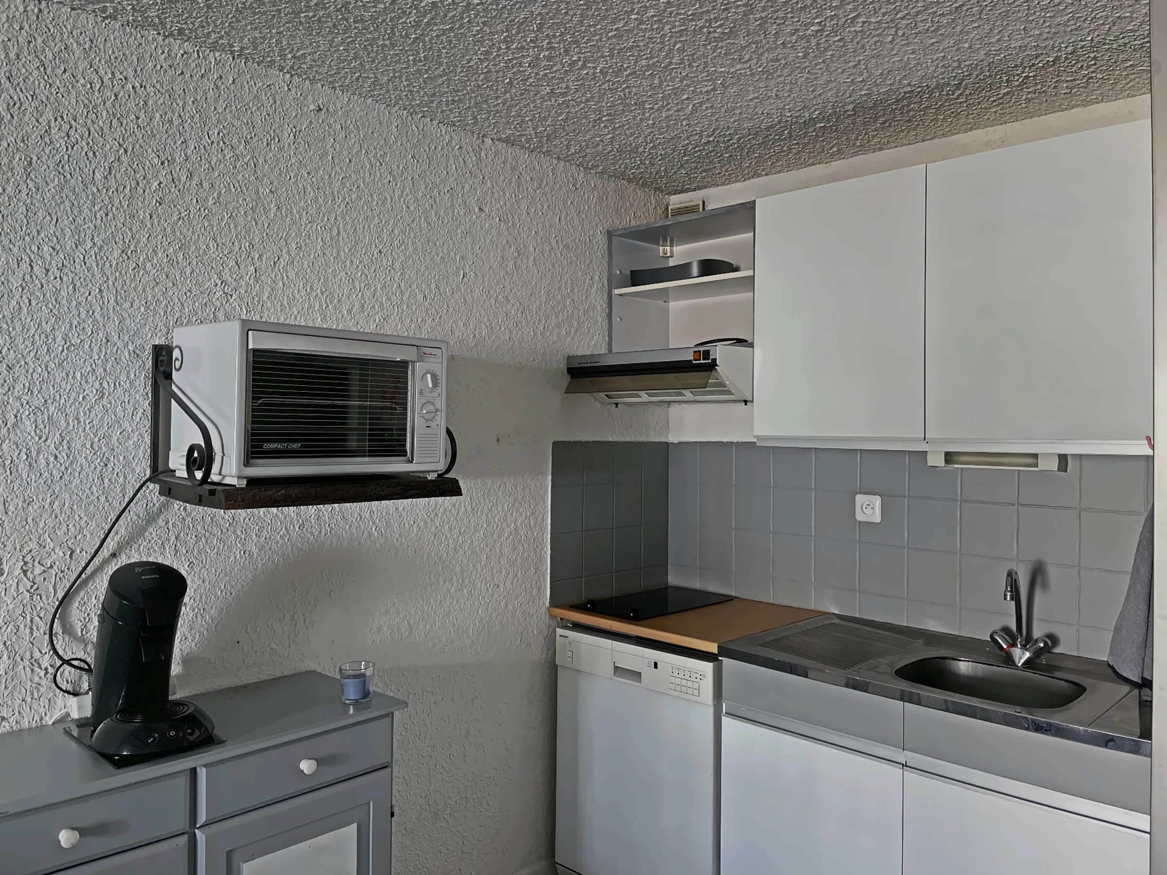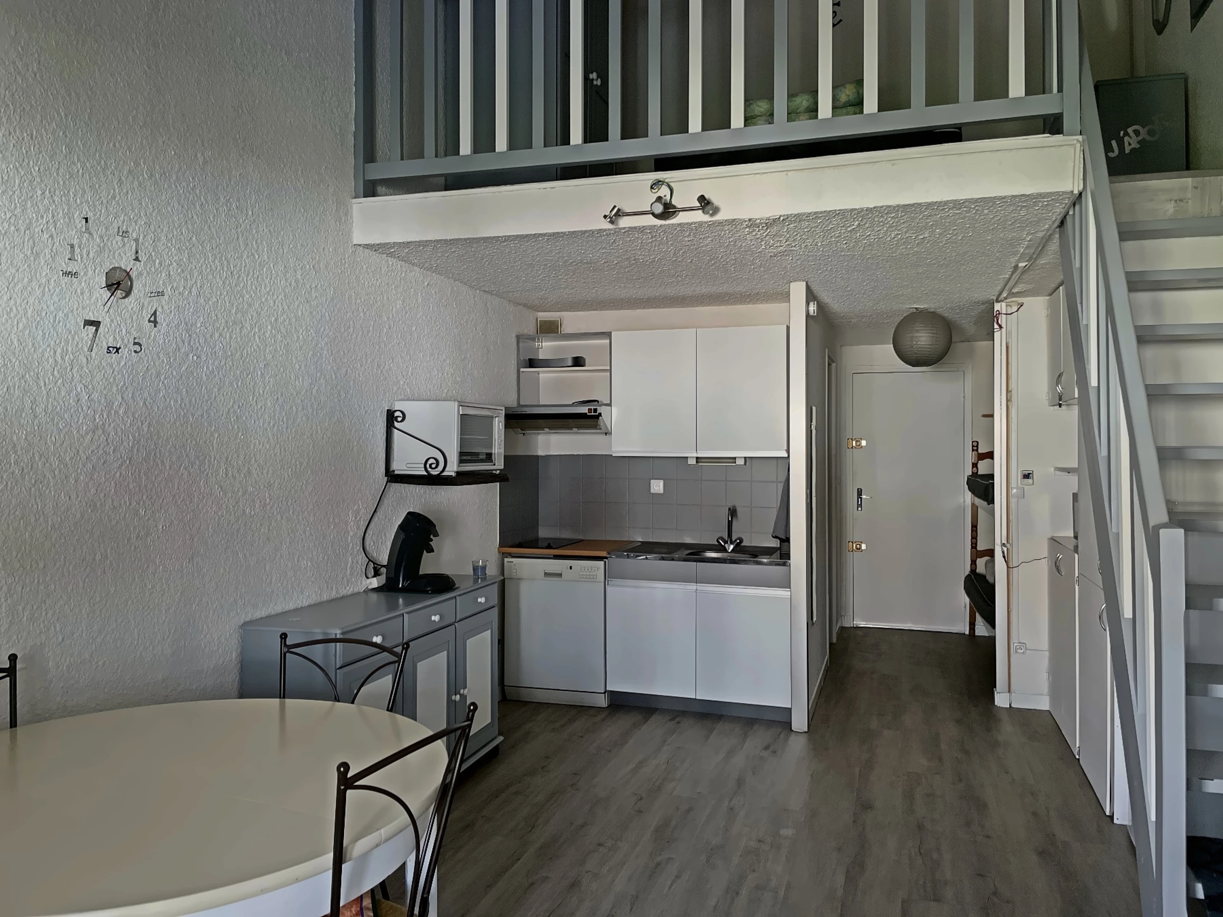 Residenz les Avocettes. Ideal für den Urlaub, diese Wohnung im 1. Stock in einer ruhigen Residenz in der Nähe aller Annehmlichkeiten besteht aus einem Kabinenbereich am Eingang, einem Badezimmer mit WC, einem Schrank, einem Wohnzimmer mit offenem Küchenbereich, einer Terrasse und einem Schlafzimmer im Zwischengeschoss im Obergeschoss. Diese Wohnung ist klimatisiert und verfügt über einen privaten Parkplatz.