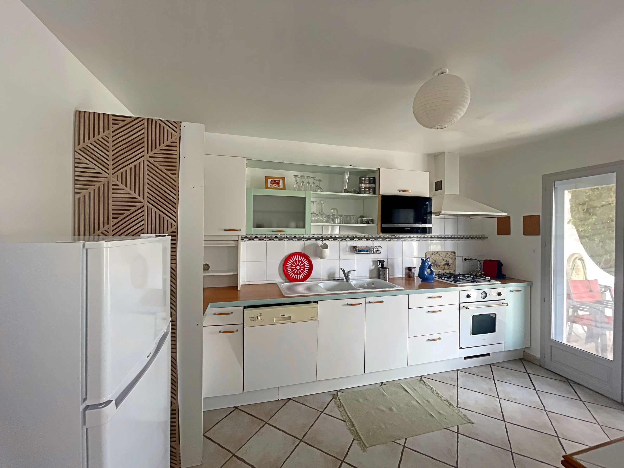 107m² großes Haus auf einer Ebene in einer sicheren Residenz mit Parkplatz in der Nähe des Stadtzentrums, es besteht aus einer Südterrasse, einer Eingangshalle, einem großen Wohn-Esszimmer, einer offenen Einbauküche (Toaster, Wasserkocher, Nespresso-Kaffeemaschine, Geschirrspüler, Mikrowelle, 4 Gasbrenner usw.).
