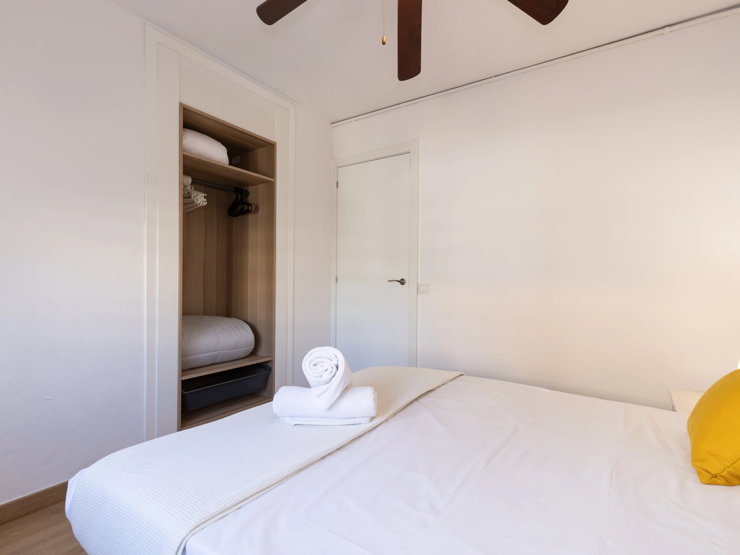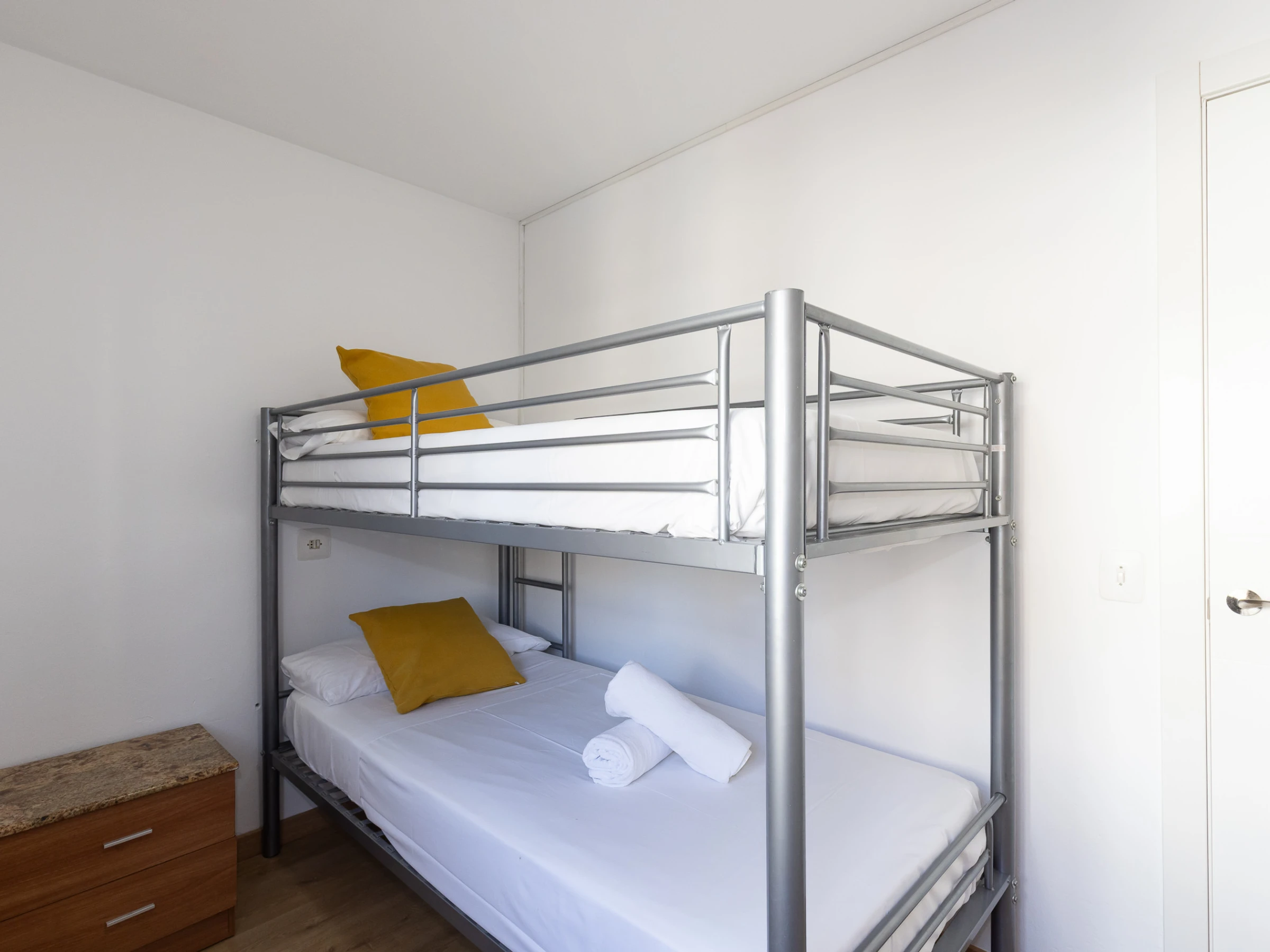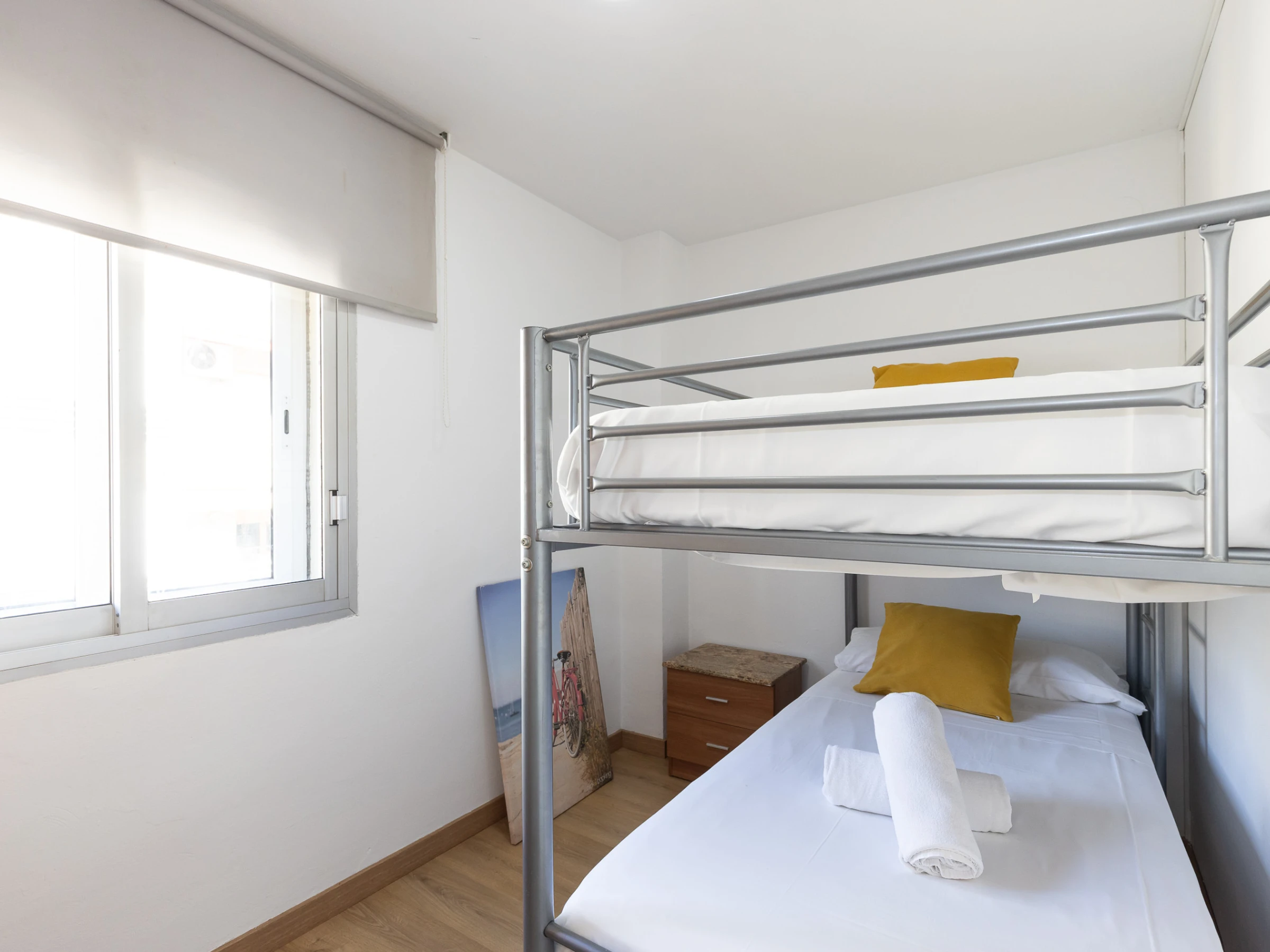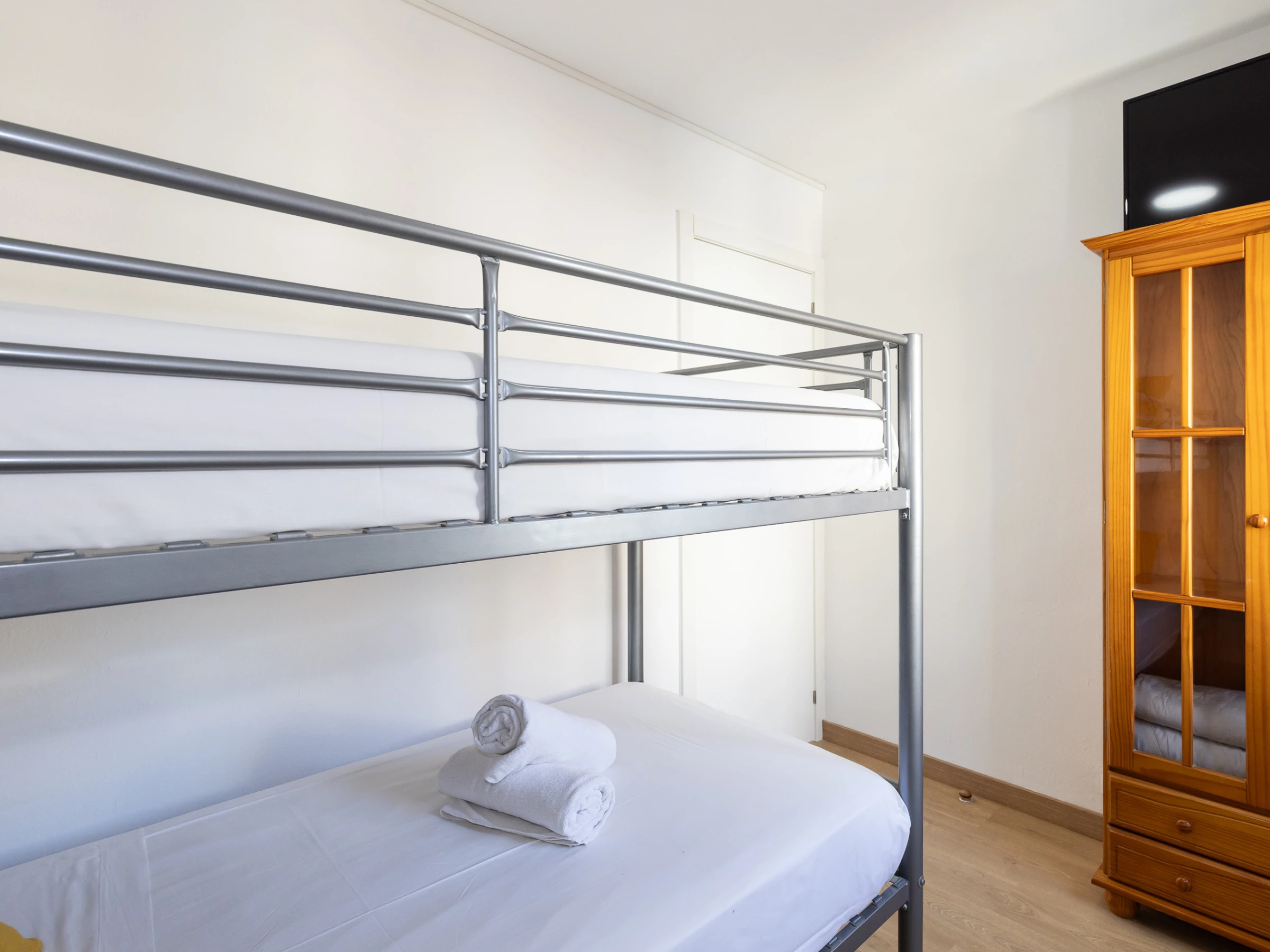 Es ist verteilt auf einen Wohn-Essbereich mit Terrasse, eine separate, vollständig ausgestattete Küche, 2 Doppelzimmer (1 Ehebett und 1 Etagenbett) und ein vollständiges Badezimmer mit Dusche. Es verfügt über Klimaanlage im Wohnzimmer.