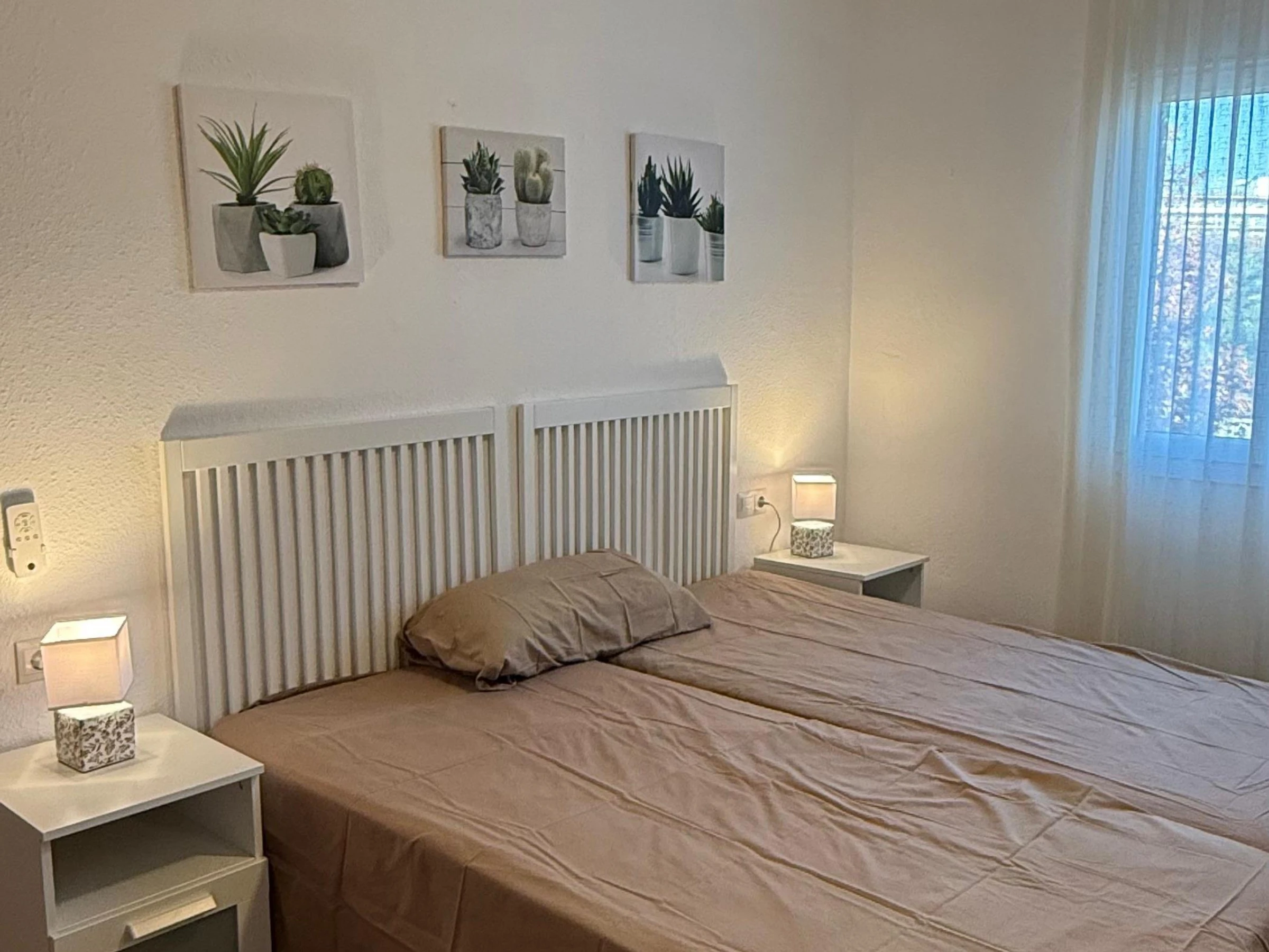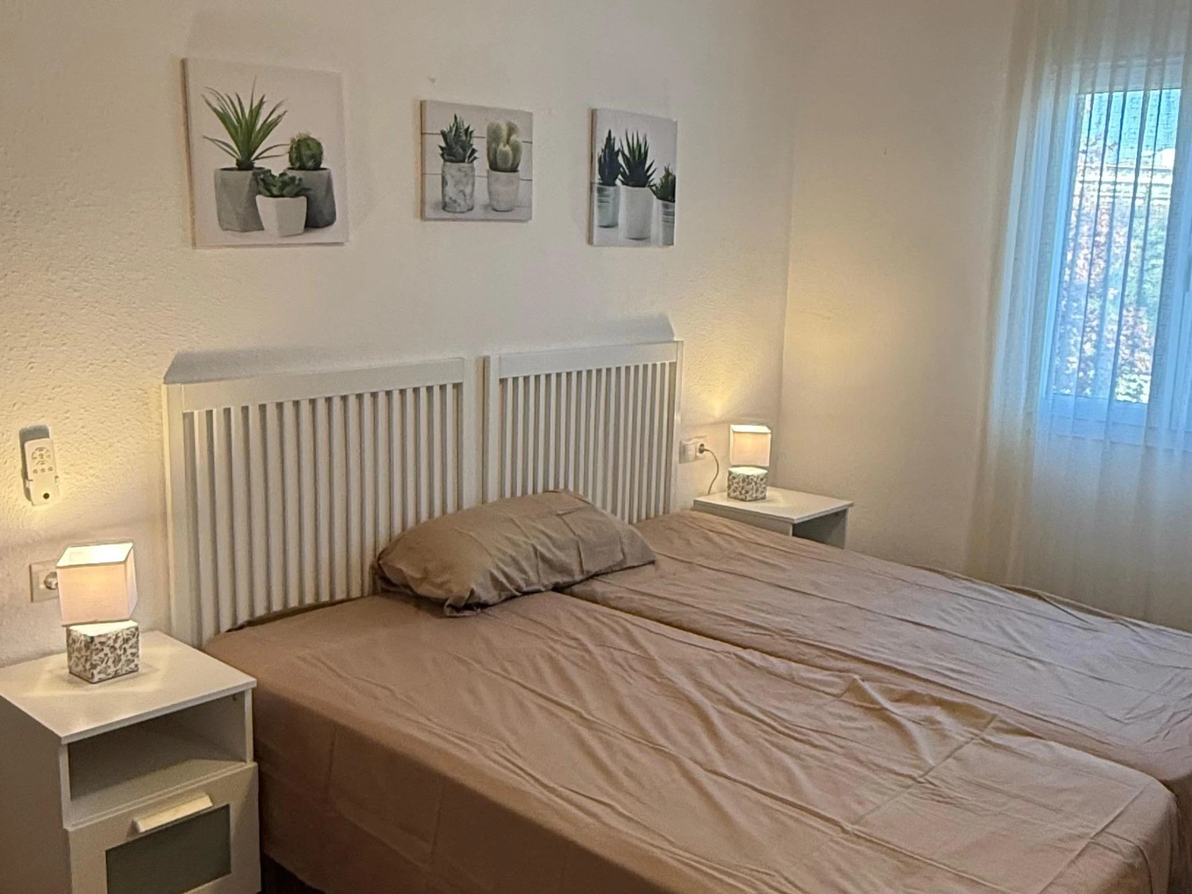 Das Apartment verfügt über zwei komfortable Schlafzimmer: eines mit Doppelbett und das andere mit Etagenbett, beide mit Deckenventilatoren für zusätzlichen Komfort.