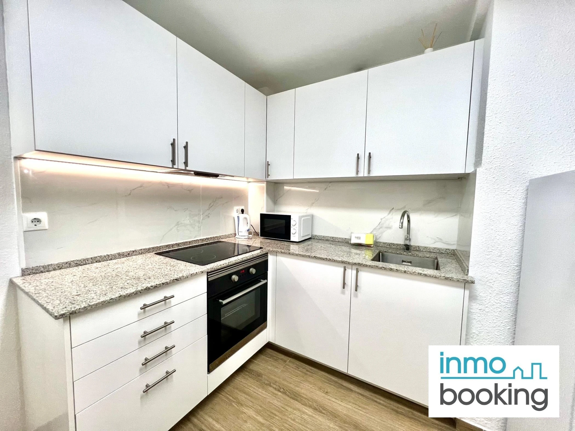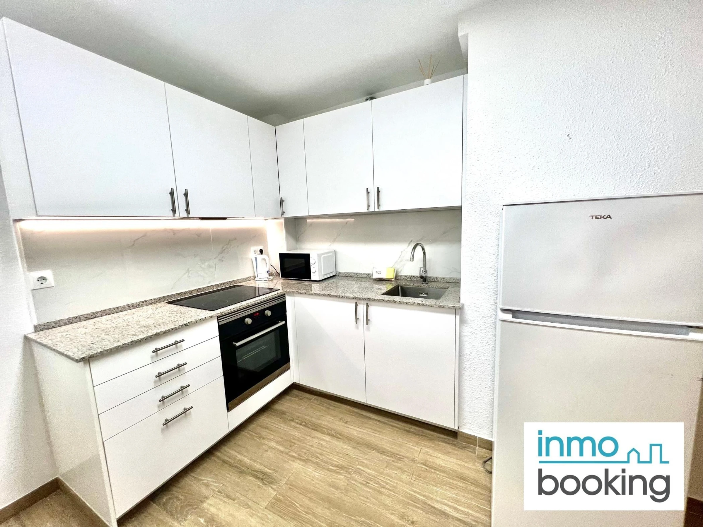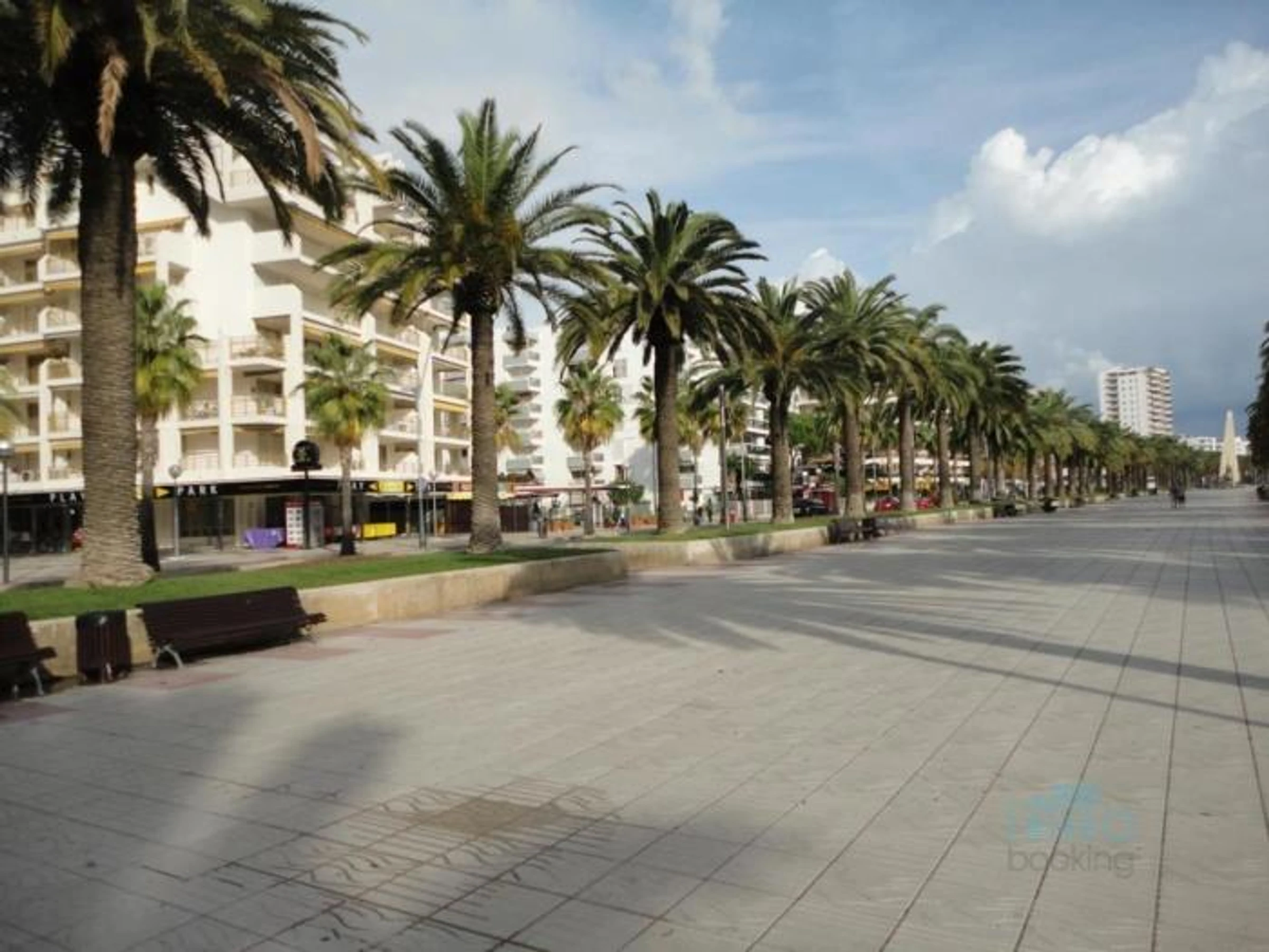 Die Wohnung besteht aus einem offenen Raum mit einer beweglichen Trennwand, um den Raum vom Wohnzimmer zu trennen, beide Räume haben Zugang zu einem großen. Die Wohnung verfügt über zwei Einzelbetten und ein Doppelschlafsofa. Zum Wohnzimmer hin offene Küche, ausgestattet mit Backofen, Herd, Mikrowelle, Kühlschrank und allen Küchenutensilien.
