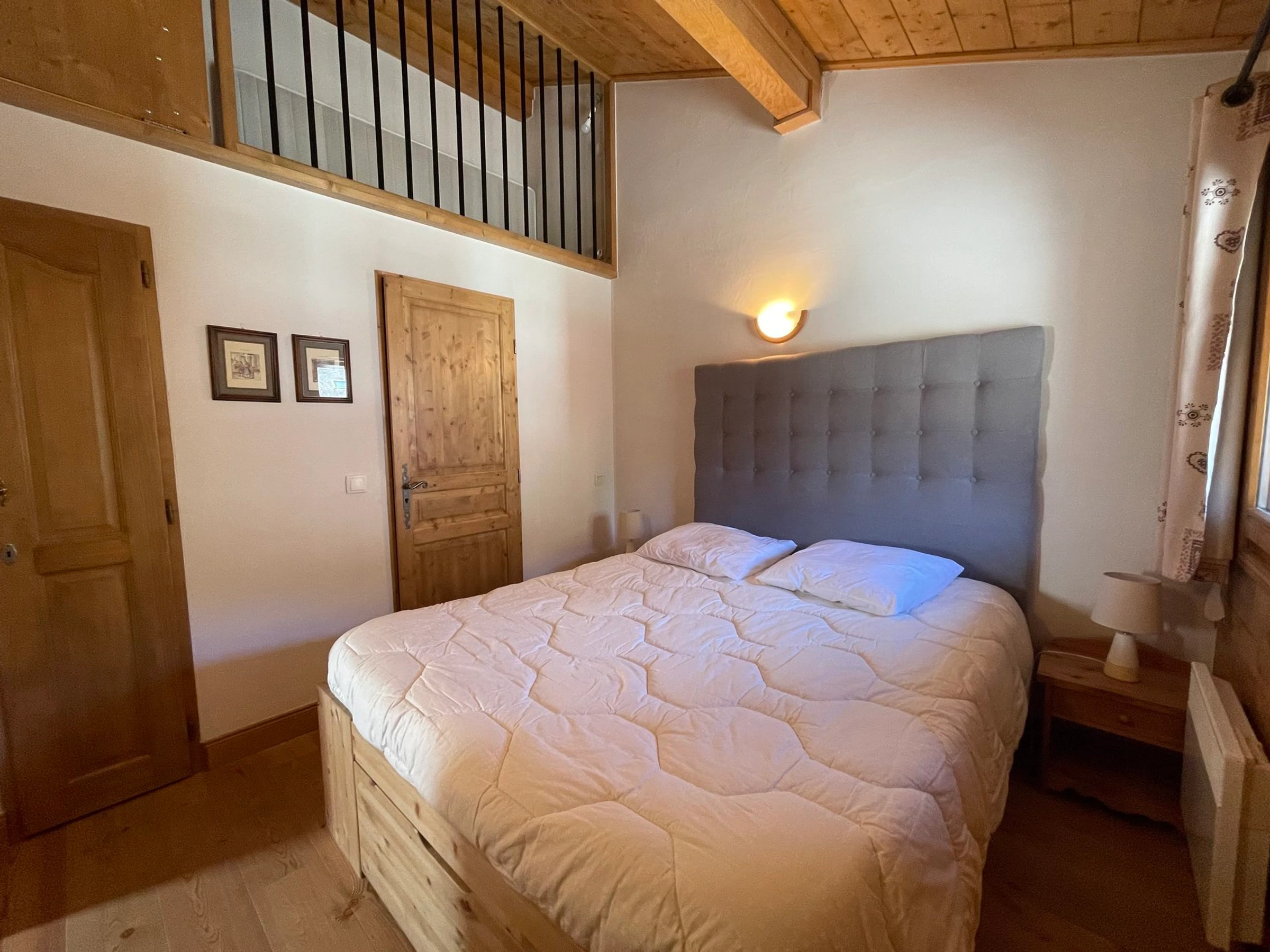 Ein Schlafzimmer mit 1 Doppelbett (160 cm) und Duschbad.