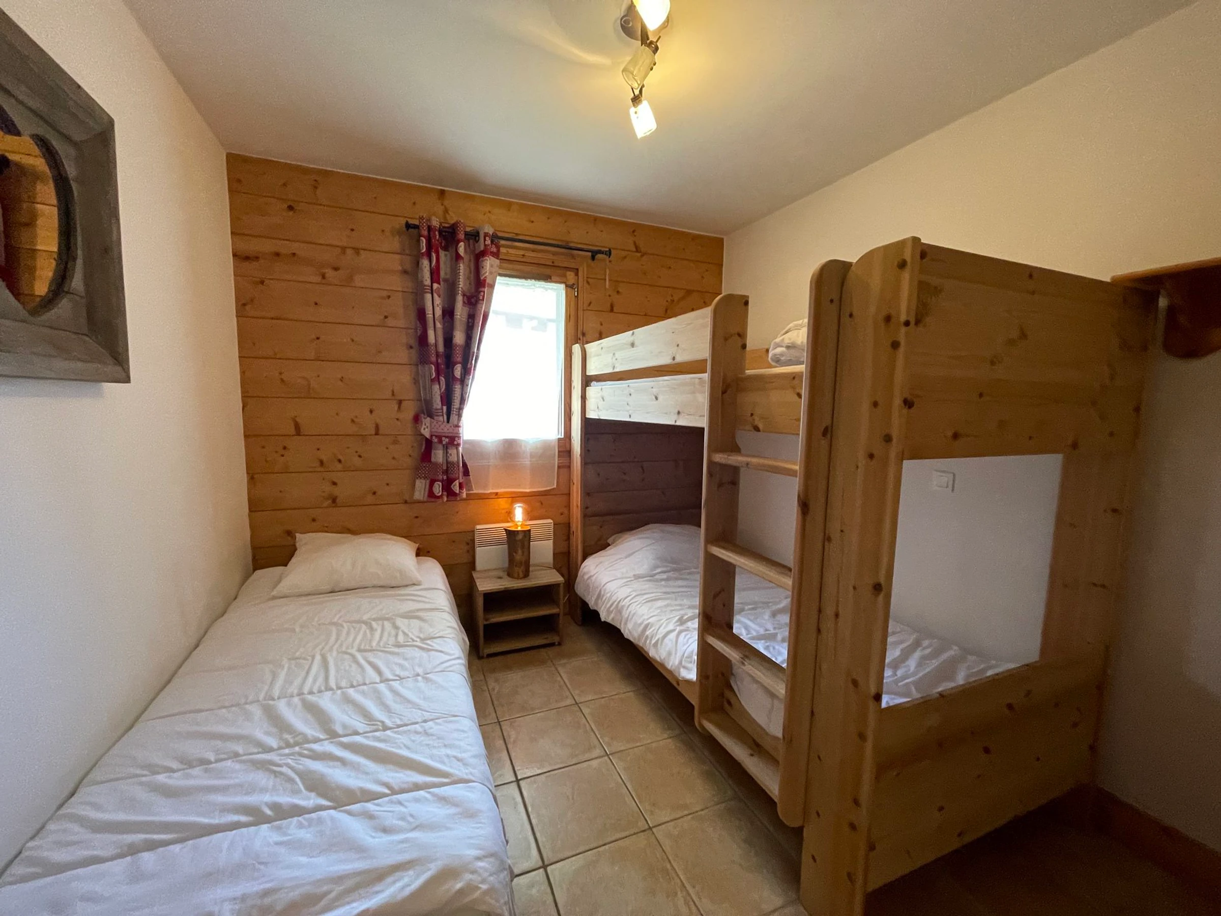 Schlafbereich: Ein Schlafzimmer mit 2 Etagenbetten und 1 Einzelbett (80 cm).