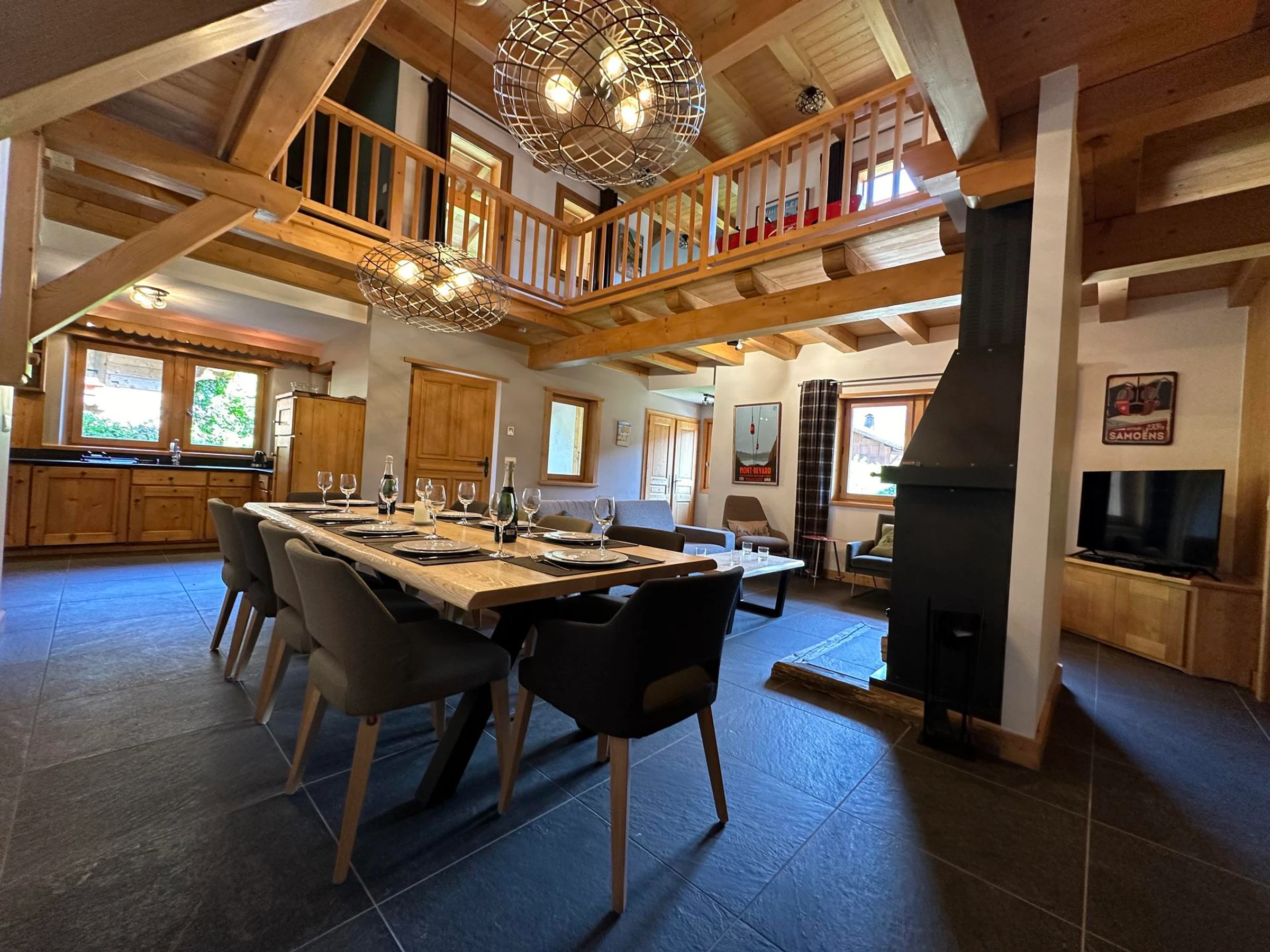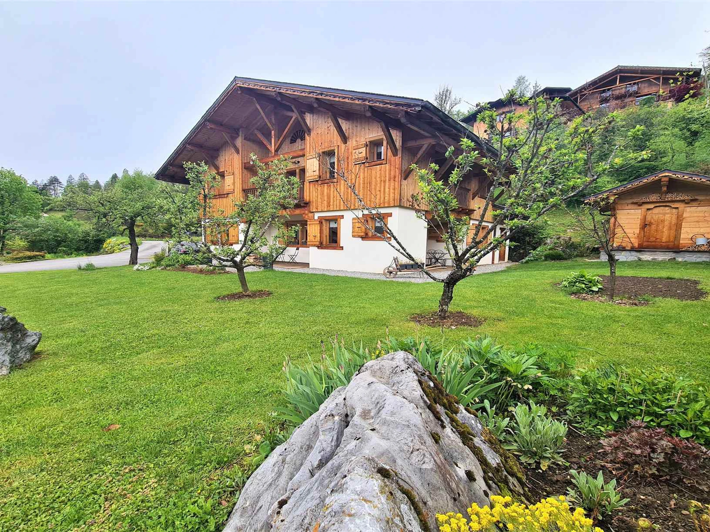 Dieses prächtige, 168 m² große Chalet mit Terrassen und Balkonen umfasst: