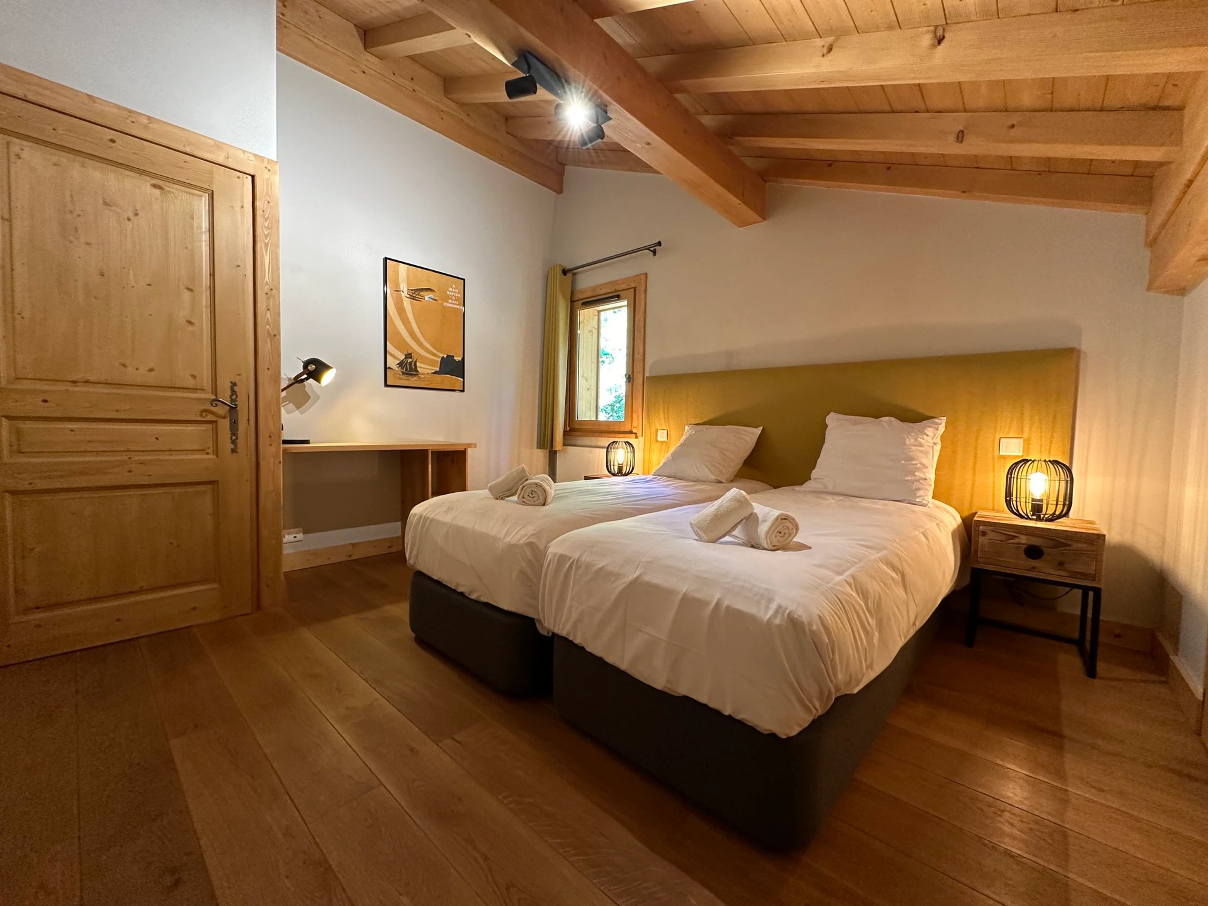 1 Schlafzimmer mit 2 Einzelbetten (90 cm), die zu einem Doppelbett umgewandelt werden können.