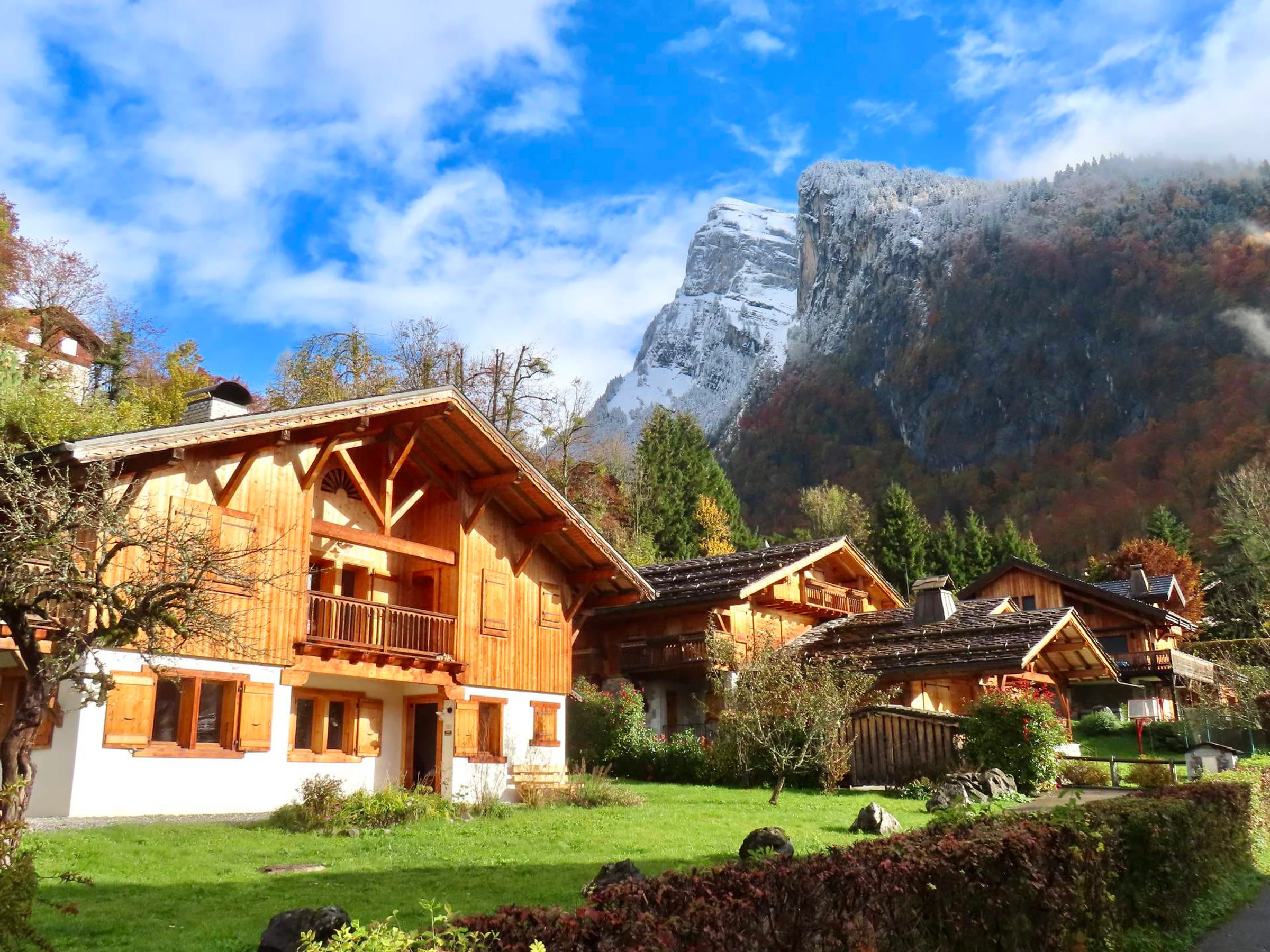In einer ruhigen, sonnigen Gegend gelegen und dennoch nur 5 Gehminuten von Geschäften und dem Ortszentrum entfernt, bietet dieses traditionelle Chalet einen atemberaubenden Bergblick.