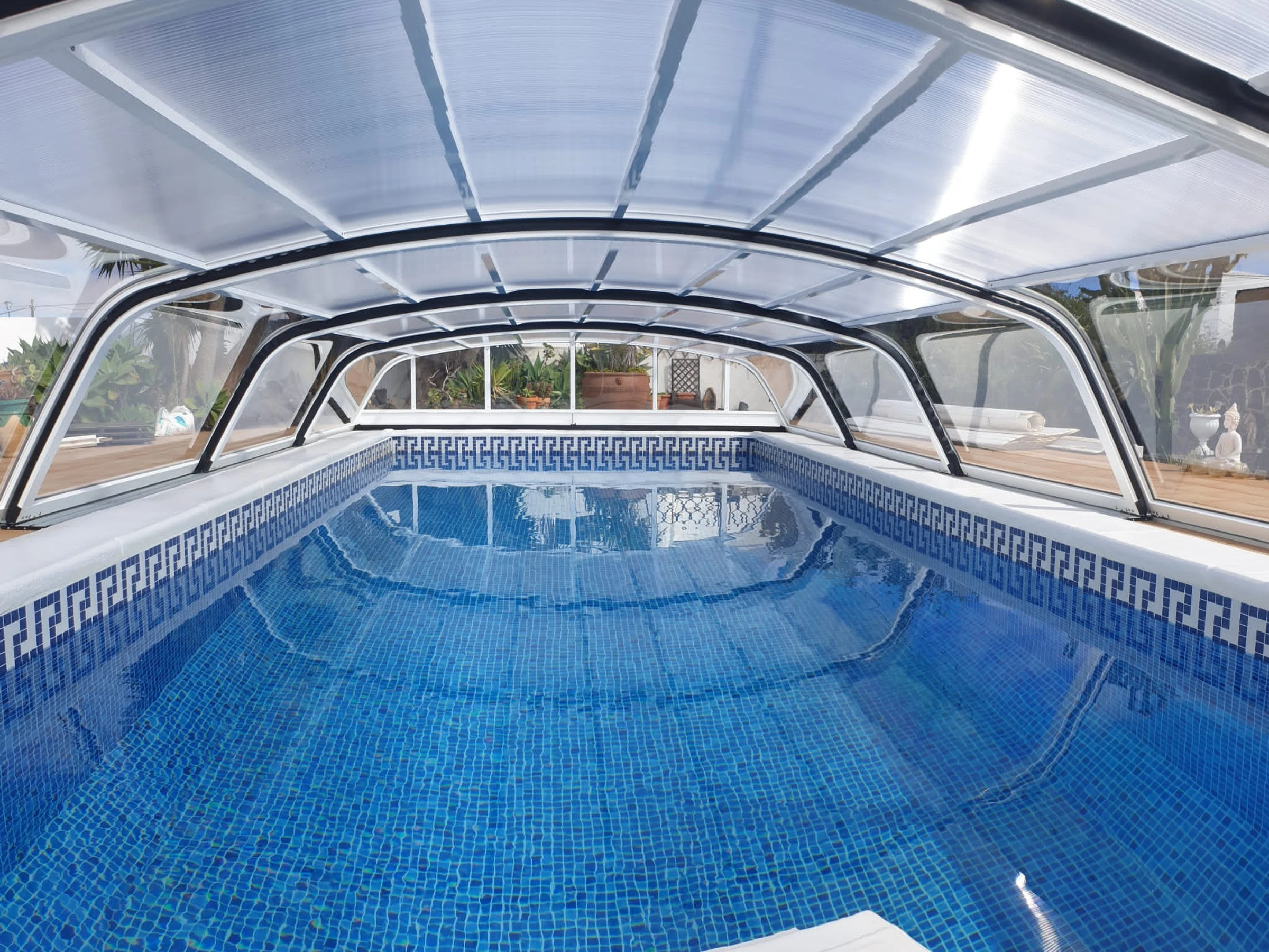 Der große Reiz des Hauses ist seine Außenzone, wo Sie einen spektakulären, überdachten und natürlich klimatisierten Gemeinschaftspool genießen können, der das ganze Jahr über nutzbar ist. Auf der geräumigen Terrasse finden Sie Sonnenliegen, zusätzlich zu einer gemütlichen Ruhezone mit Sofa und Tisch, ideal zum Entspannen oder zum Teilen schöner Momente.