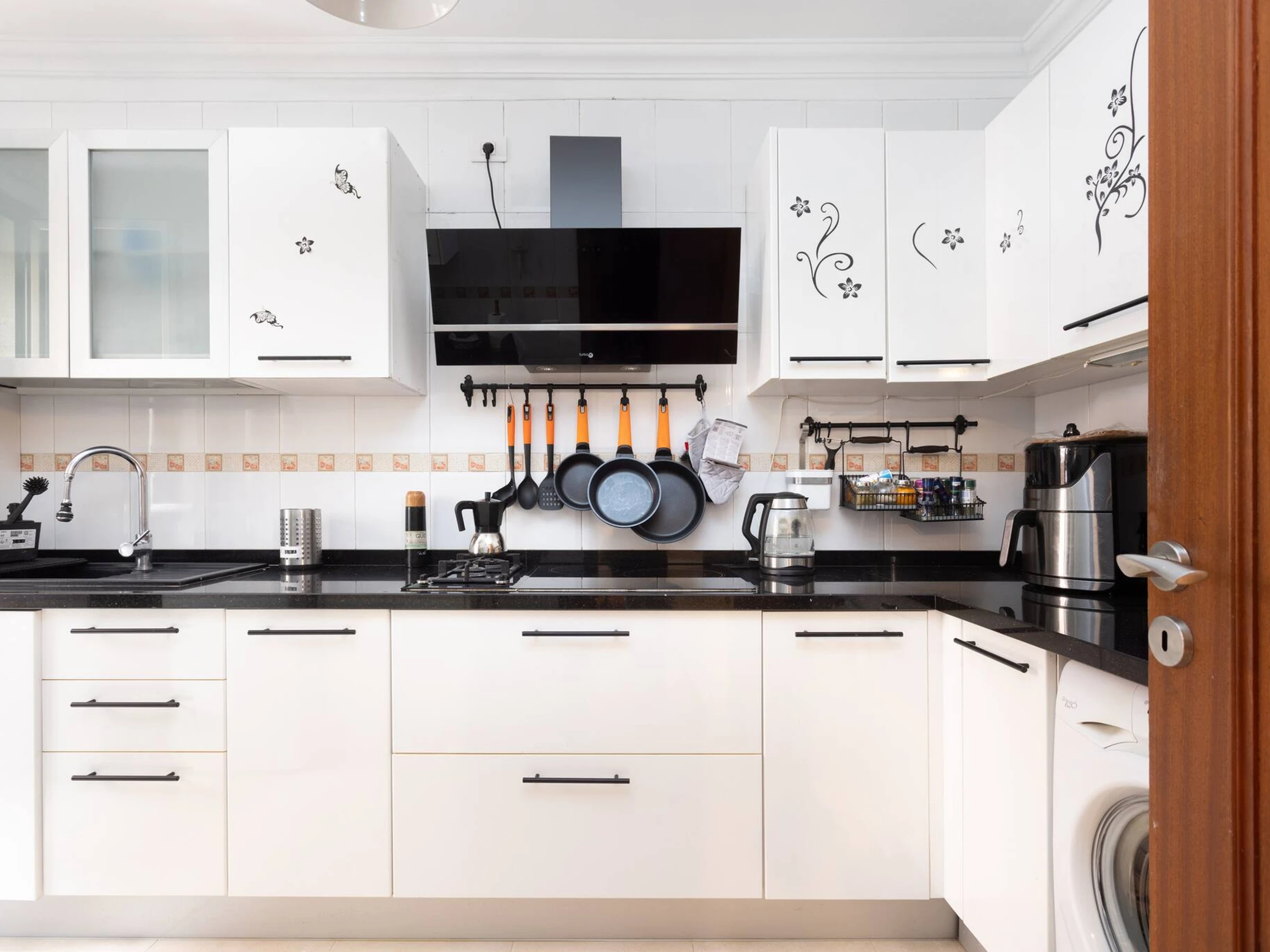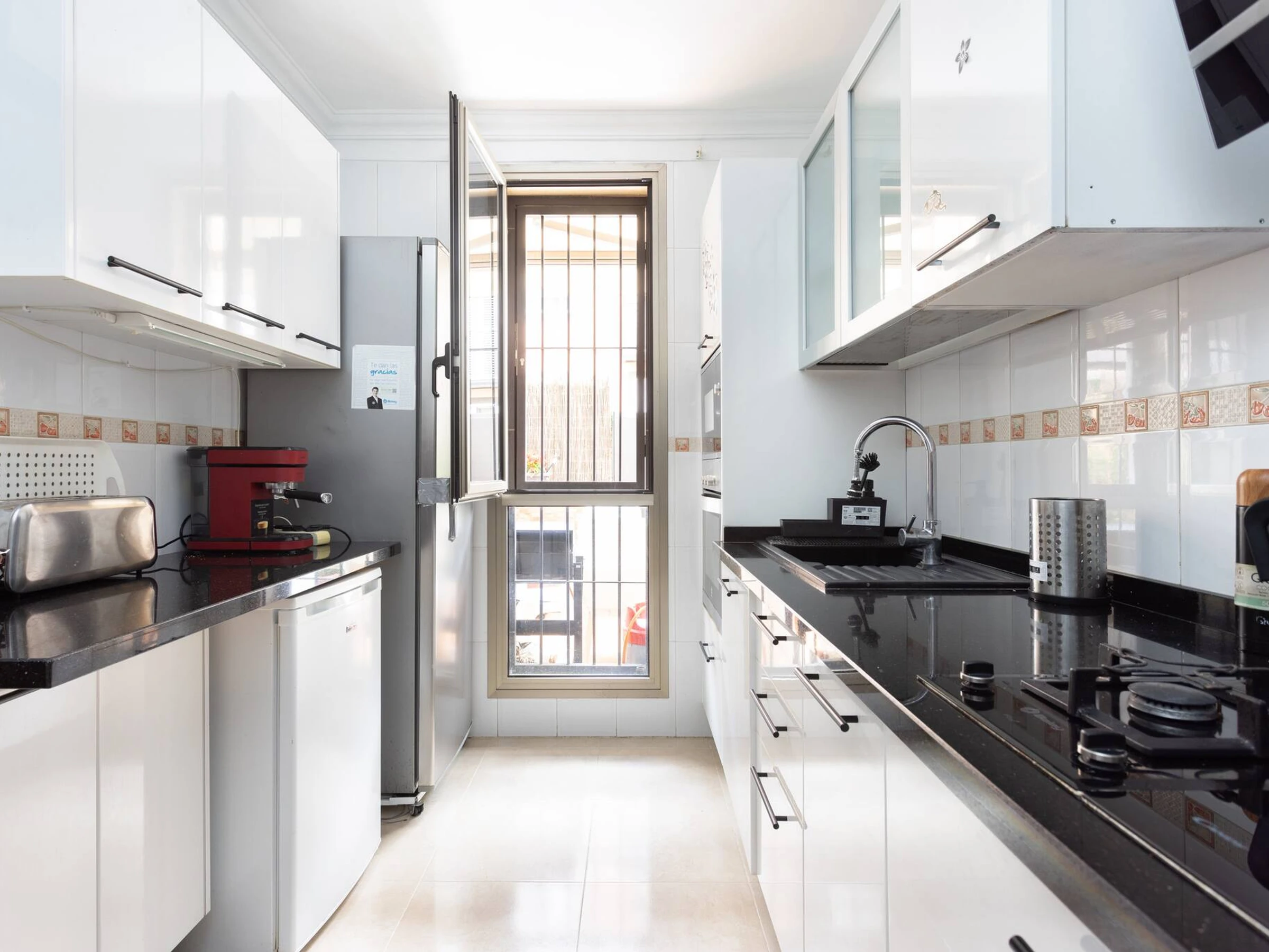 Dieses separate küche, mit ceranfeld, ist ausgestattet in kühlschrank, mikrowelle, backofen, gefrierschrank, geschirr/besteck, kochutensilien, kaffeemaschine, toaster und wasserkocher.