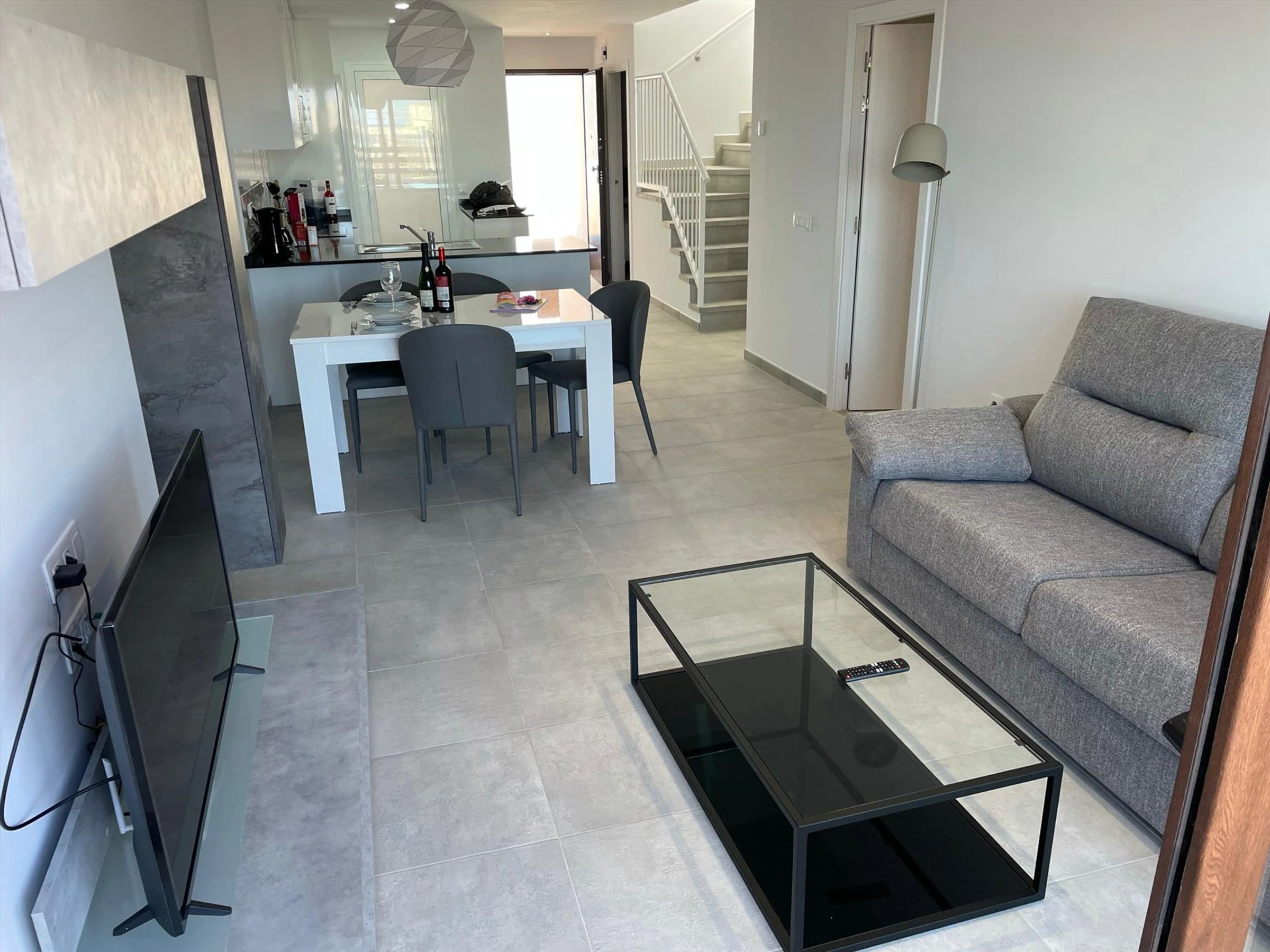 * Wohnzimmer mit Klimaanlage und Fernseher